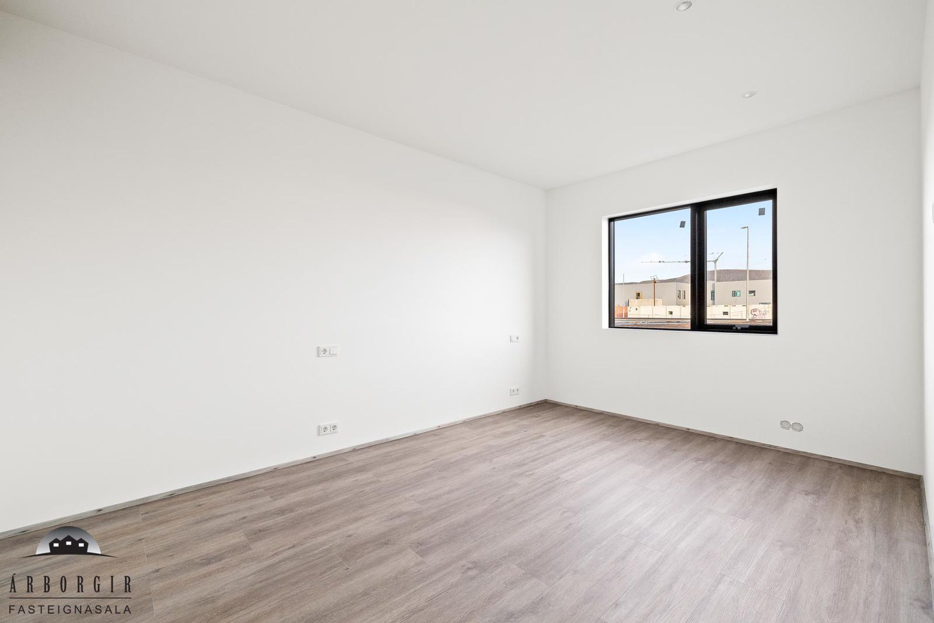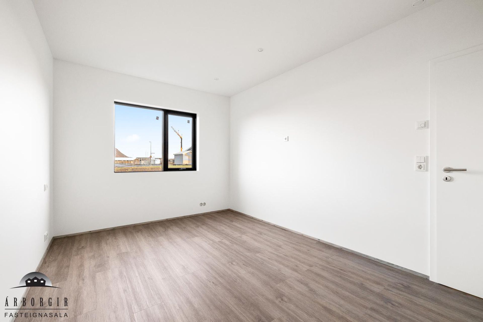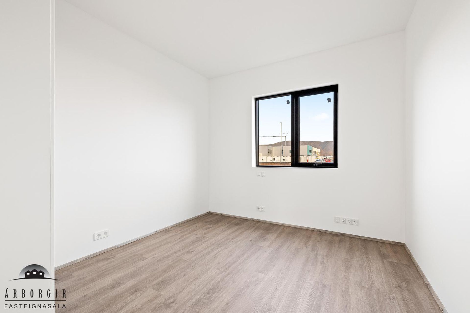 Þrjú svefnherbergi: Öll rúmgóð með fataskápum og vínilparket á gólfi.