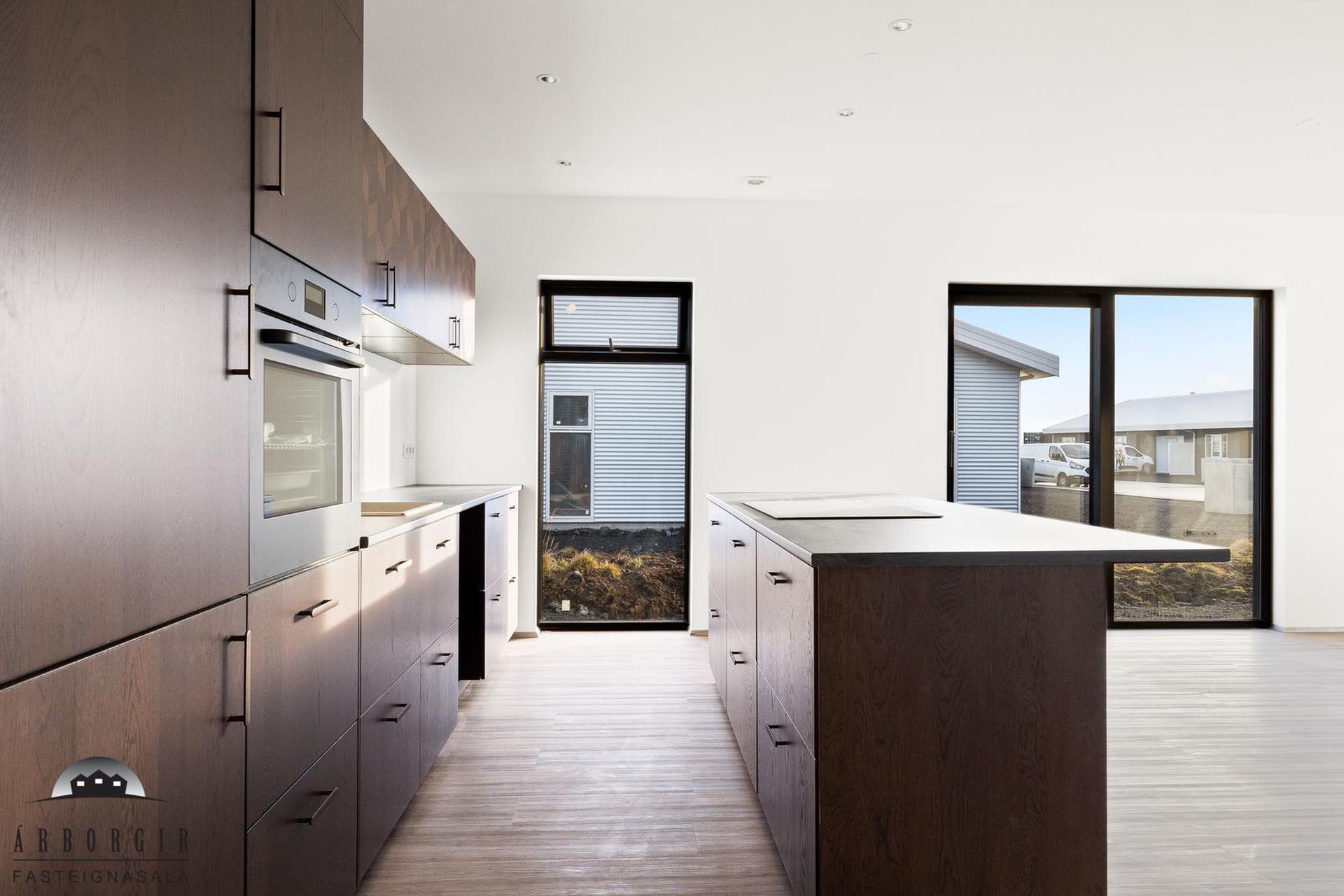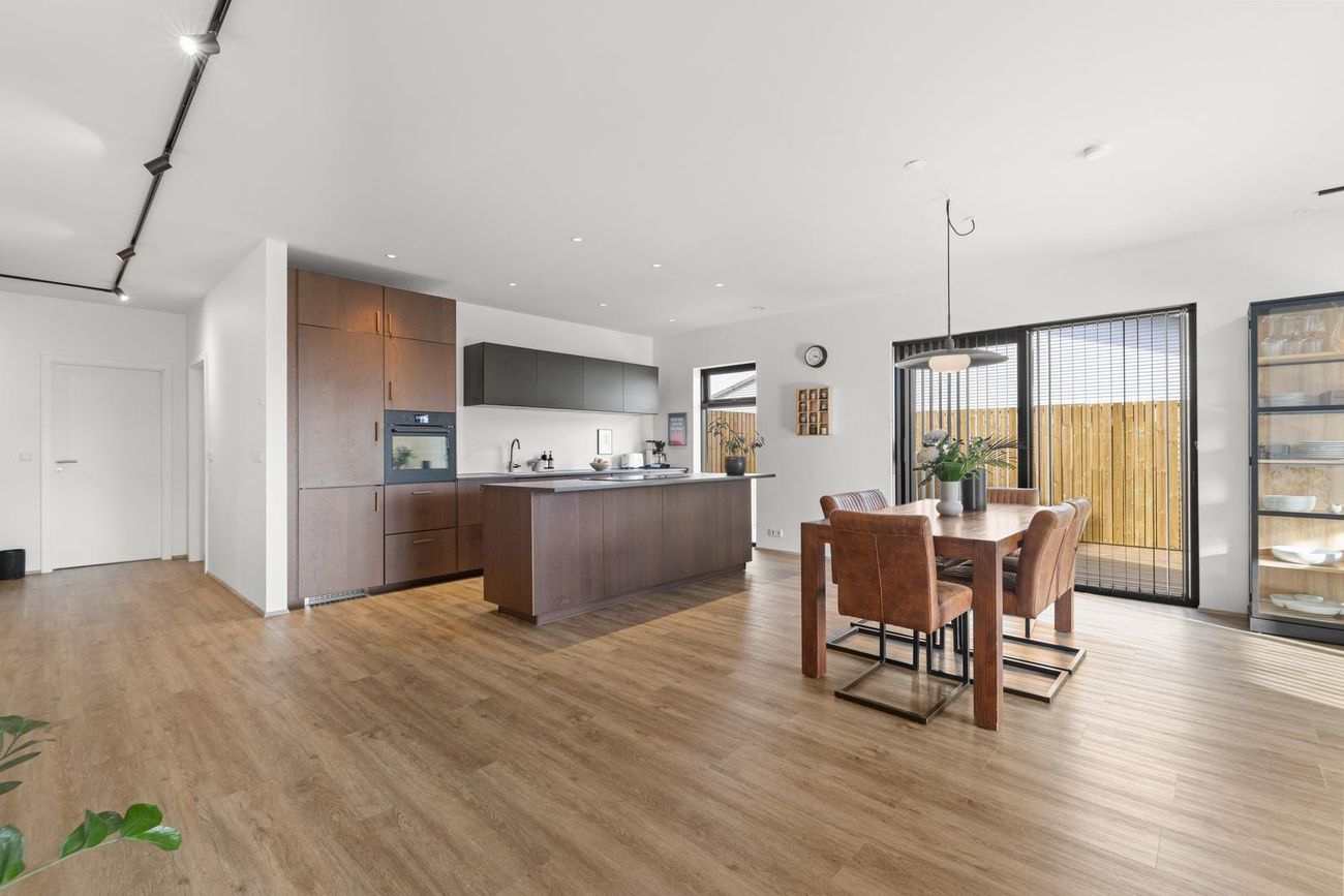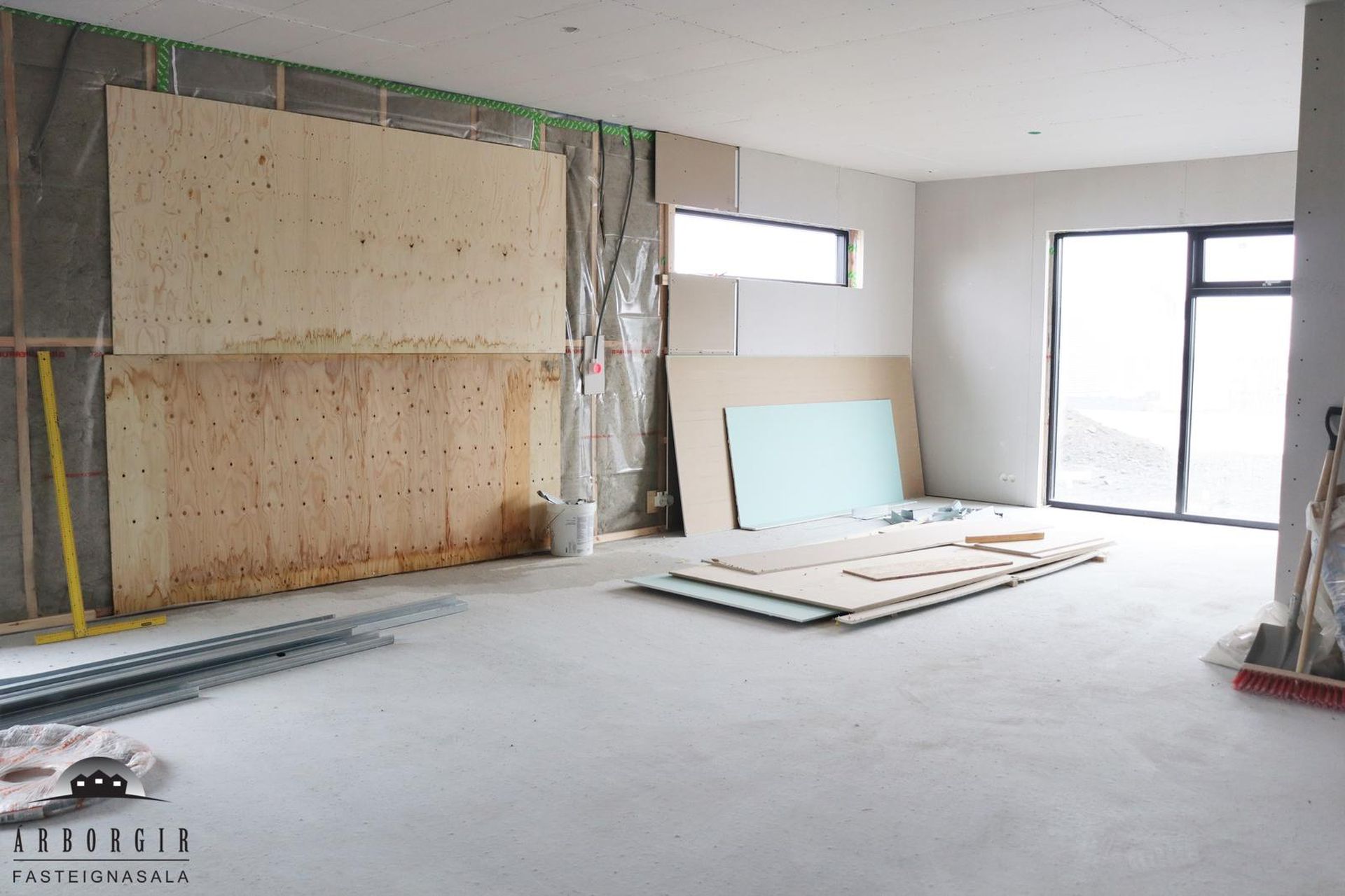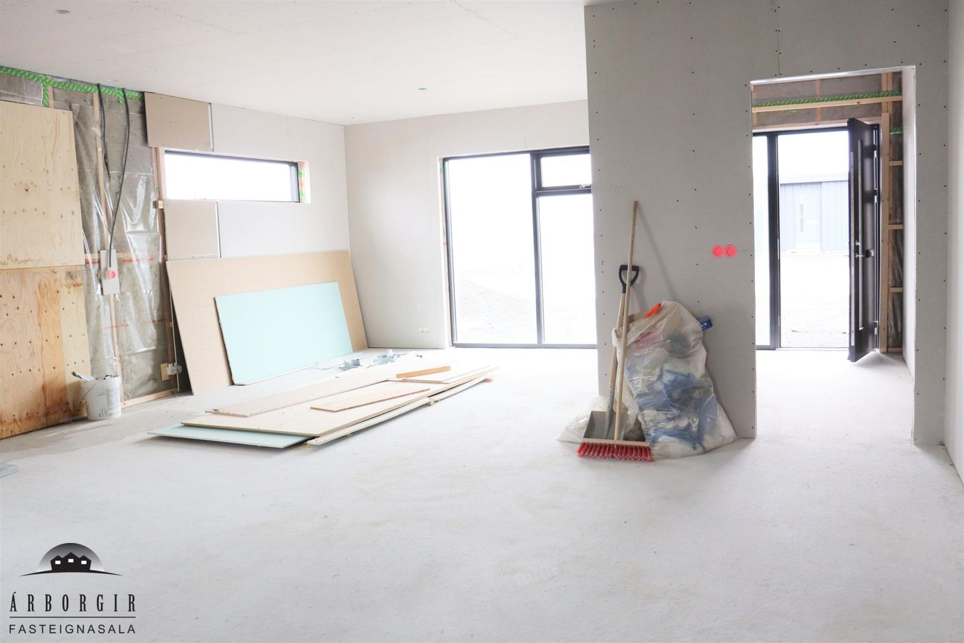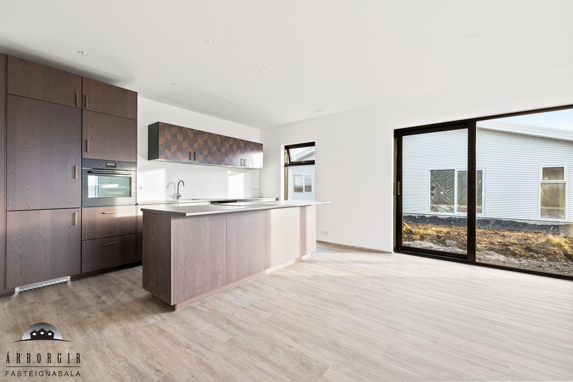 Alrými: Opið, bjart og rúmgott rými með stofu, borðstofu og eldhúsi. Vnilparket á gólfum og eldhúseyja með fallegum innréttingum. Hátt til lofts er í alrýminu. Rennihurð út á lóð er í Borðkrók. Stofan er björt og rúmgóð.
