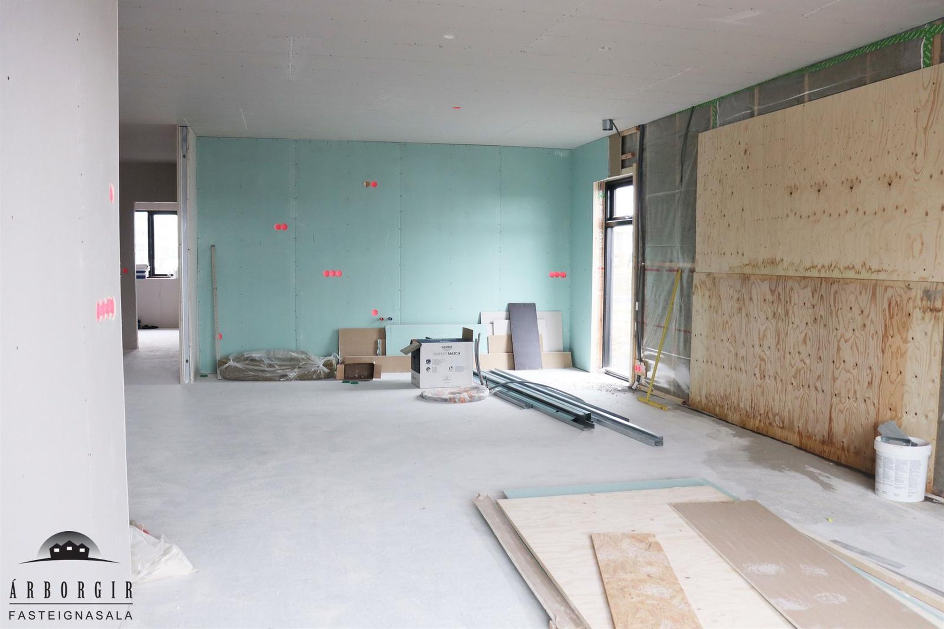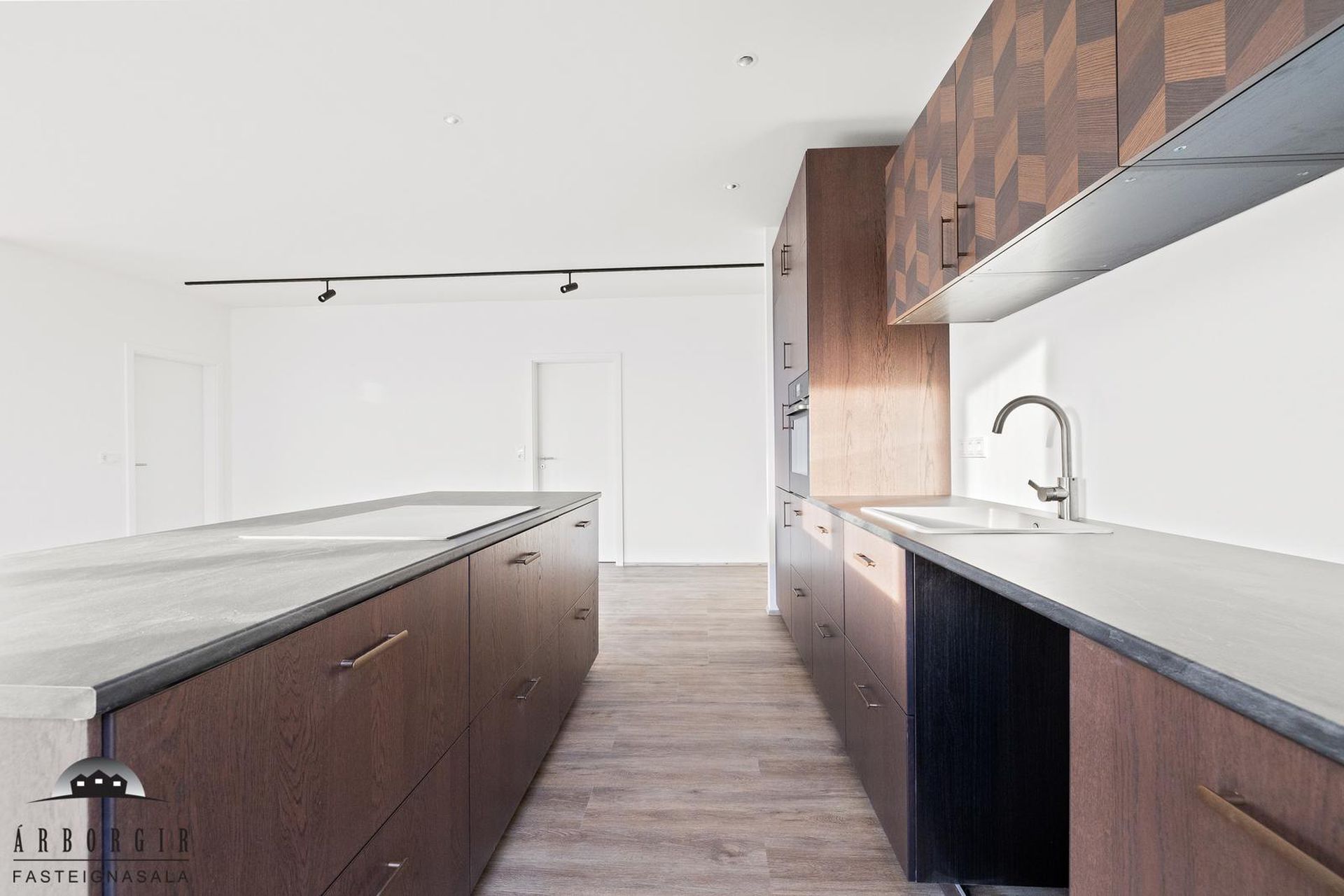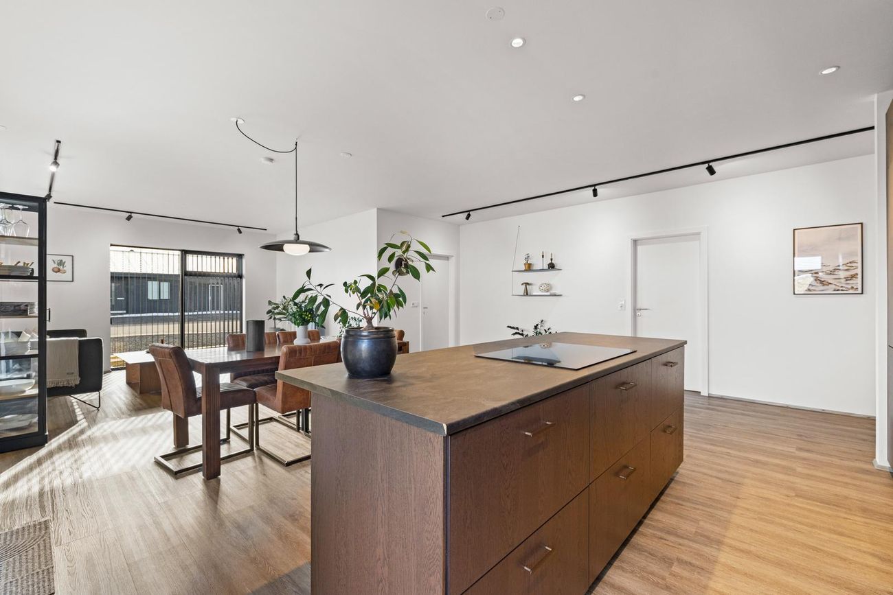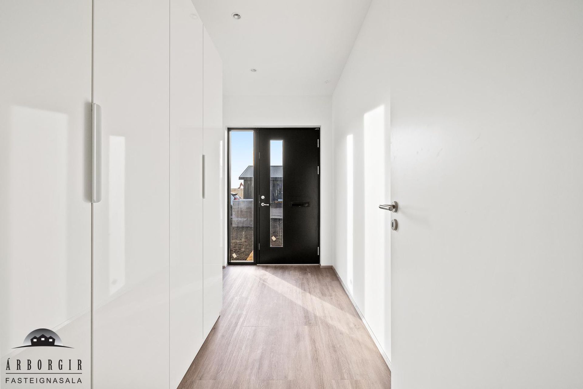 Alrými: Opið, bjart og rúmgott rými með stofu, borðstofu og eldhúsi. Vnilparket á gólfum og eldhúseyja með fallegum innréttingum. Hátt til lofts er í alrýminu. Rennihurð út á lóð er í Borðkrók. Stofan er björt og rúmgóð.