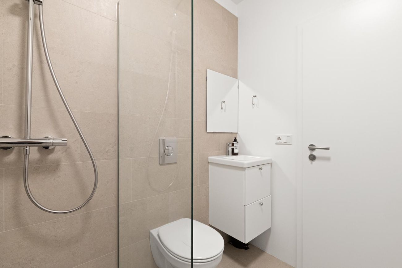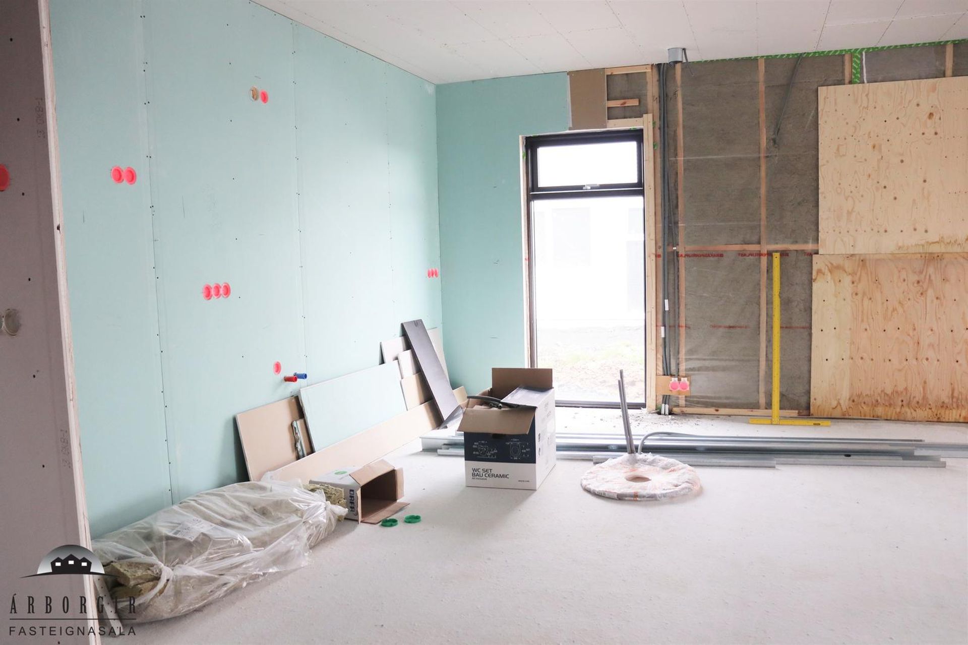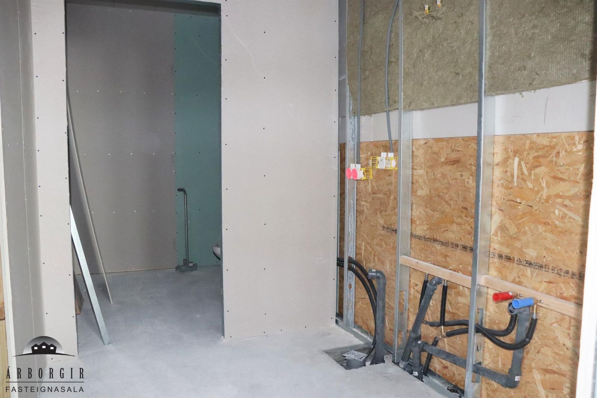 Aukabaðherbergi er innaf þvottahúsi en þar er lítil innrétting og walk in sturta