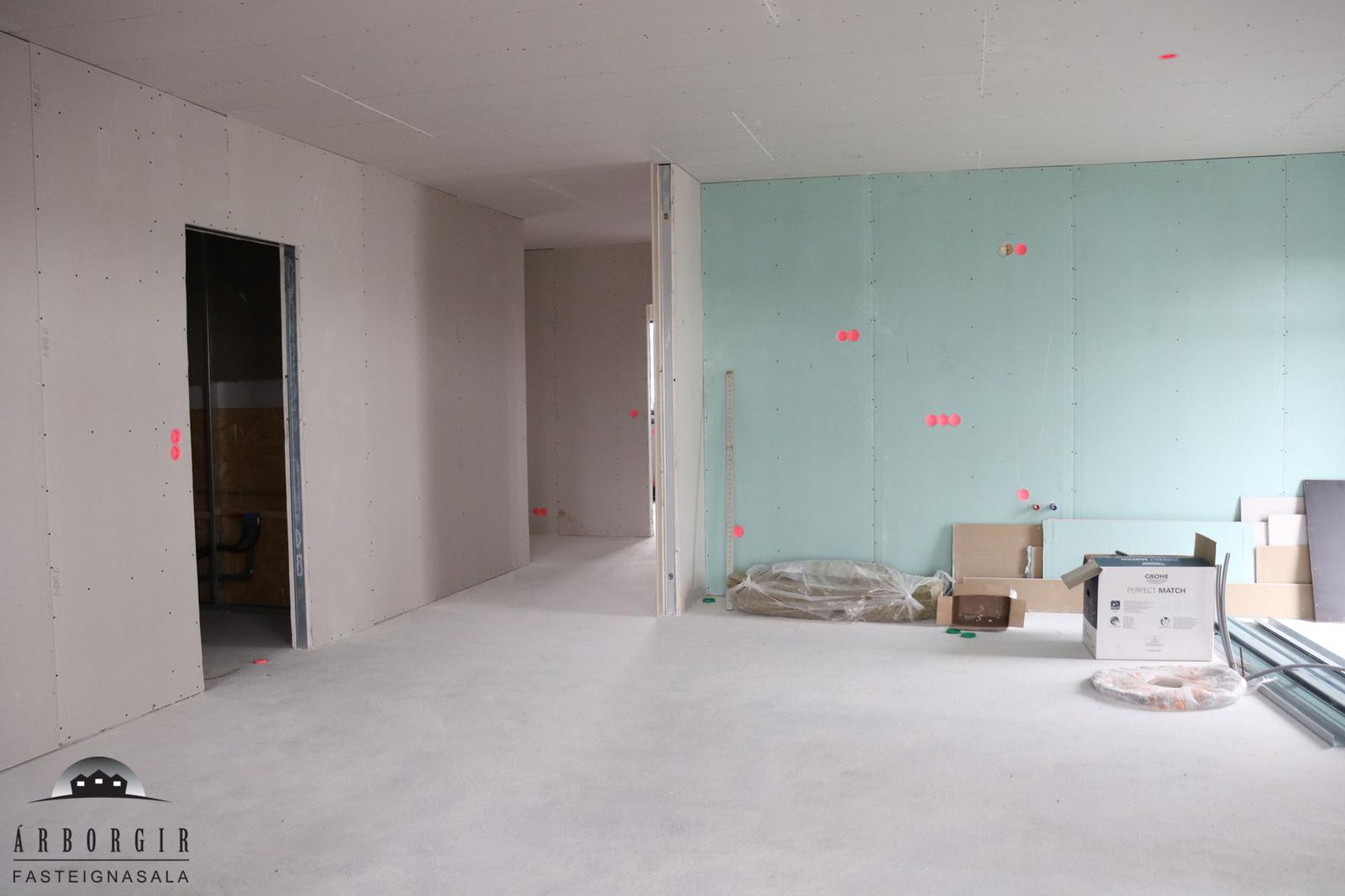 Búið er að setja upp hleðslustöð fyrir rafmagnsbíl og varmaskipti fyrir neysluvatn.