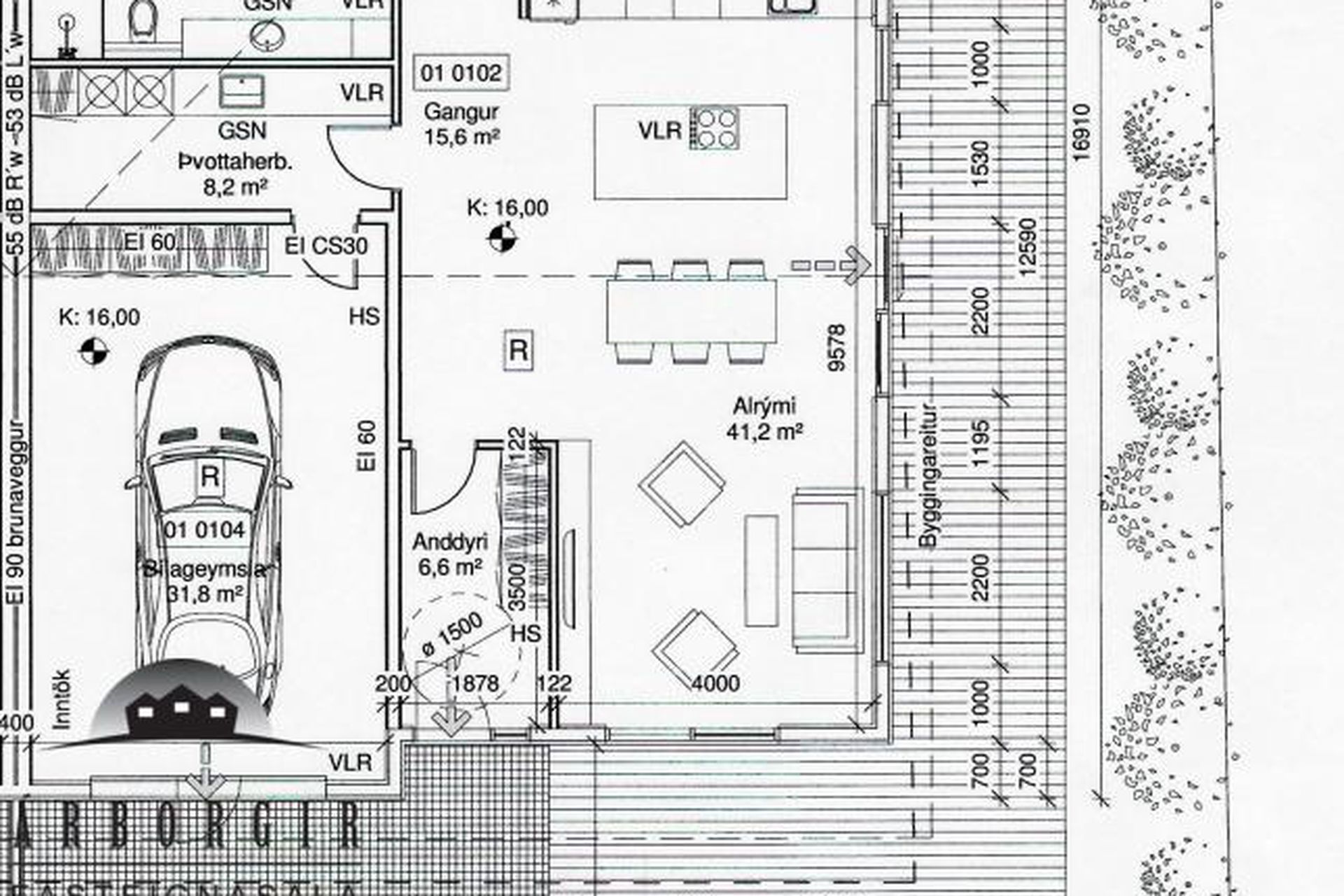 Stór bílskúr: 35,6 fermetra bílskúr
