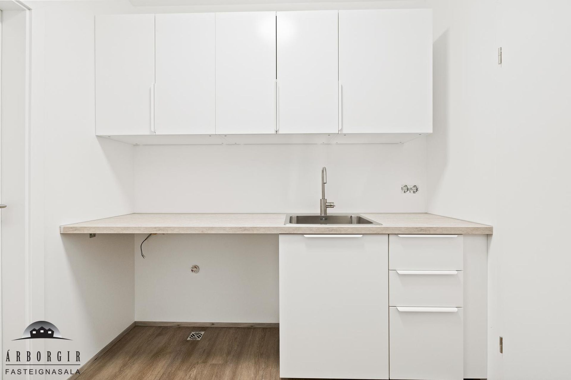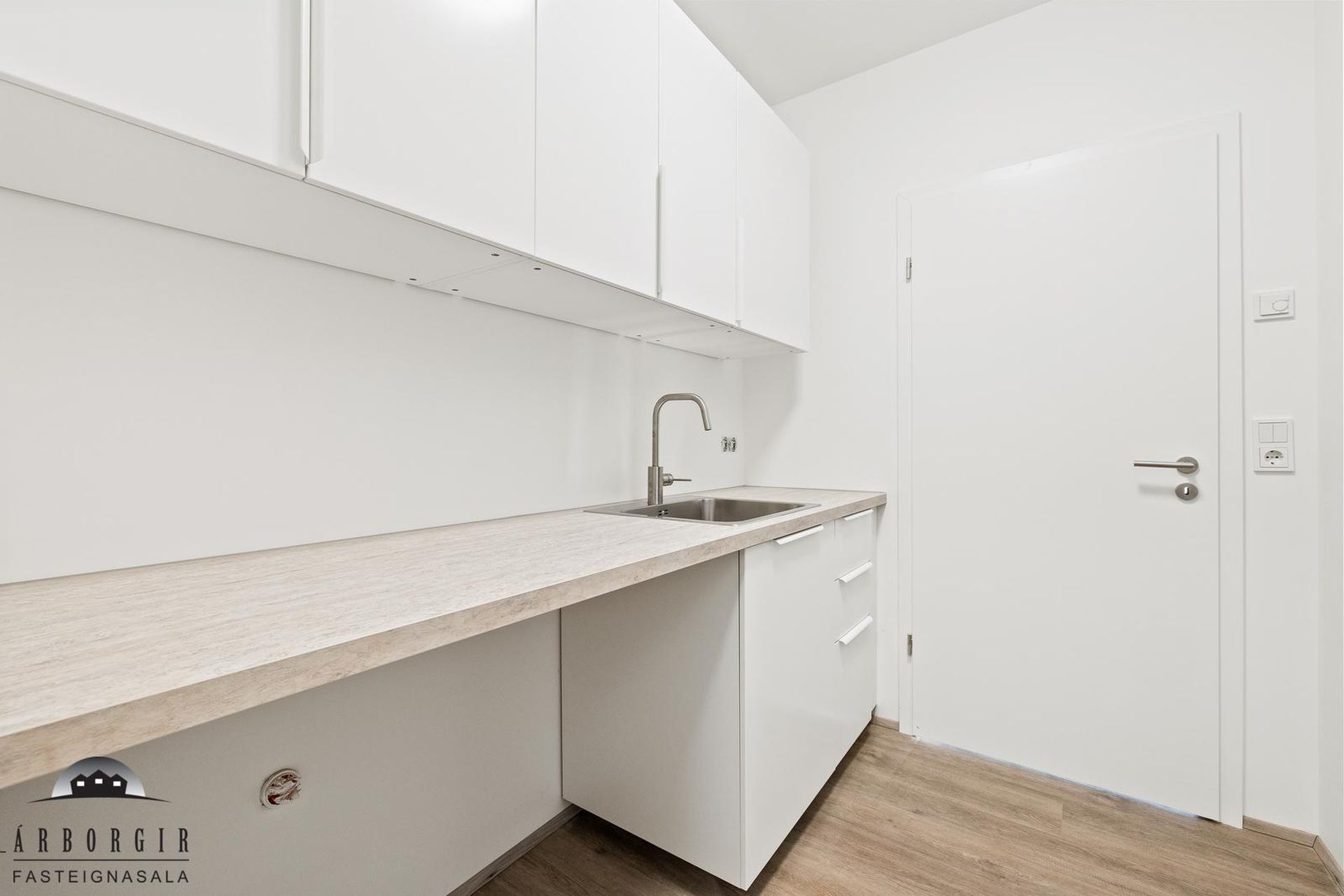 Þvottahús: Vel skipulagt með innréttingum og vask.