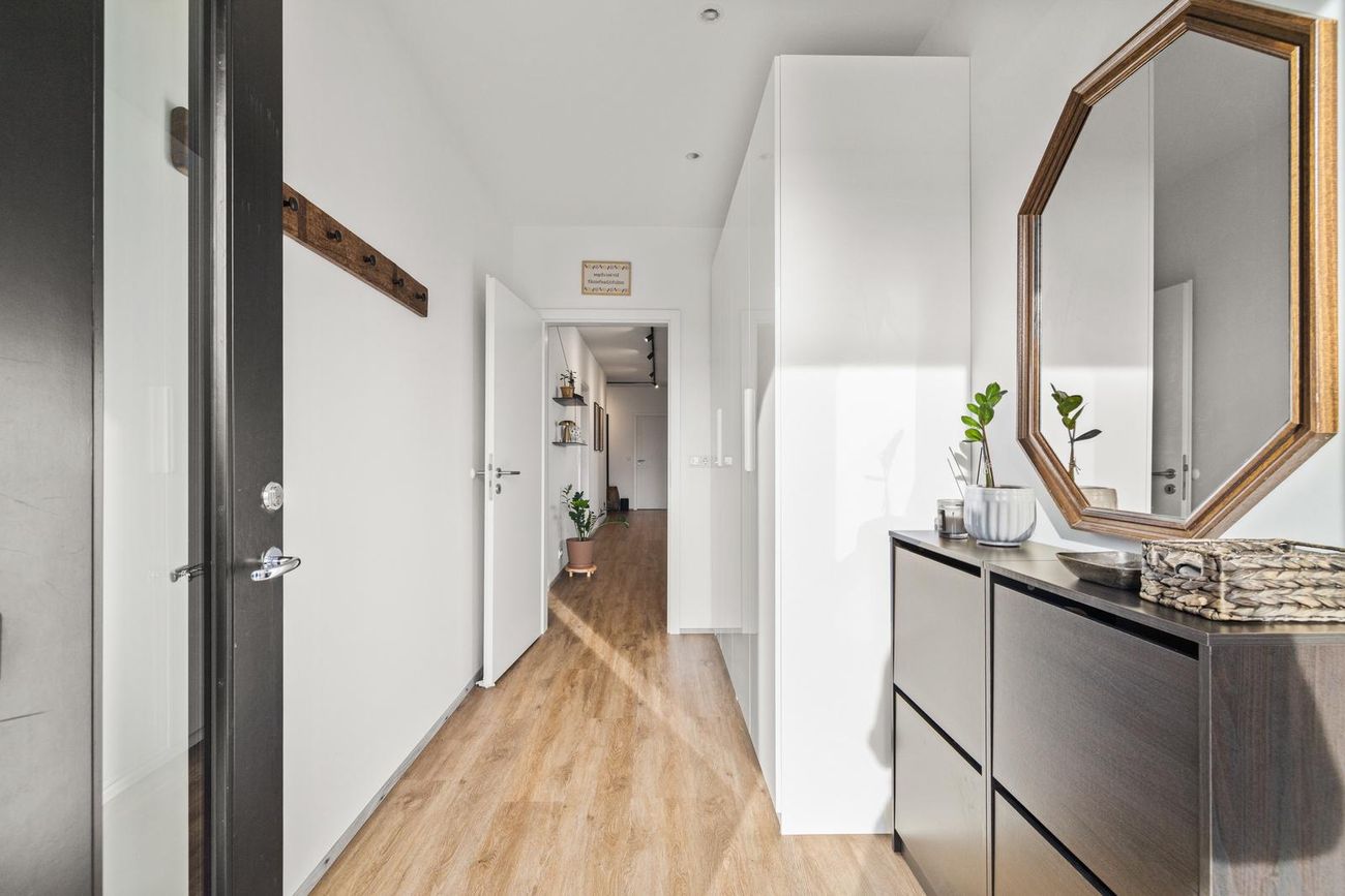 Forstofa: Rúmgóð með vínilparket á gólfi og góður fataskápur.