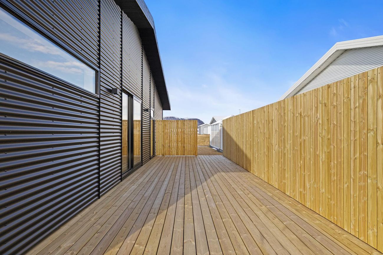 Gott og stílhreint timburhús klætt með endingargóðri álklæðningu og litaðri bárujárnþakklæðningu – þarfnast lítils viðhalds. Nánari upplýsingar gefur :