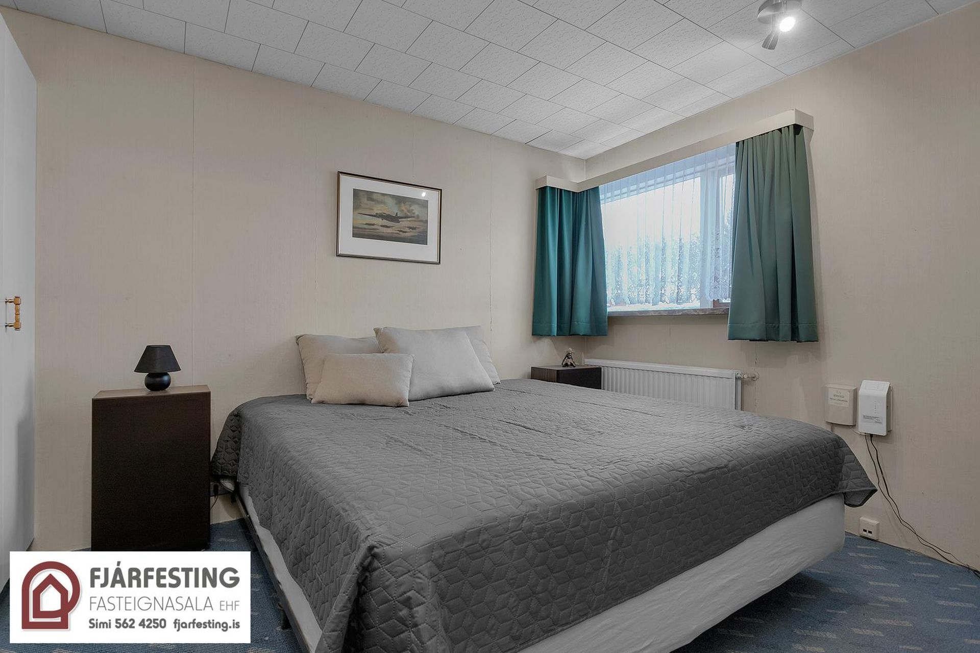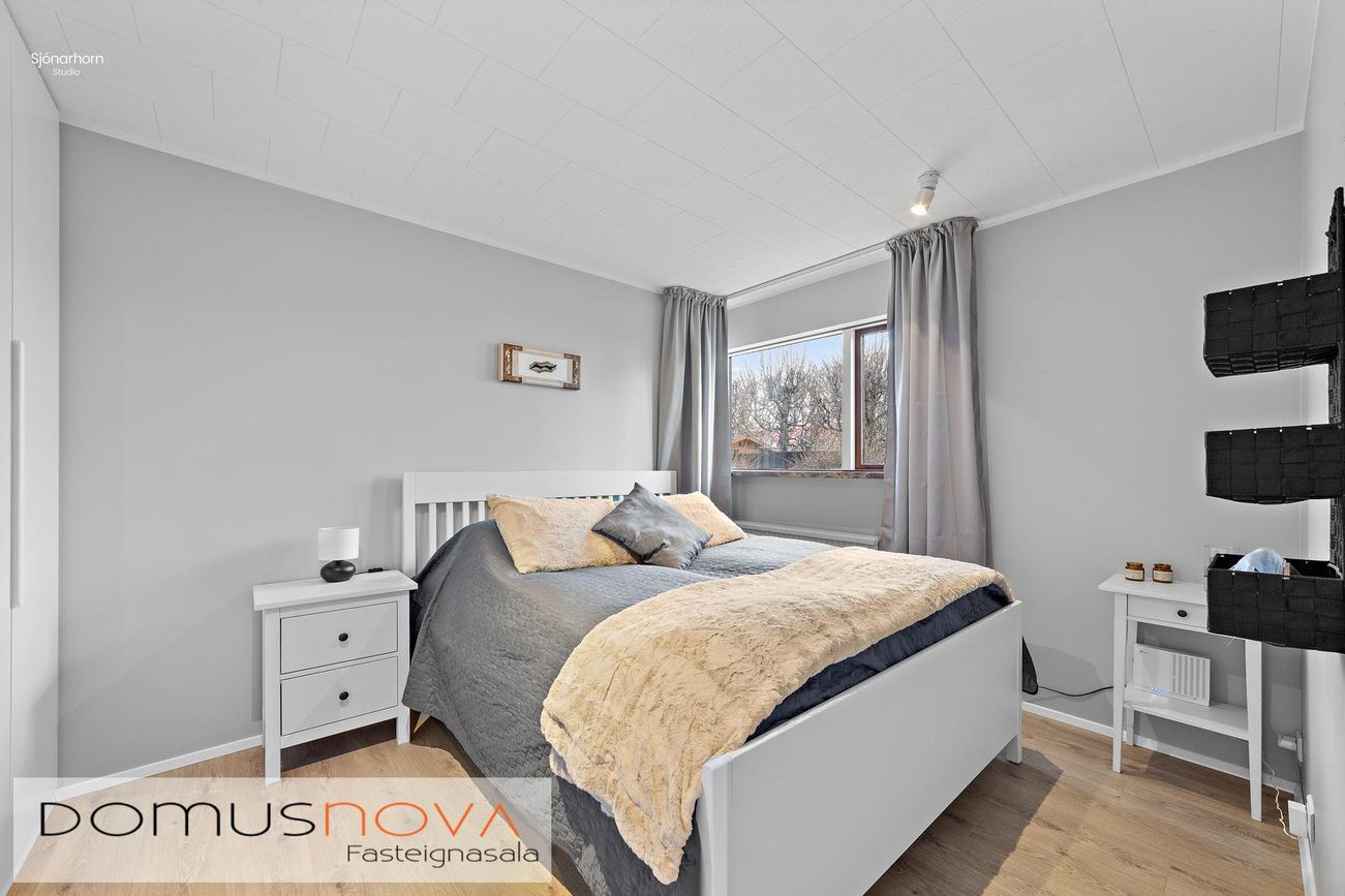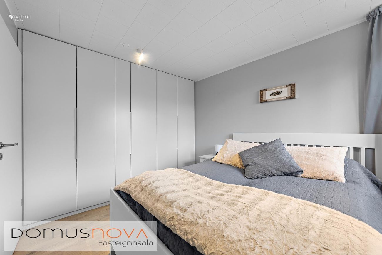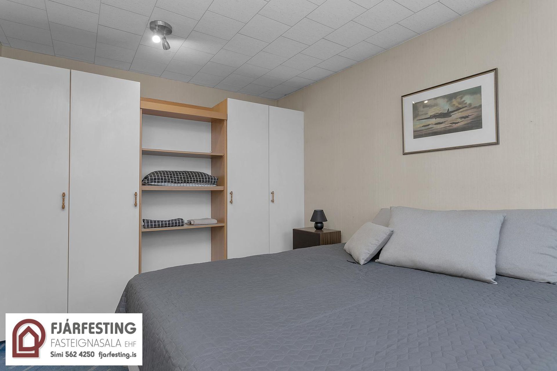 Tvö svefnherbergi á efri hæð. Eitt svefnherbergi í stúdíóíbúð og annað í 2 herbergja íbúð á neðri hæð.