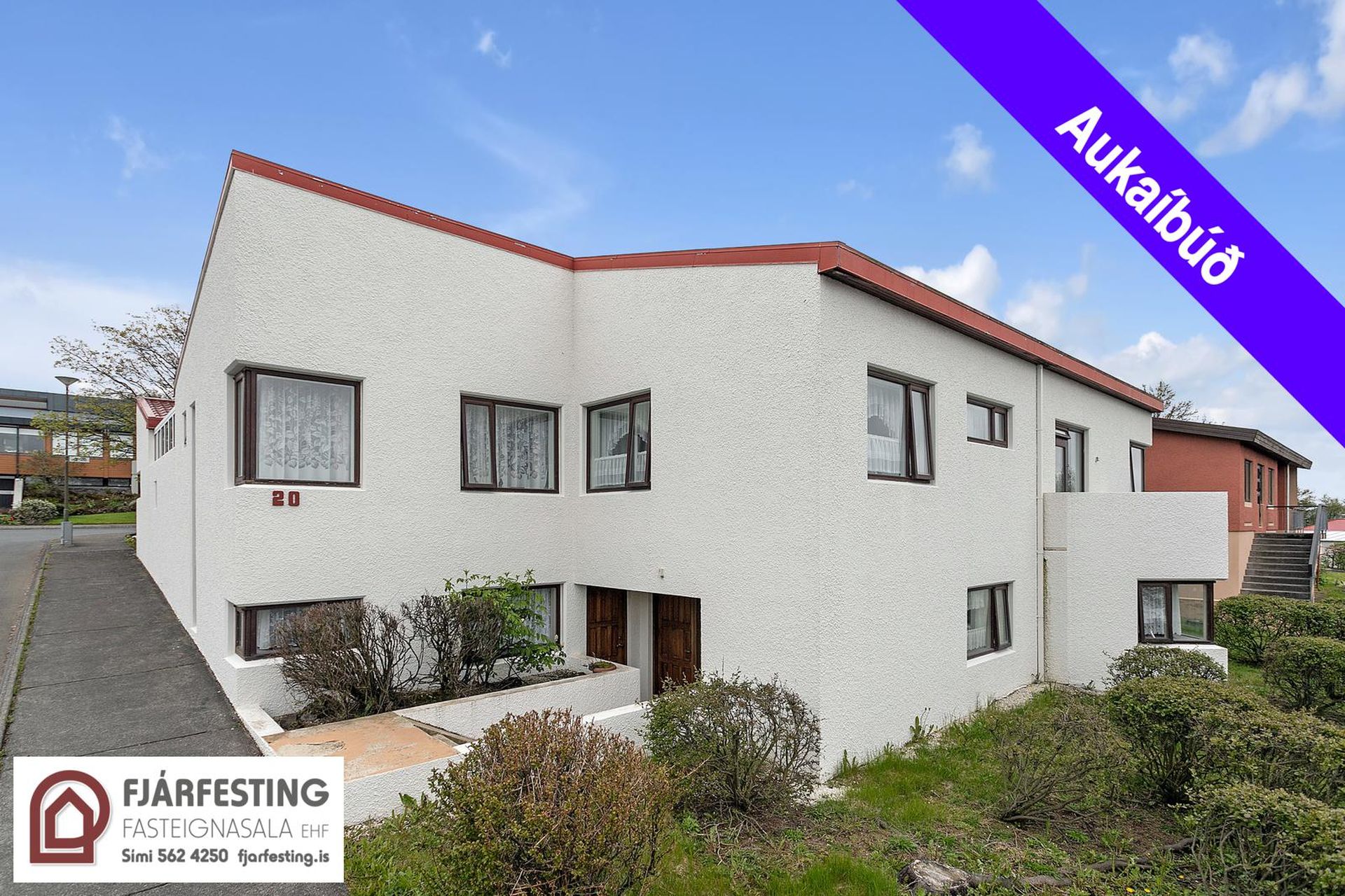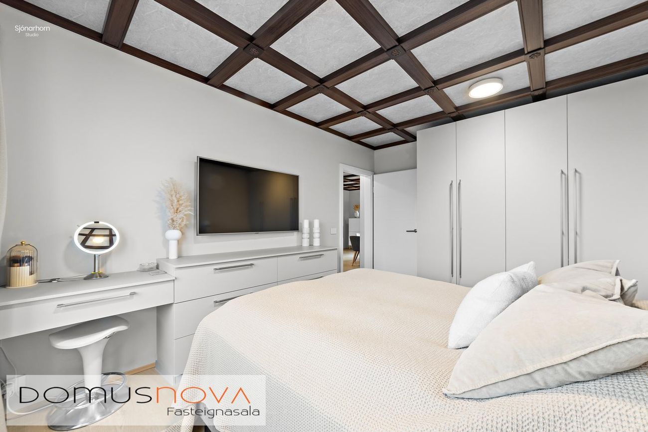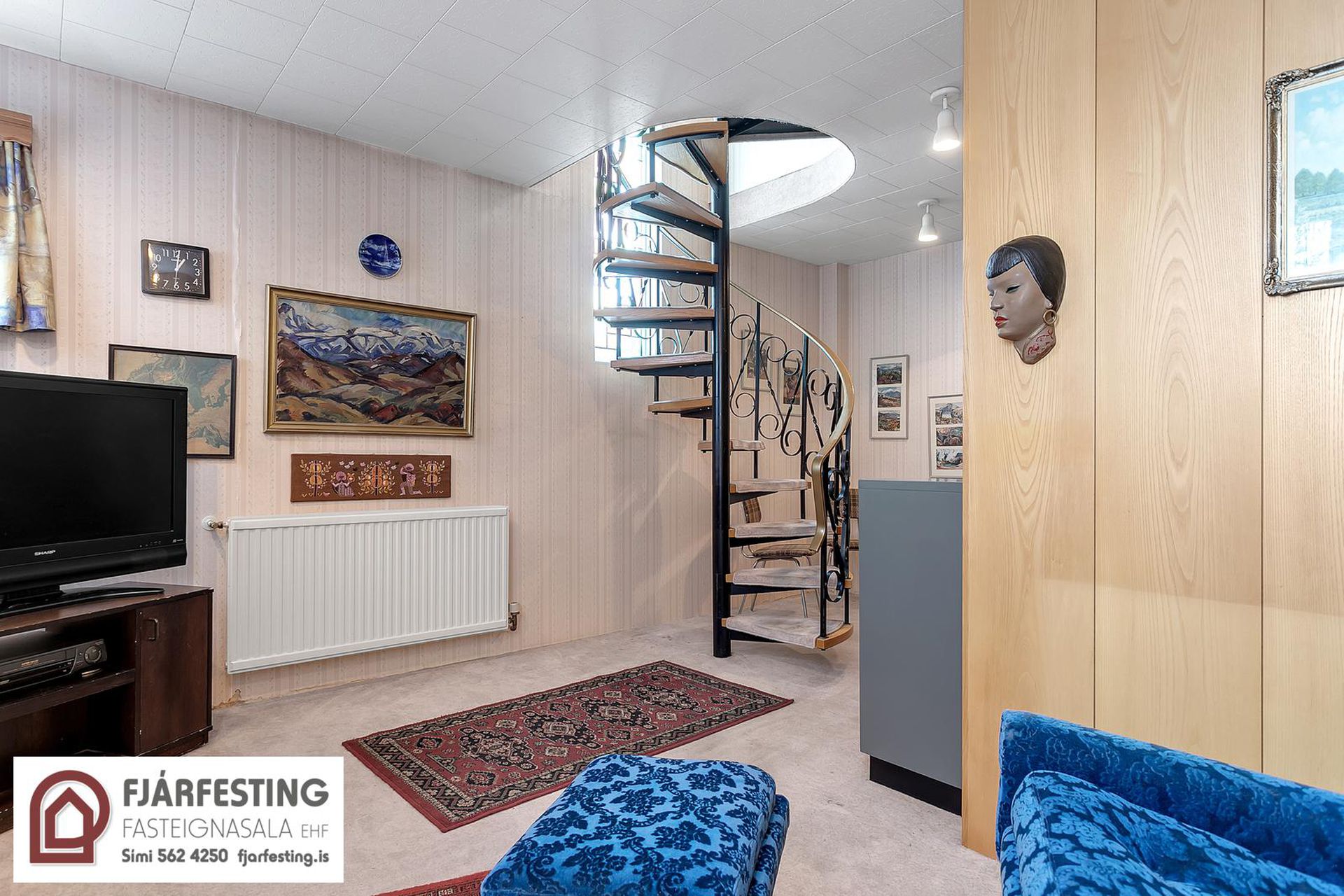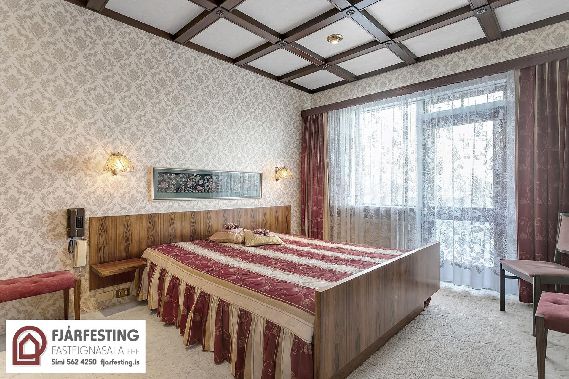 Tvö svefnherbergi á efri hæð. Eitt svefnherbergi í stúdíóíbúð og annað í 2 herbergja íbúð á neðri hæð.