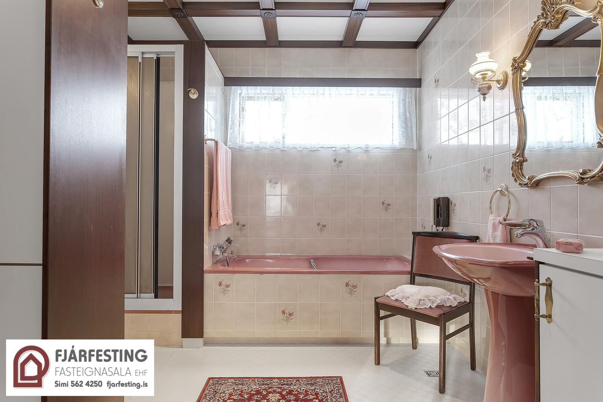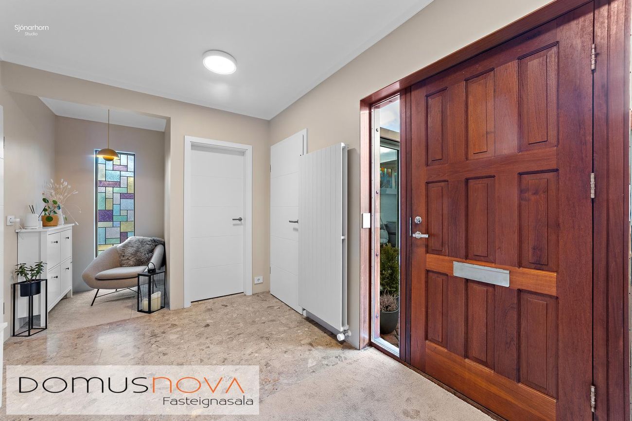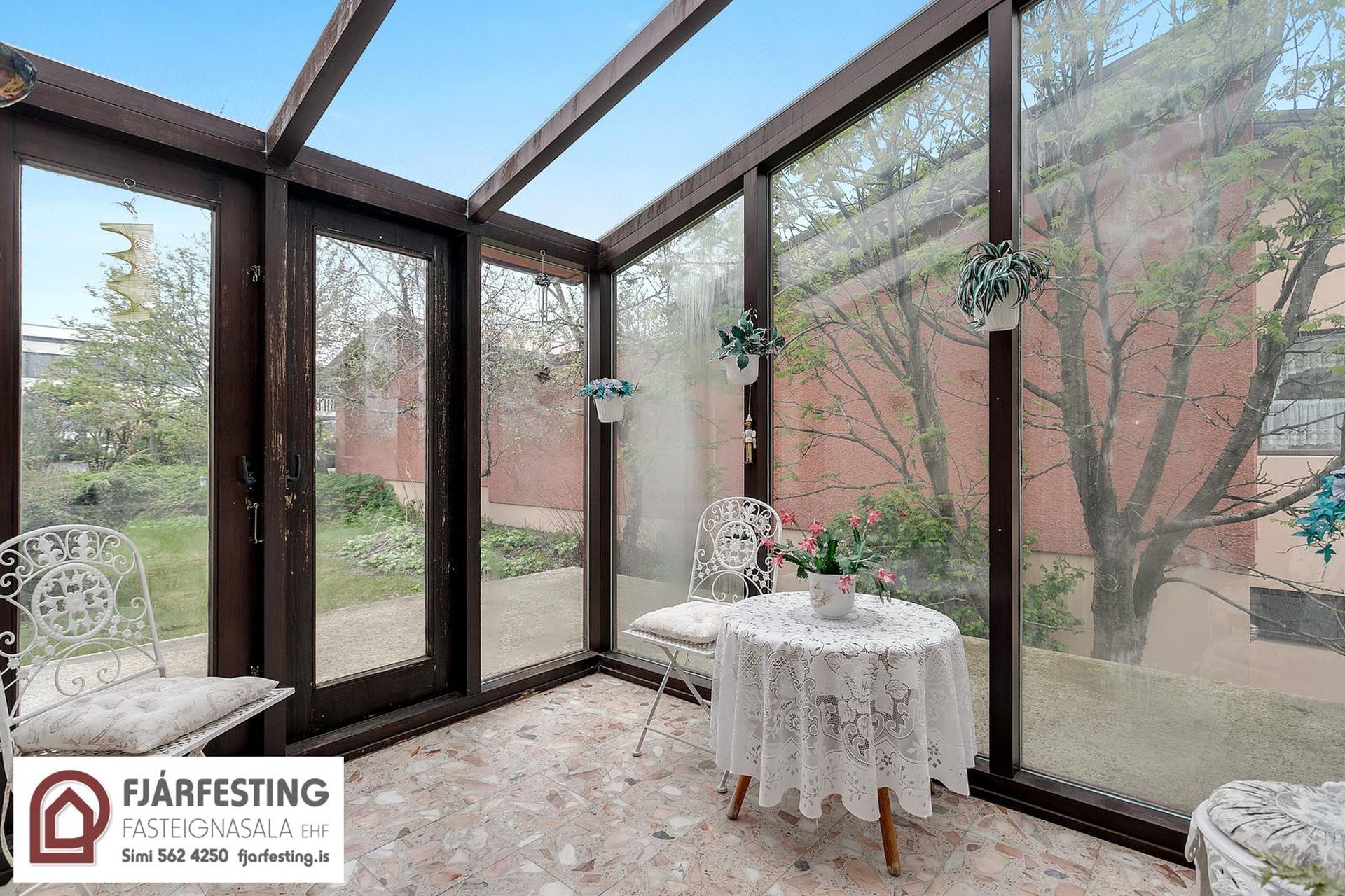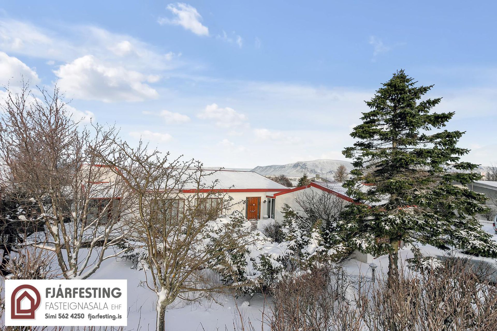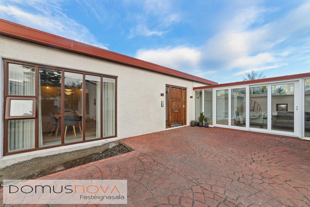 Stór garður til suðurs með góðu skjóli. Tveir sólskálar og nýjar lagnir fyrir heitan pott.
