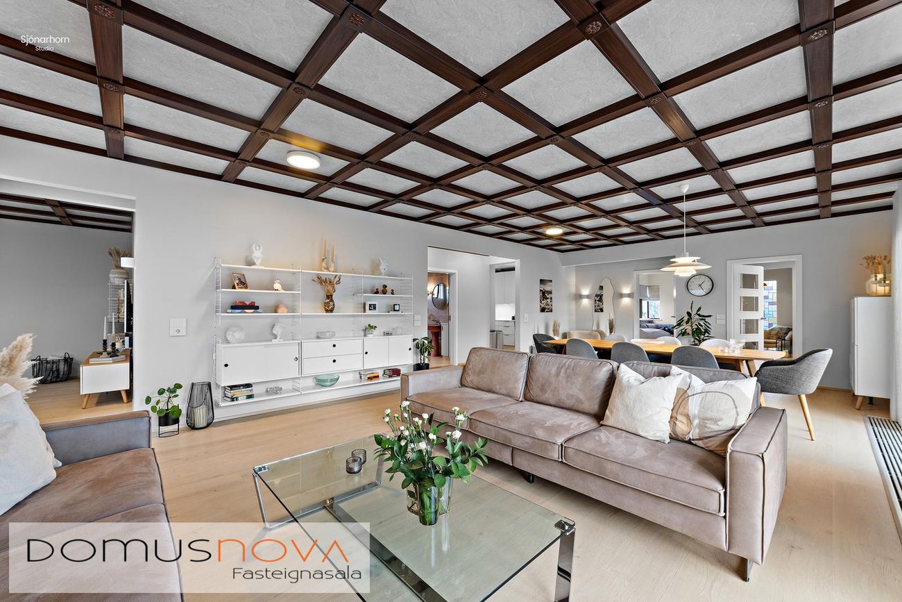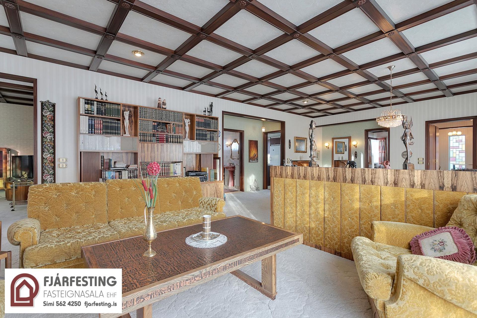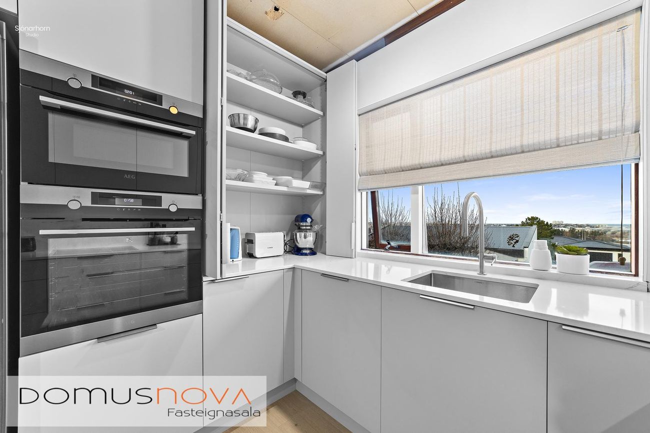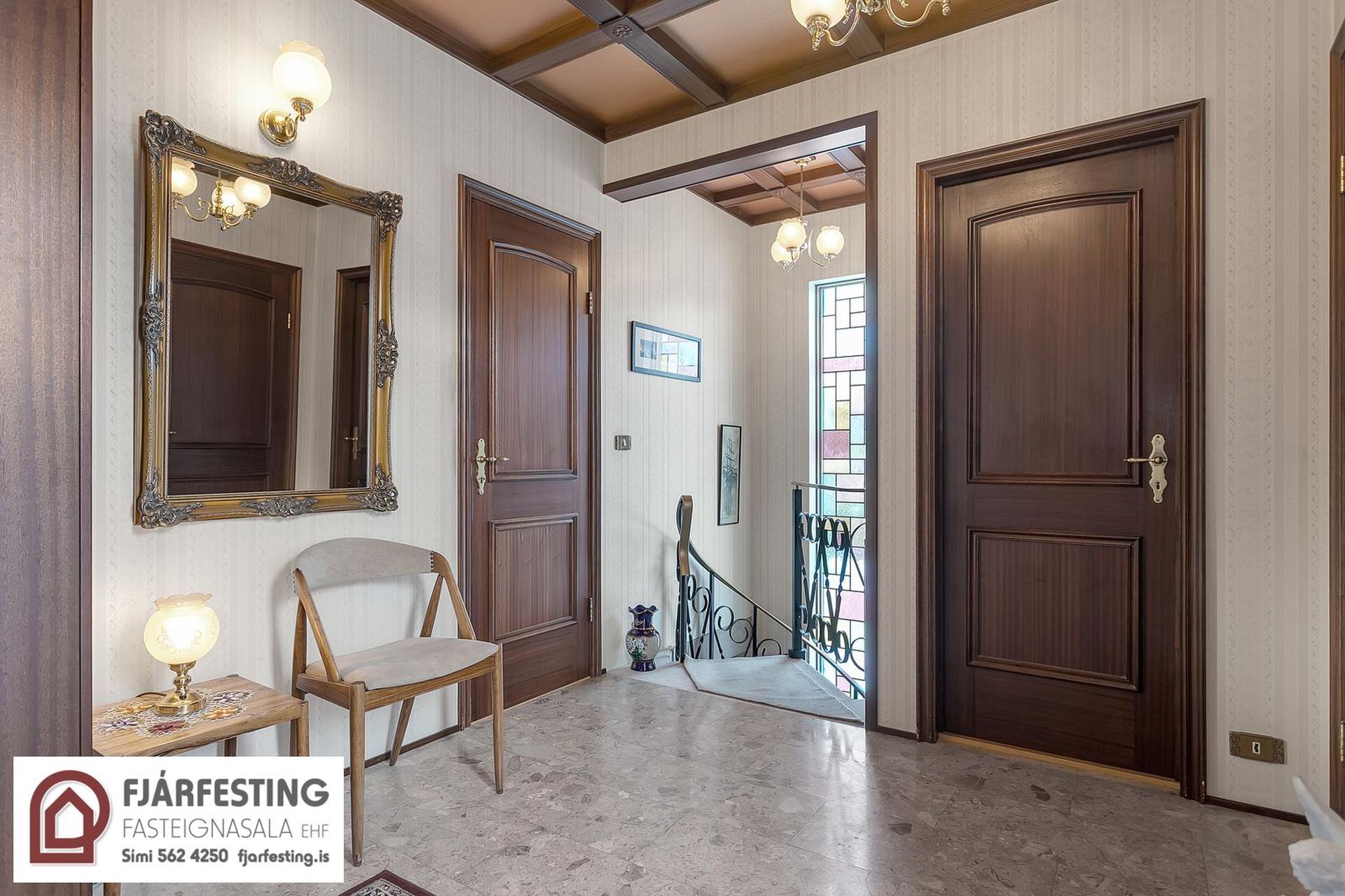 Einbýlishús 274,5 fm með 2 aukaíbúðir (65 fm og 40 fm). Bílskúr 42,9 fm. Nýlega endurnýjað eldhús, parketgólf og kerfi. Glæsilegt útsýni og stór garður.