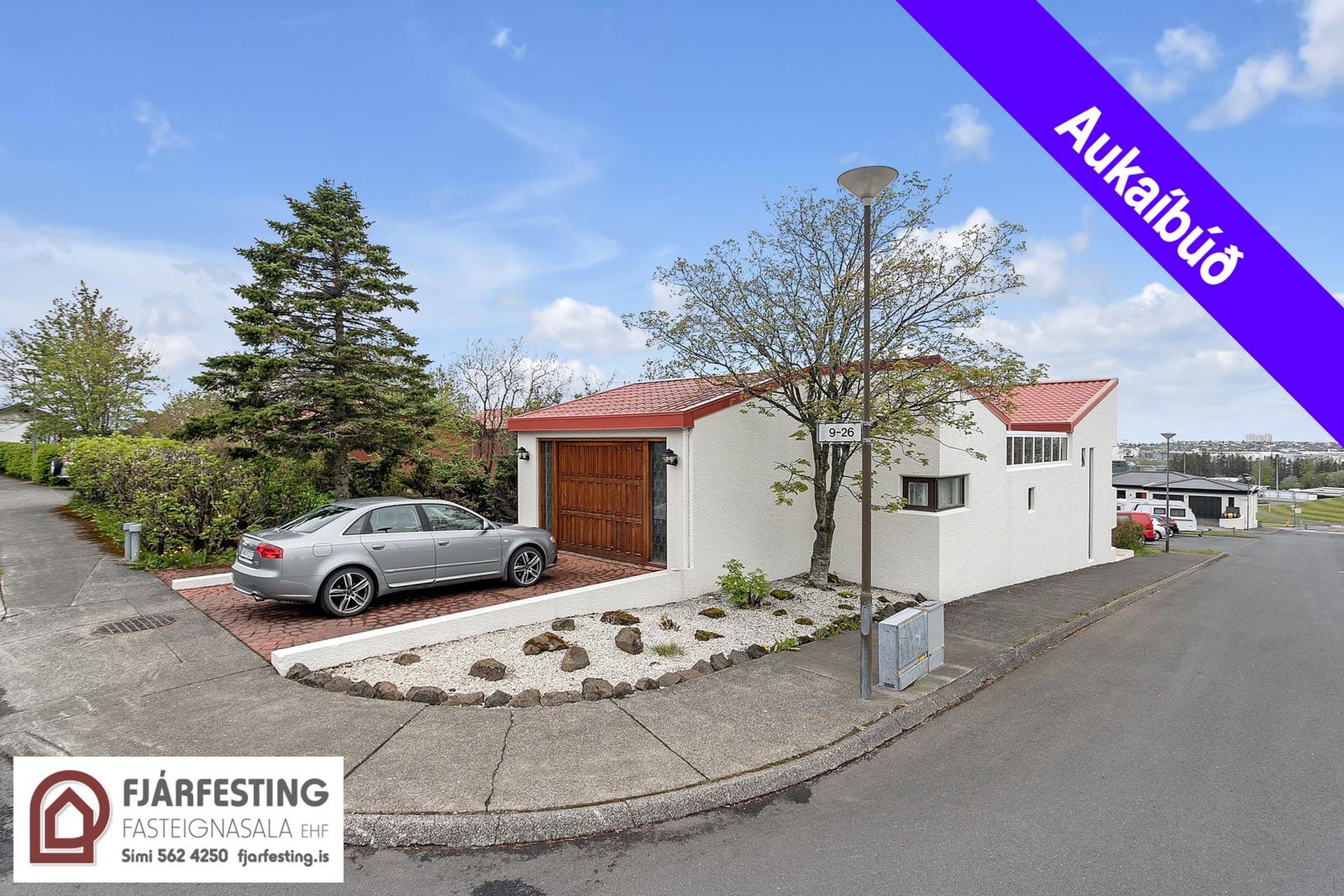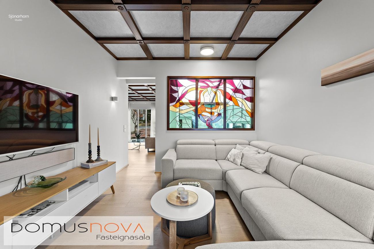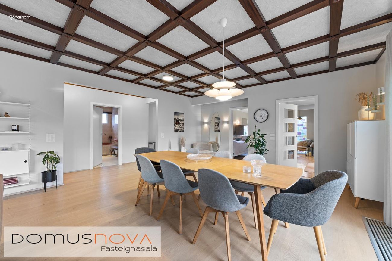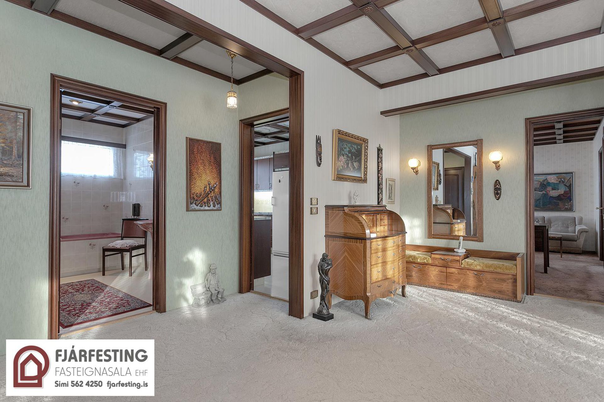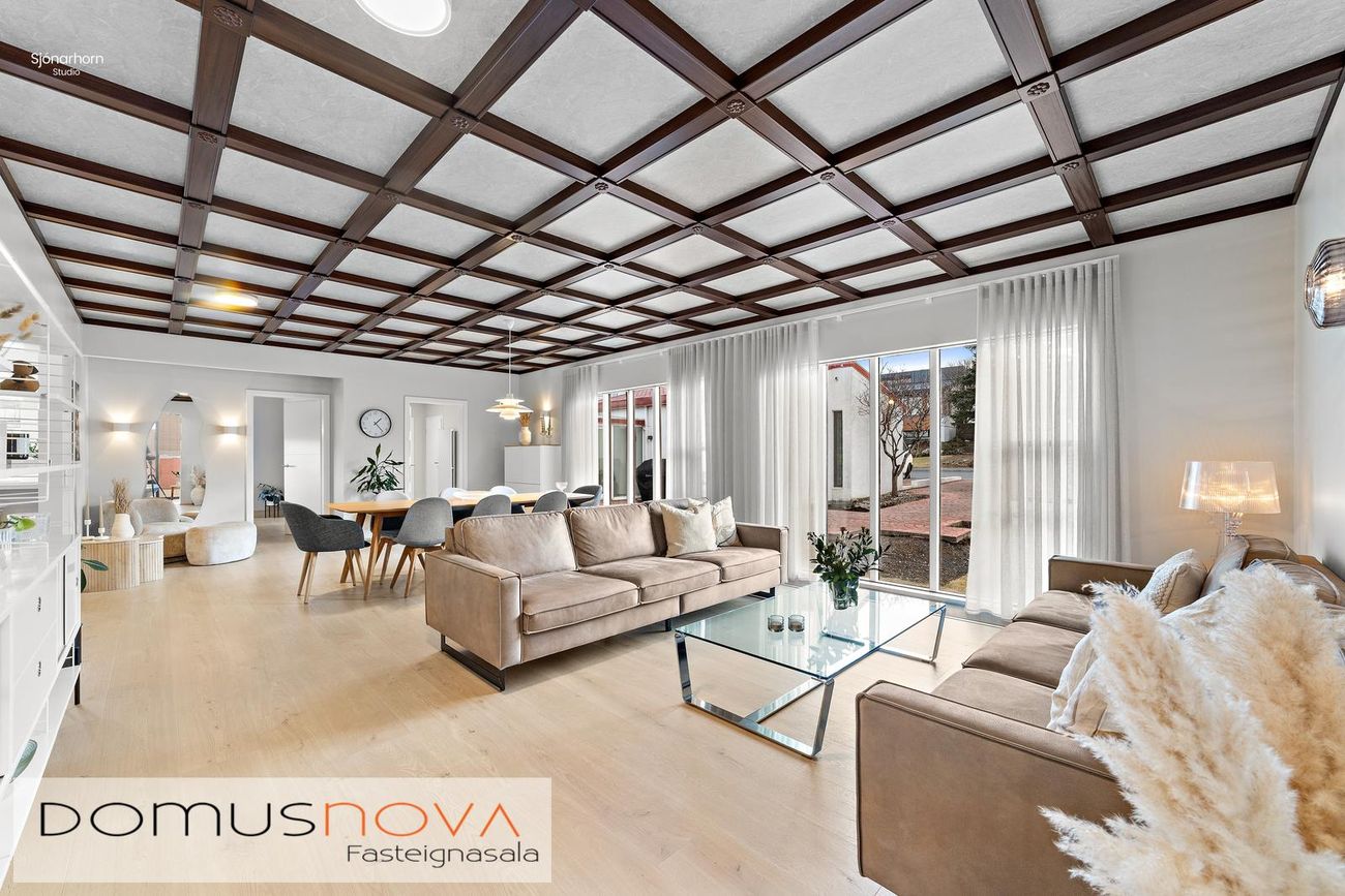 Einbýlishús 274,5 fm með 2 aukaíbúðir (65 fm og 40 fm). Bílskúr 42,9 fm. Nýlega endurnýjað eldhús, parketgólf og kerfi. Glæsilegt útsýni og stór garður.
