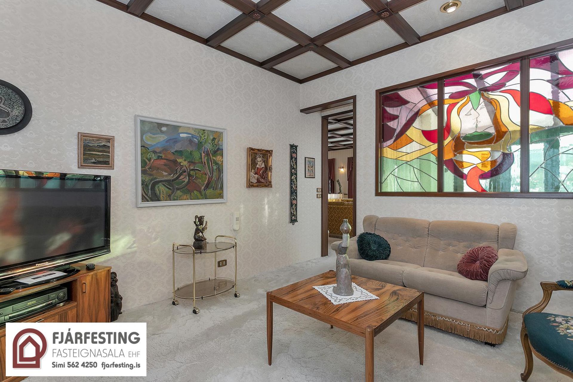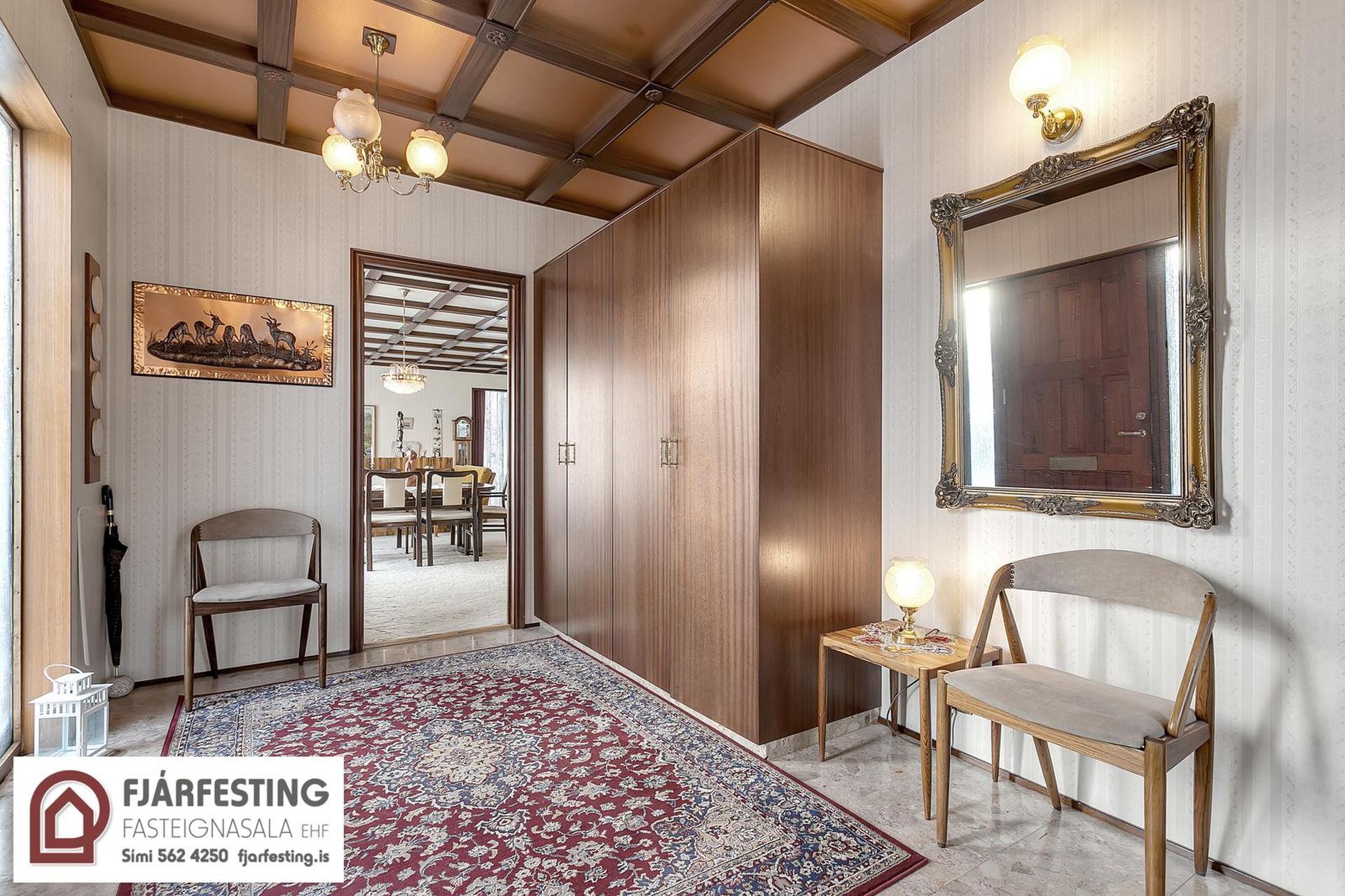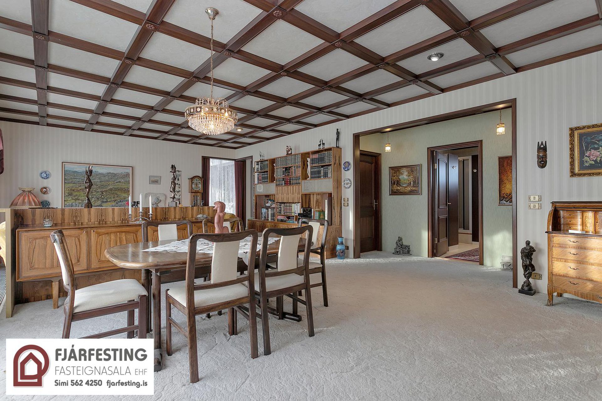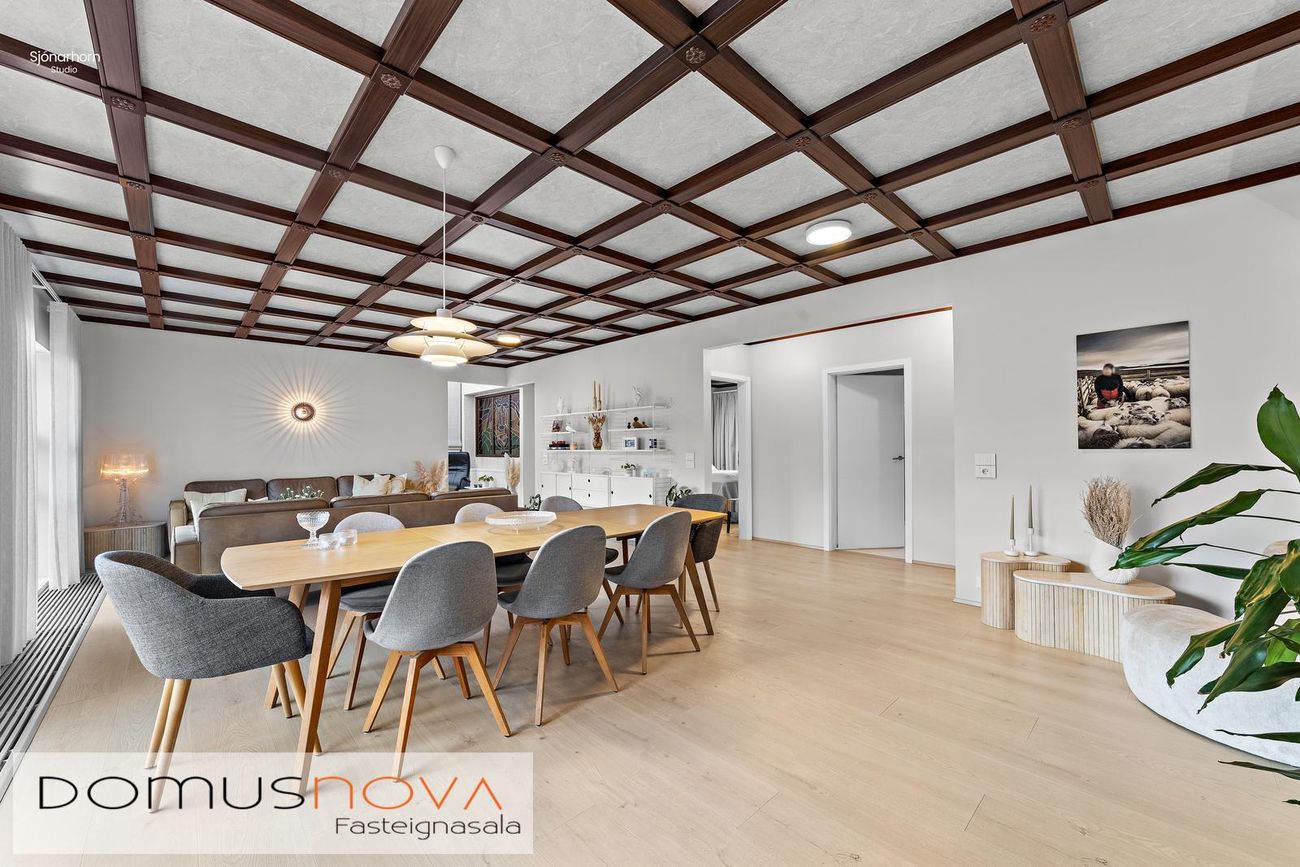 Einbýlishús 274,5 fm með 2 aukaíbúðir (65 fm og 40 fm). Bílskúr 42,9 fm. Nýlega endurnýjað eldhús, parketgólf og kerfi. Glæsilegt útsýni og stór garður.