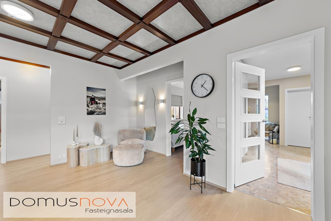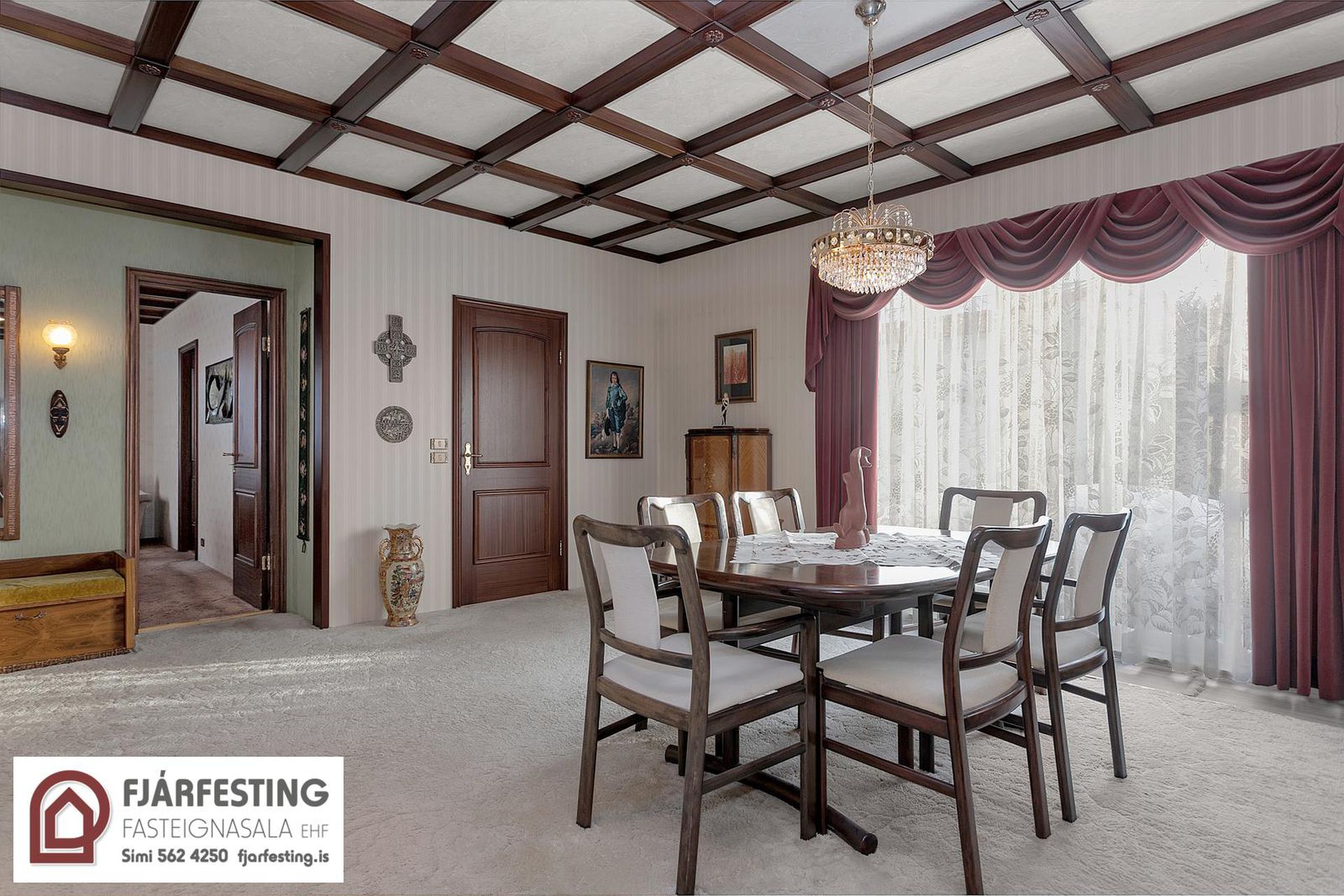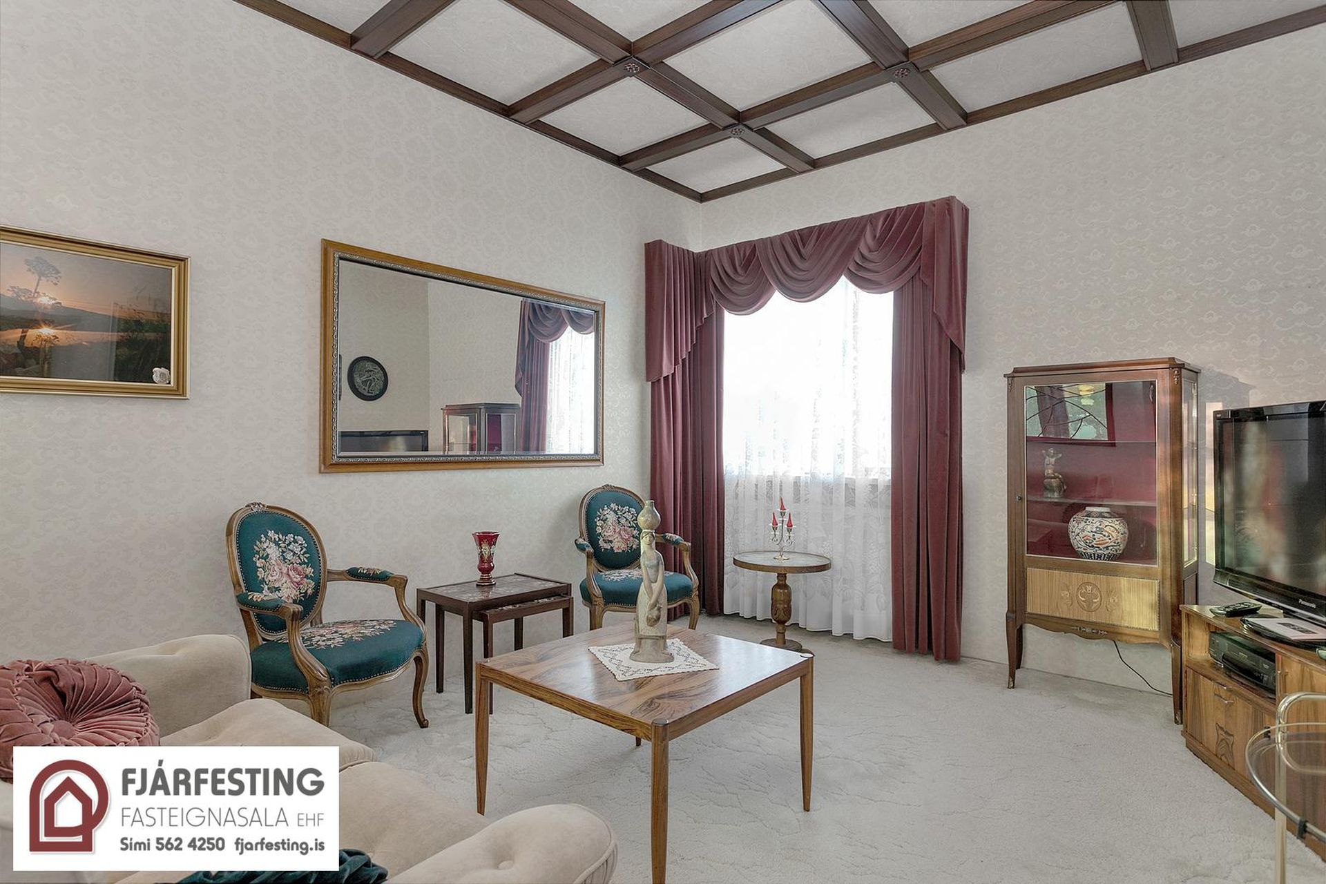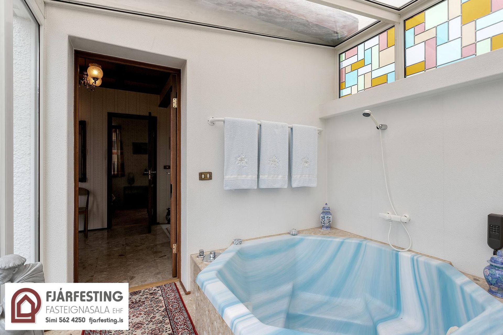 Einbýlishús 274,5 fm með 2 aukaíbúðir (65 fm og 40 fm). Bílskúr 42,9 fm. Nýlega endurnýjað eldhús, parketgólf og kerfi. Glæsilegt útsýni og stór garður.
