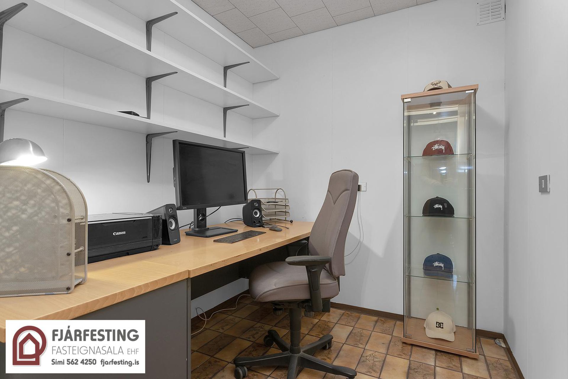 Bílskúr með geymslum á millilofti og geymsla innaf. Aðskilin geymsla í 2 herbergja íbúð.