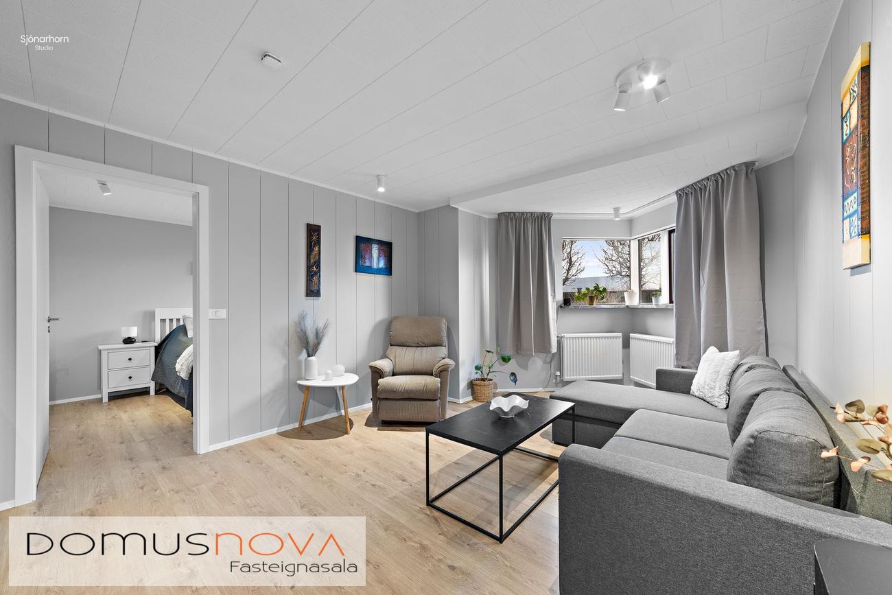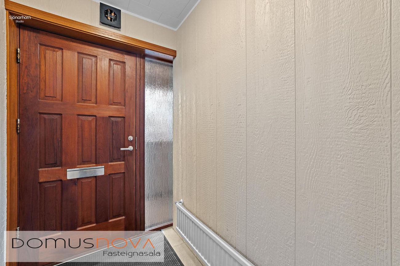 Þríhætt hús með aðalíbúð á efri hæð, tveimur aukaíbúðum á neðri hæð með sérinngöngum. Aðalhæð með 2 svefnherbergjum, eldhúsi, baðherbergi og tveimur sólskálum.