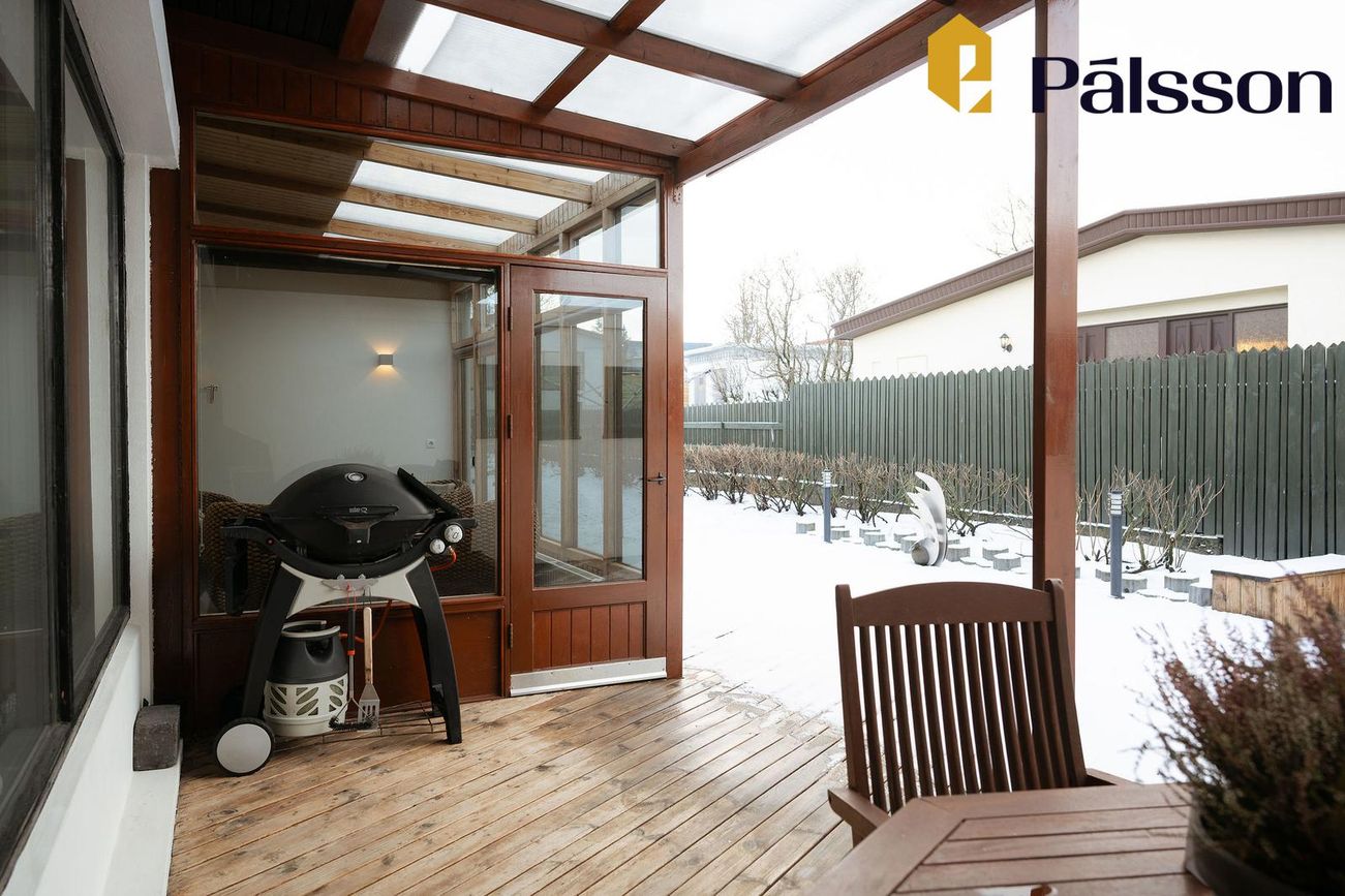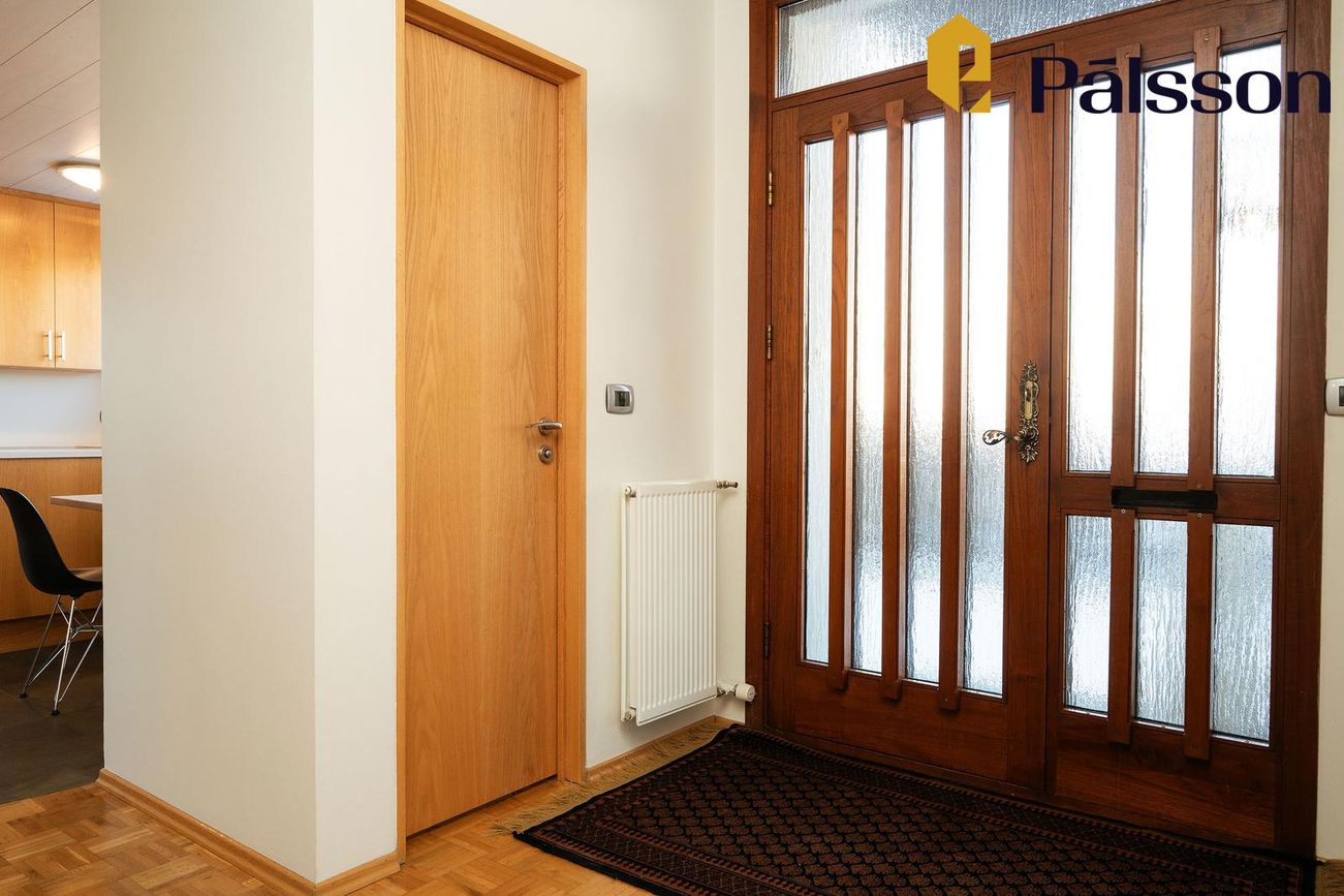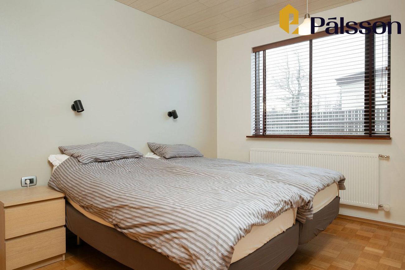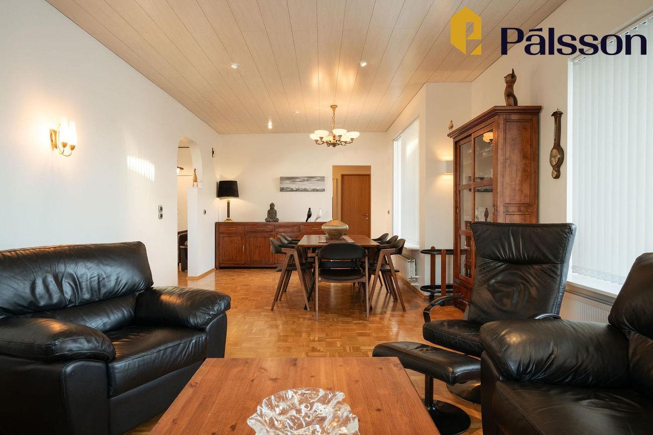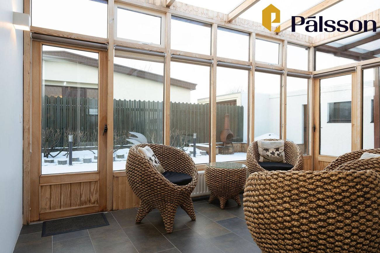 185,2m2 einbýlishús með 35,7m2 bílskúr. Þrjú svefnherbergi, garður, garðskáli og nálægð við náttúruna.