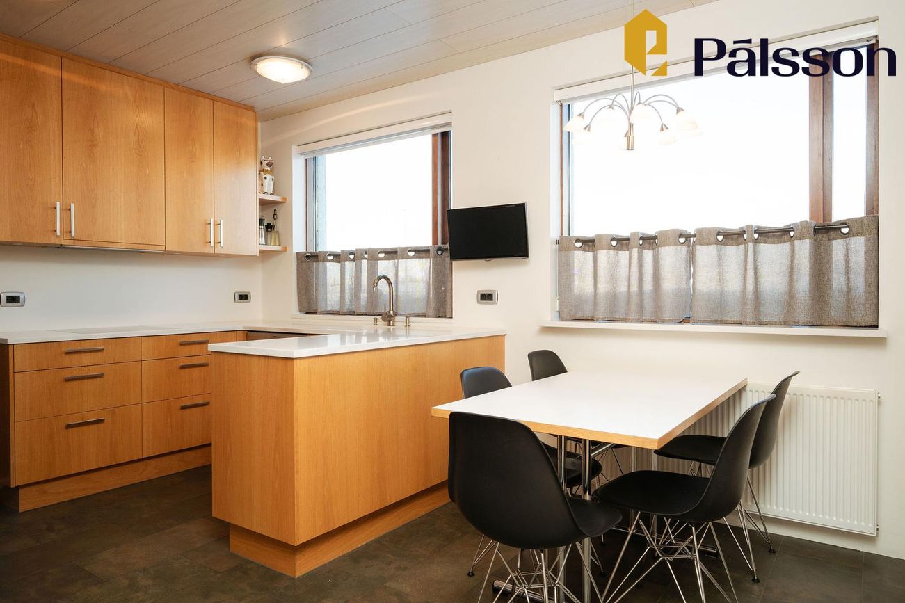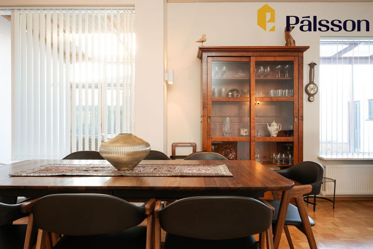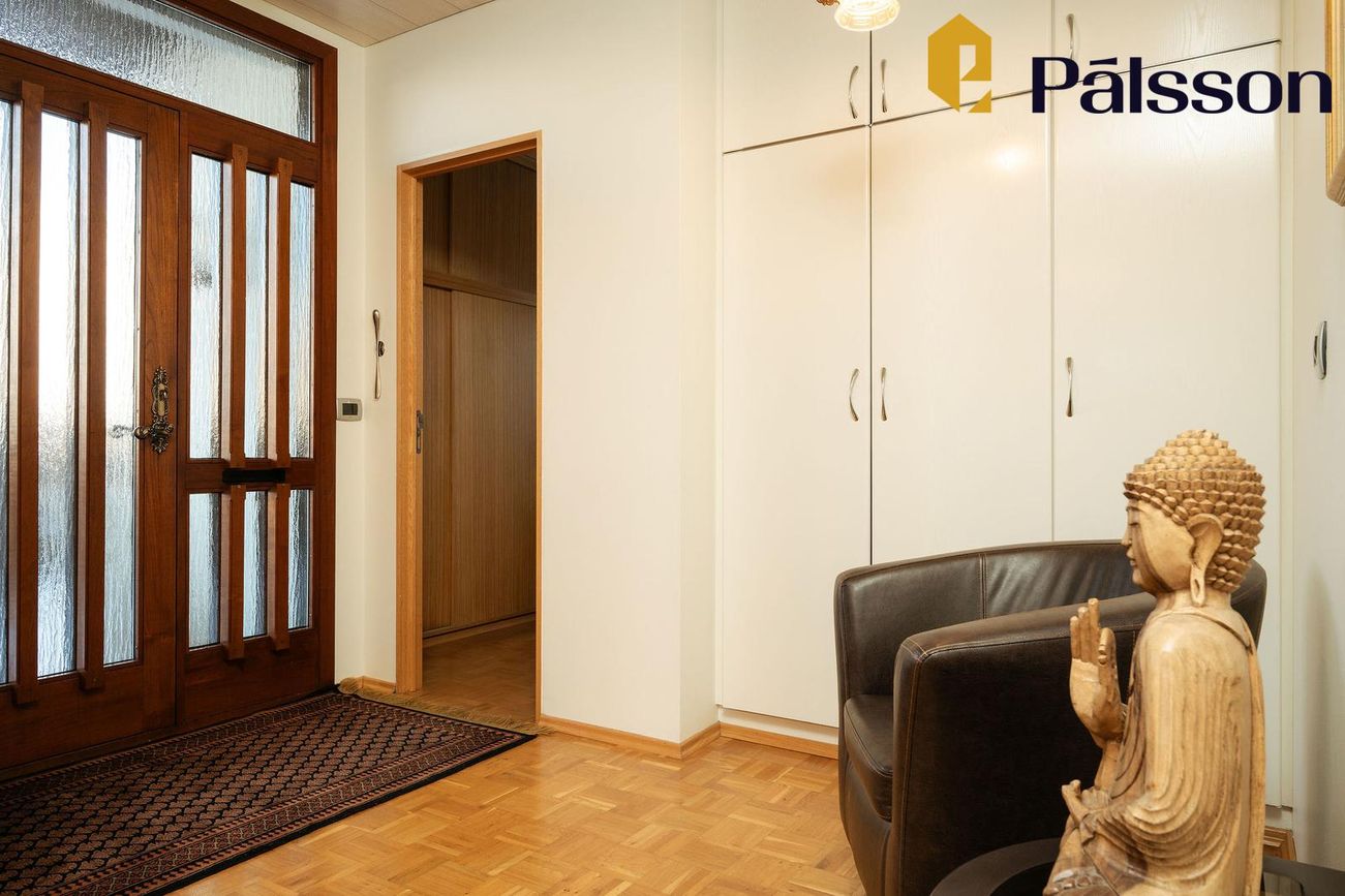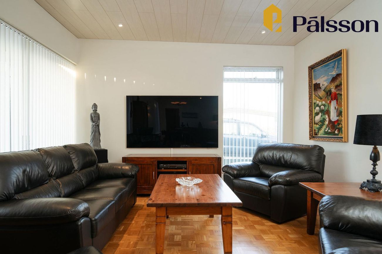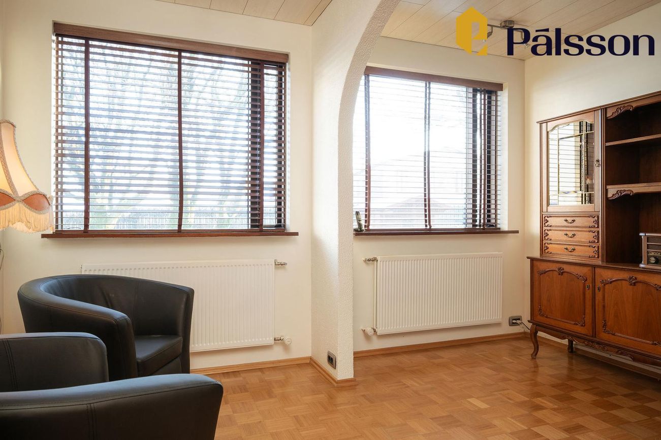 185,2m2 einbýlishús með 35,7m2 bílskúr. Þrjú svefnherbergi, garður, garðskáli og nálægð við náttúruna.