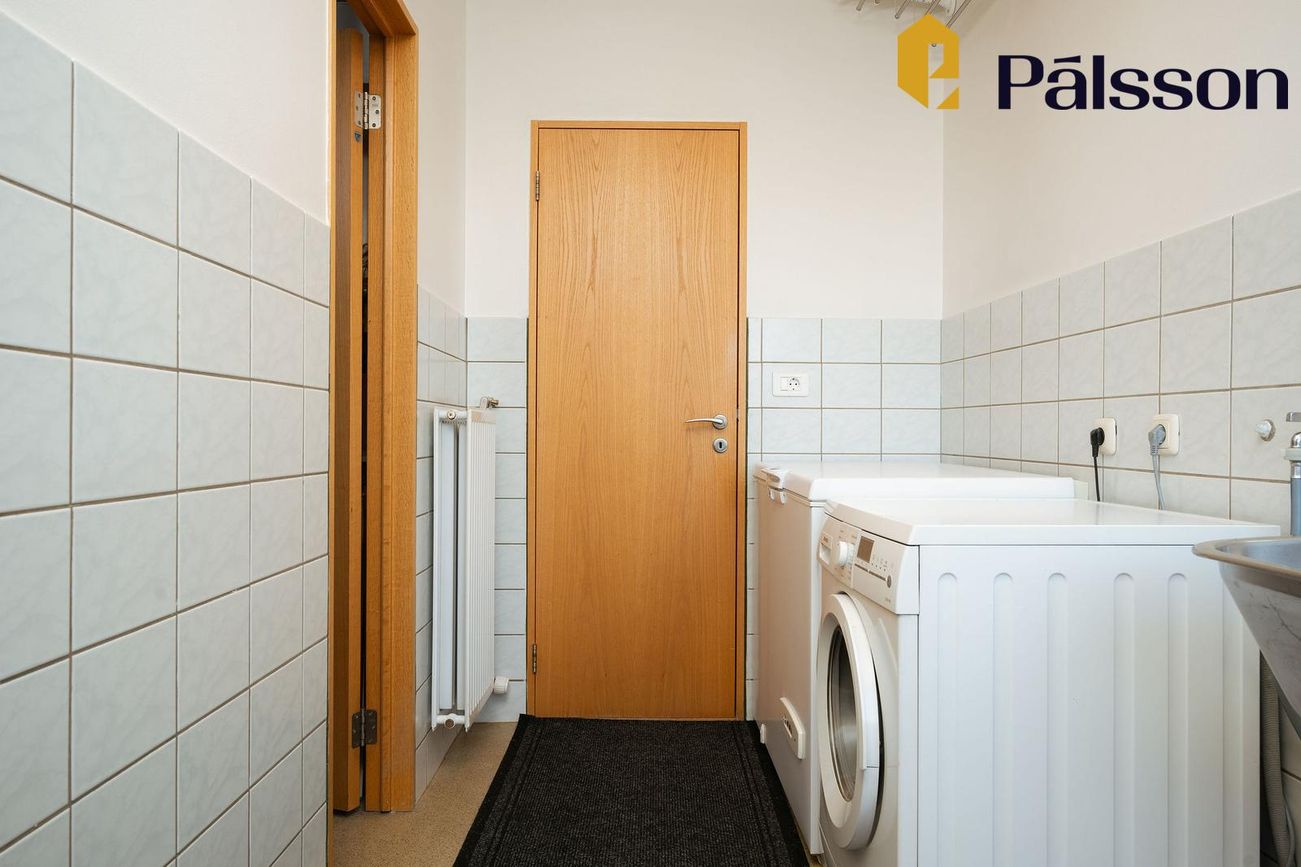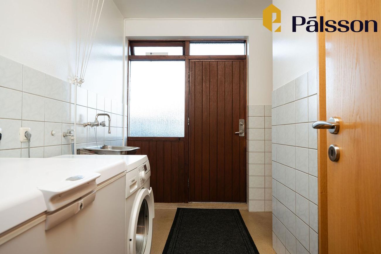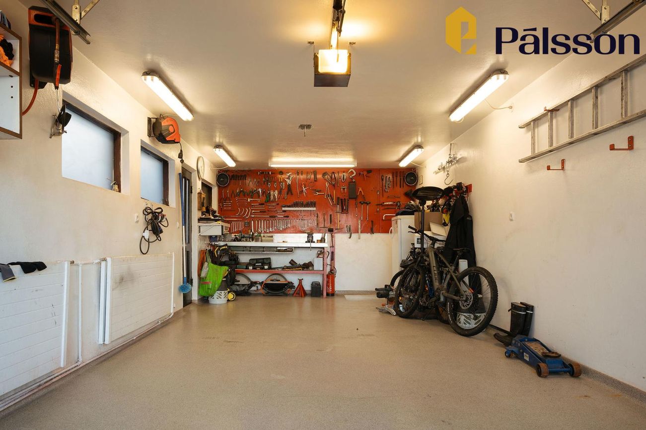 Bílskúr með hita, rafmagni og vatni, auka rými undir bílskúr sem ekki er með í heildarstærð.