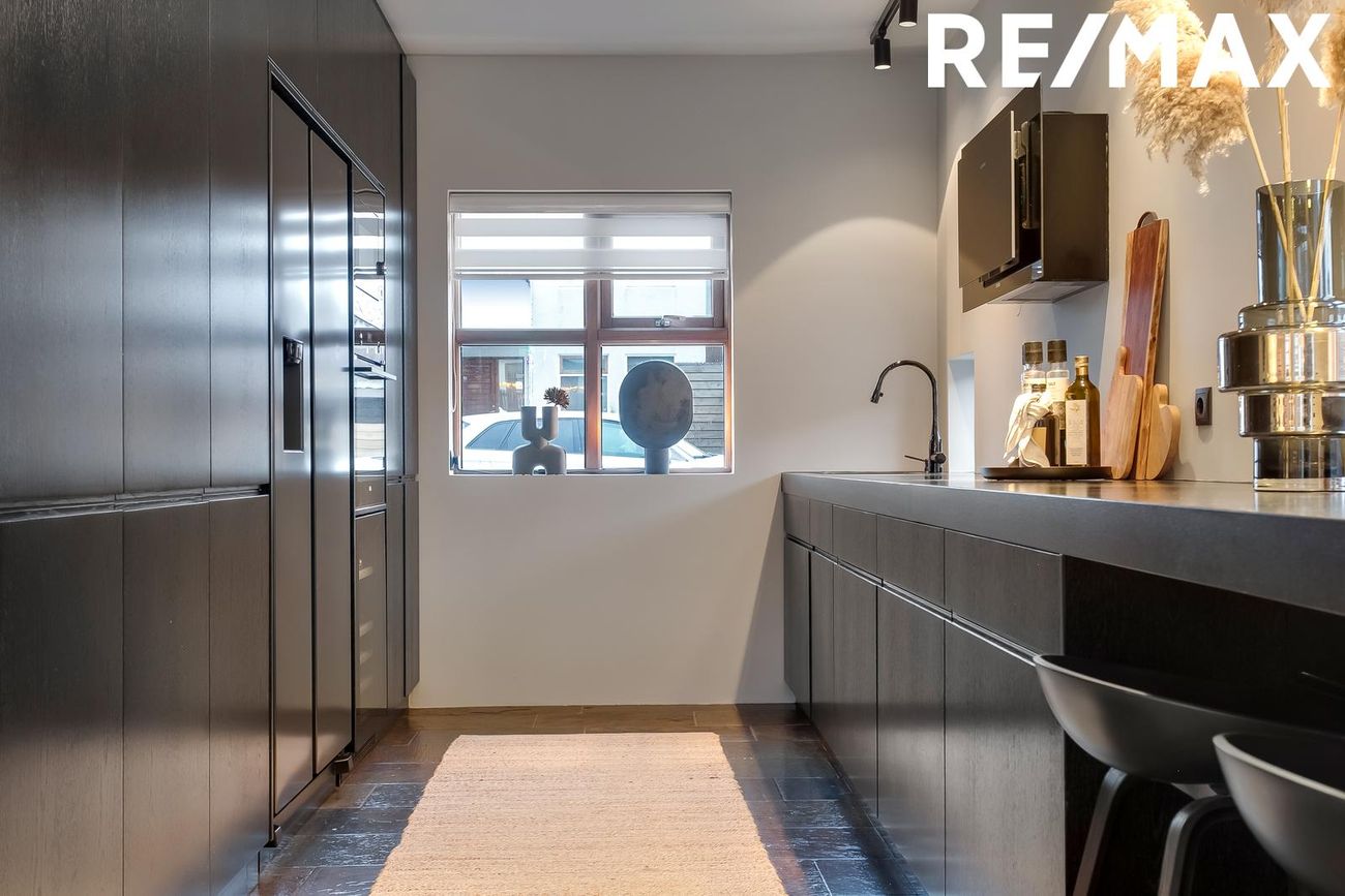 Eldhús: Er með fallegri sérsmíðuðum innréttingum og góðri eldunaraðstöðu. Gott og mikið borð og skápaplássi.