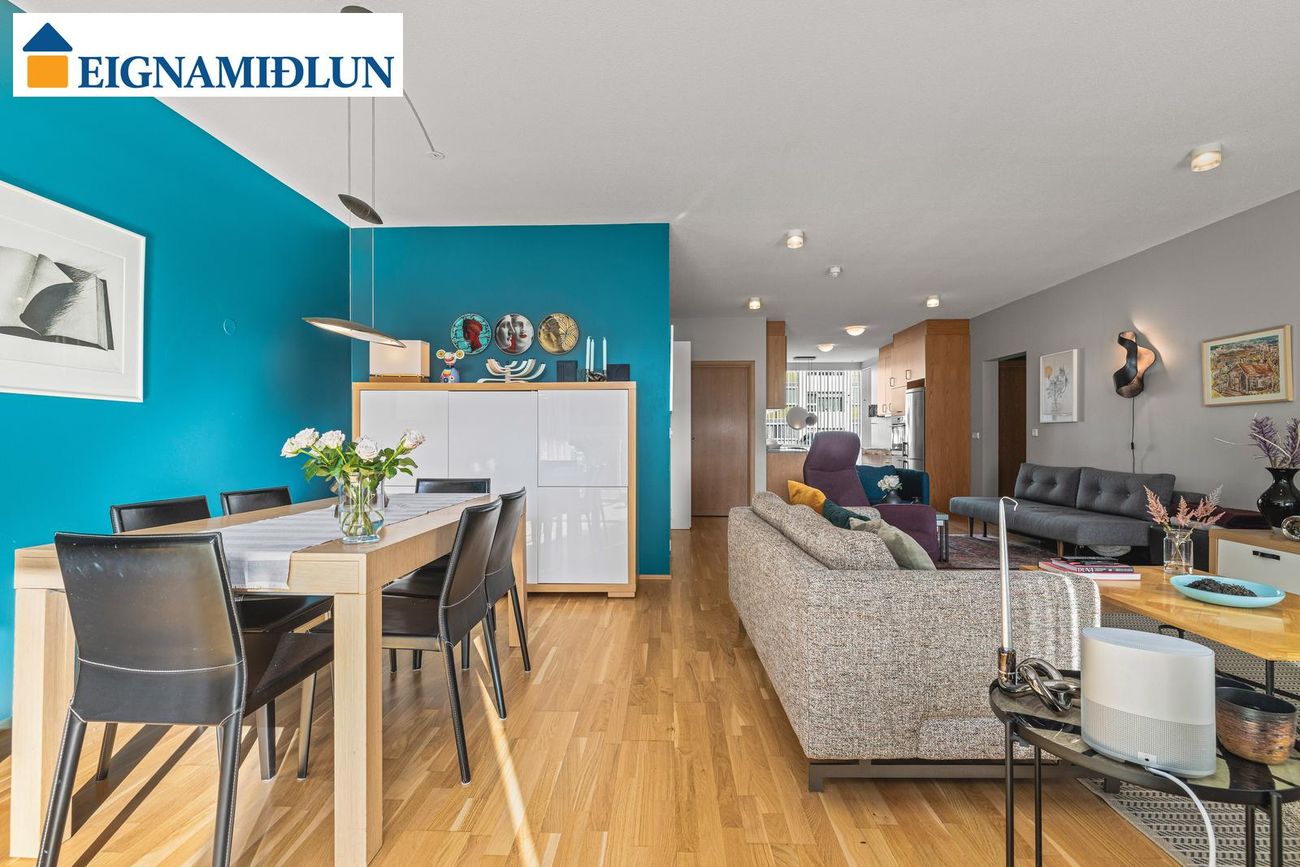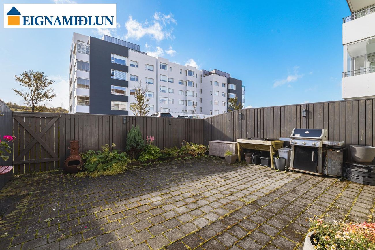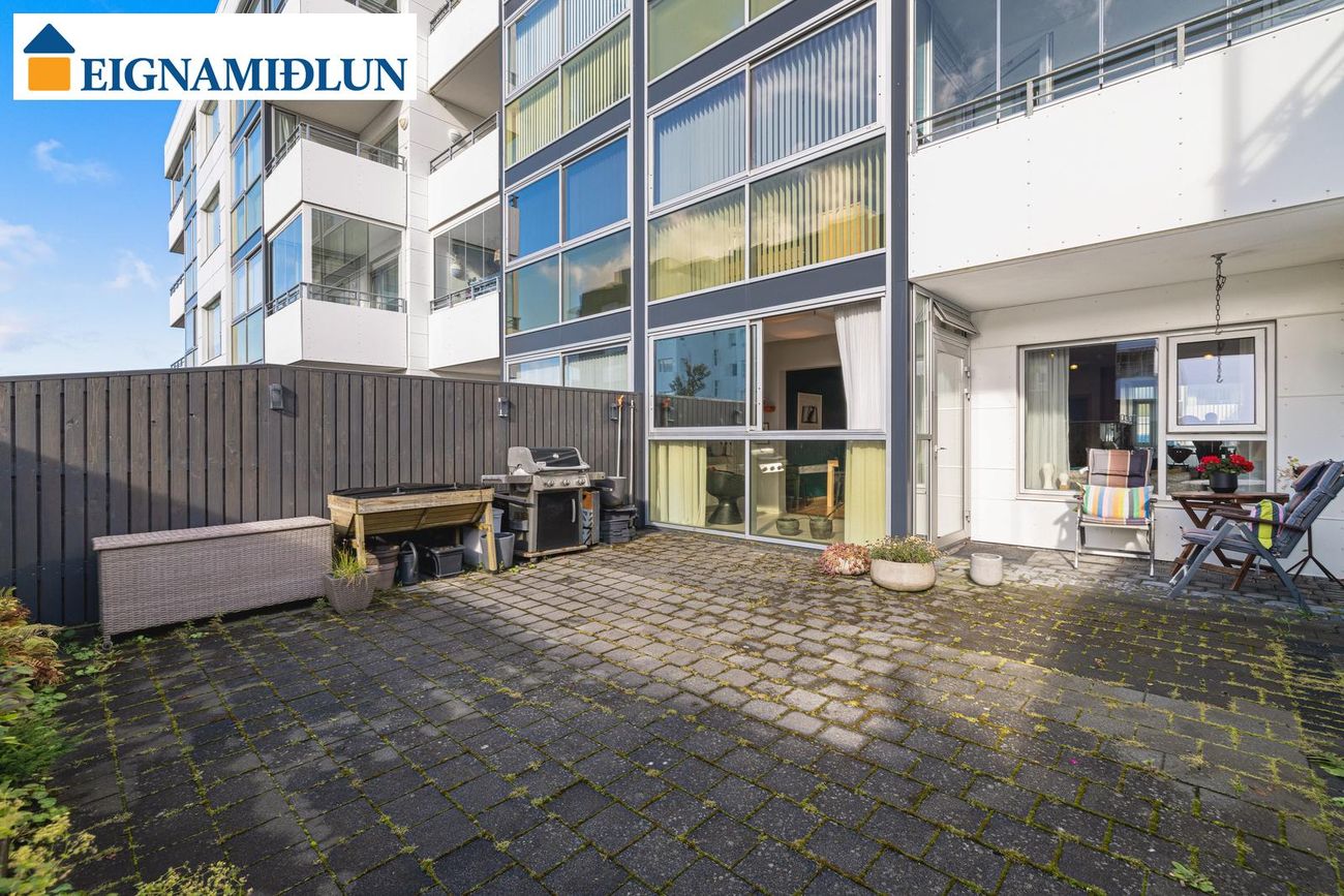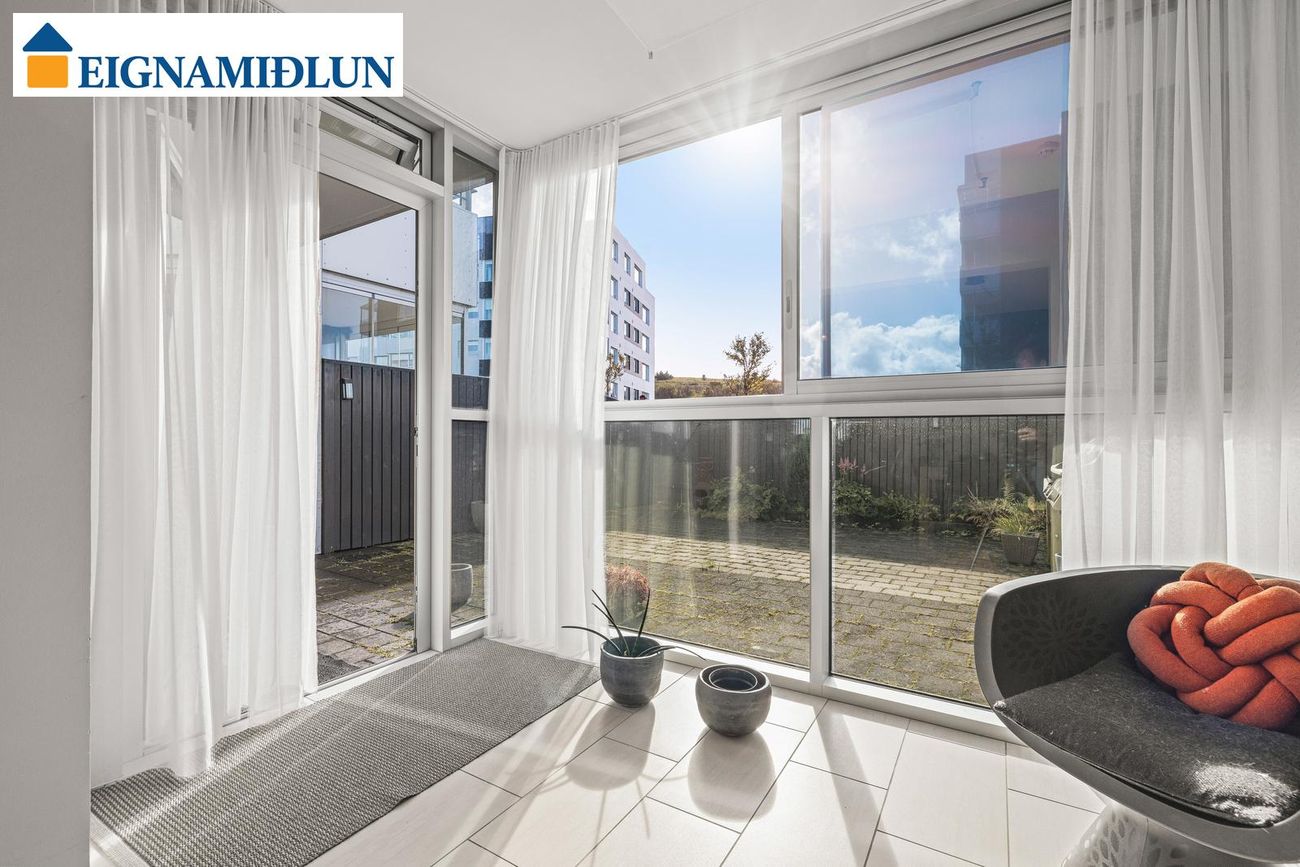 Glæsileg og vönduð 123,9 fm 3ja herbergja íbúð á jarðhæð með sólskála og sér garði í húsi fyrir 55 ára og eldri. Sér merkt bílastæði er í lokaðri bílgeymslu. Íbúðin skiptist í stofu og borðstofu ásamt skála, eldhús, baðherbergi, þvottaherbergi og tvö svefnherbergi. Íbúðin getur verið laus fljótlega. Fasteignamat 2026 er kr. 88.000.000,-***