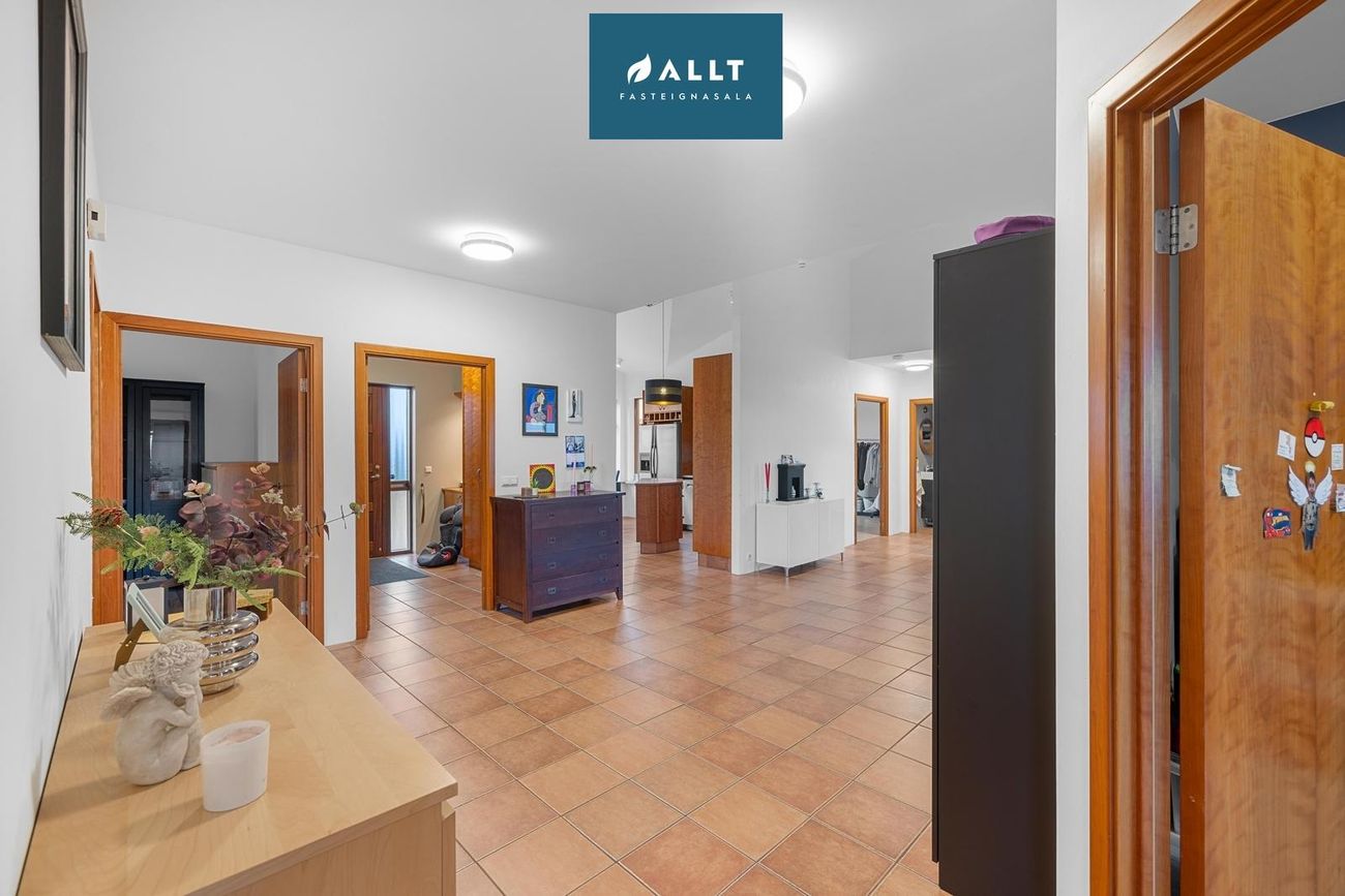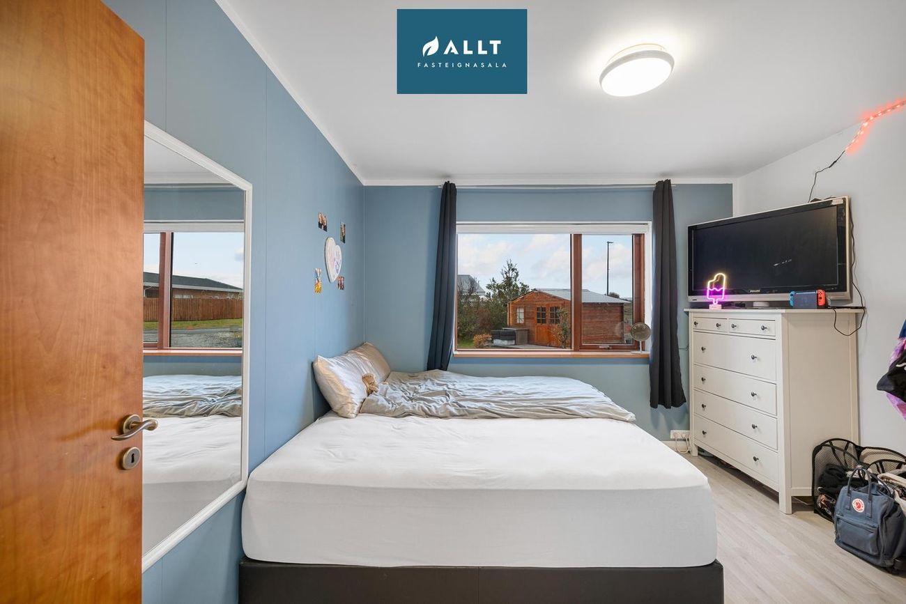 Bílskúr: epoxy-málað gólf, herbergi/geymsla innaf. Aftast í bílskúr er innangengt í sólstofu.