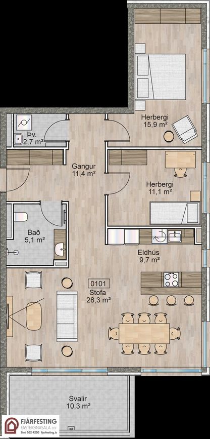 | 30.03.2026 Nánar | 104,6 m² | 994.264 kr. | 104.000.000 kr. |