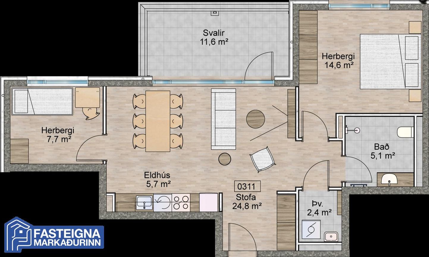 • Þar sem minnst er á gerð tækja í innréttingum í skilalýsingu er átt við tæki af sambærilegri gerð og gæðum. Sama á við um birgja og efnissala. Seljandi áskilur sér rétt til breytinga á byggingartímanum en er þá miðað við sambærilega vöru.