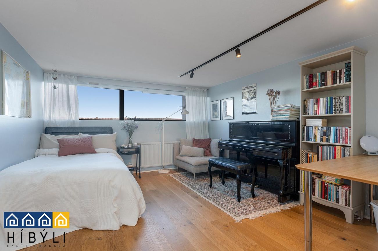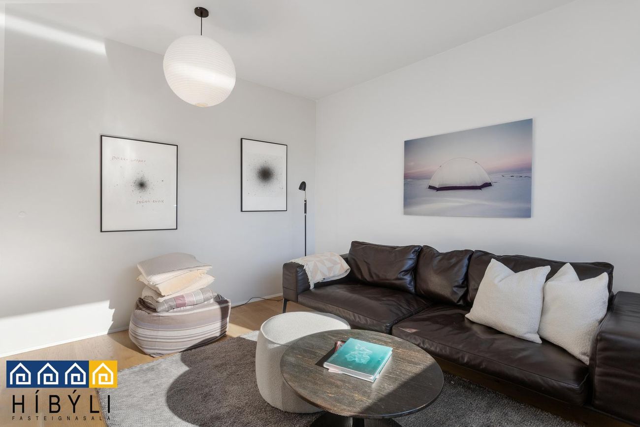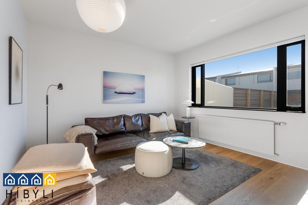 Bjartar samliggjandi stofur, aukin lofthæð, parket á gólfum,