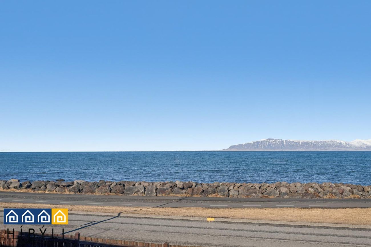 víðáttumikið útsýni er úr stofum og eldhúsi yfir Faxaflóann, allt frá Snæfellsjökli að Úlfarsfelli.