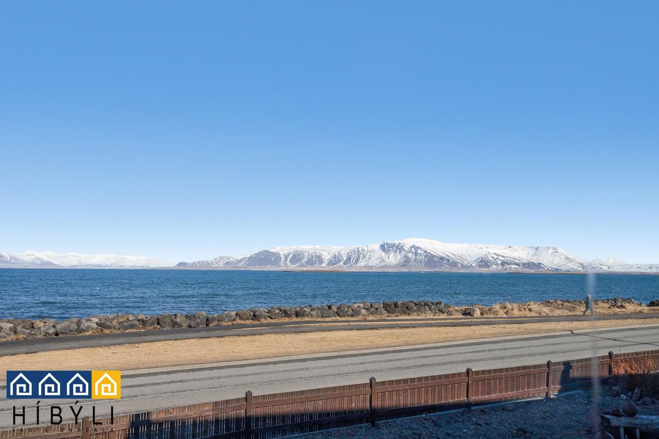 víðáttumikið útsýni er úr stofum og eldhúsi yfir Faxaflóann, allt frá Snæfellsjökli að Úlfarsfelli.