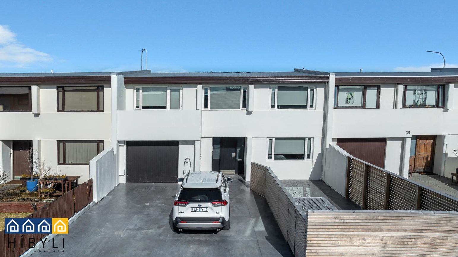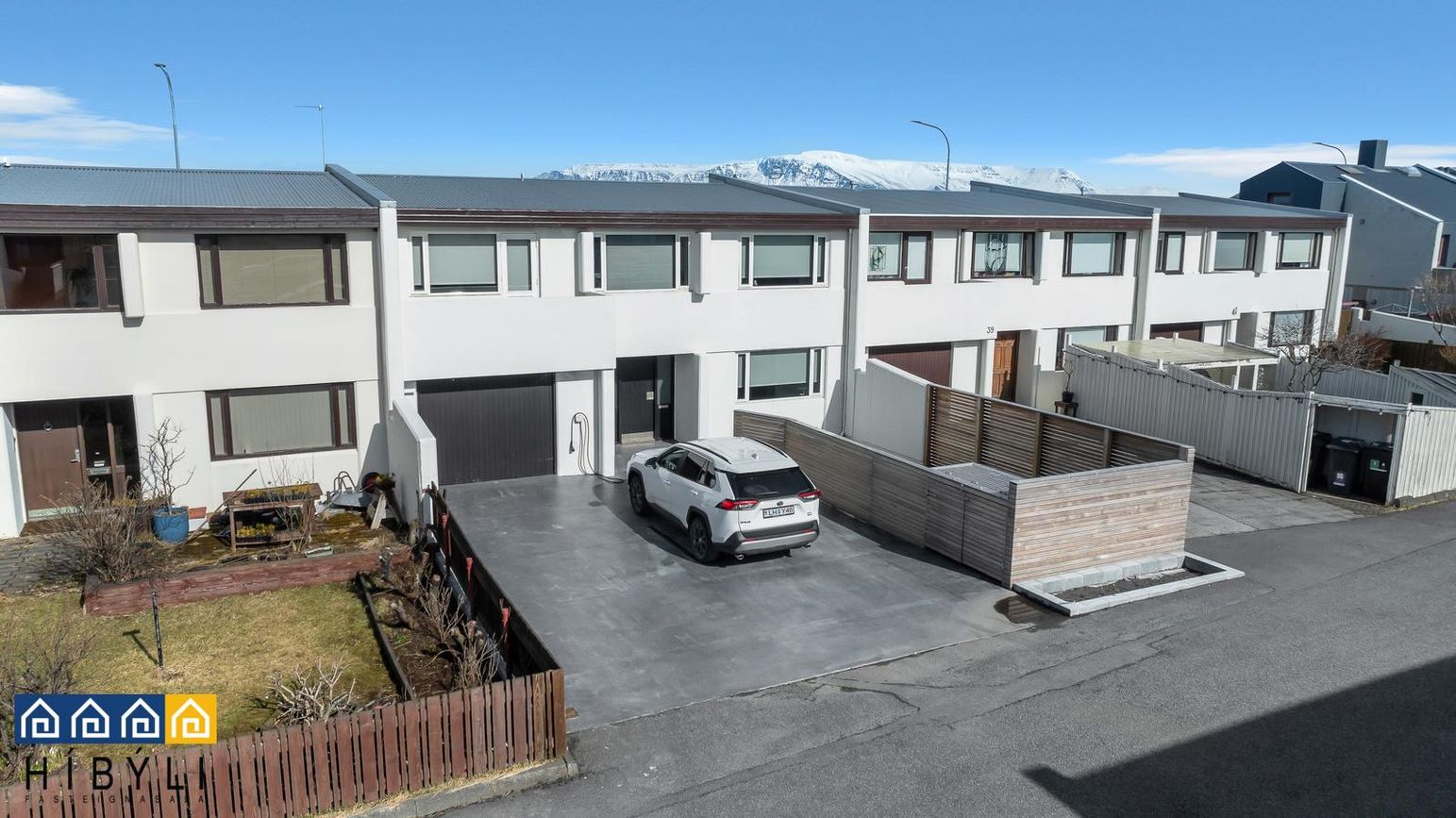 Tvöföld innkeyrsla með nýju (2025) steyptu, munstruðu plani með snjóbræðslu. Rafmagn er tengt á nokkrum stöðum í planið og einnig hefur verið lagt fyrir rafmagni í beð fremst við innkeyrsluna.