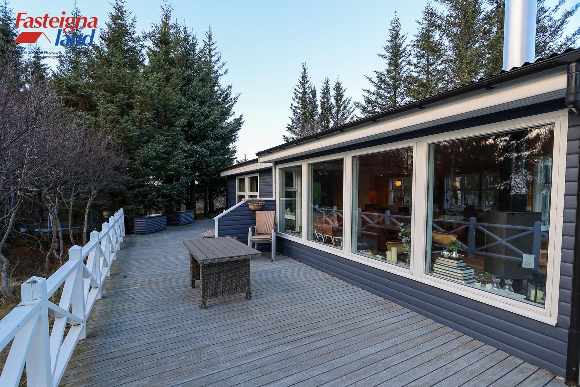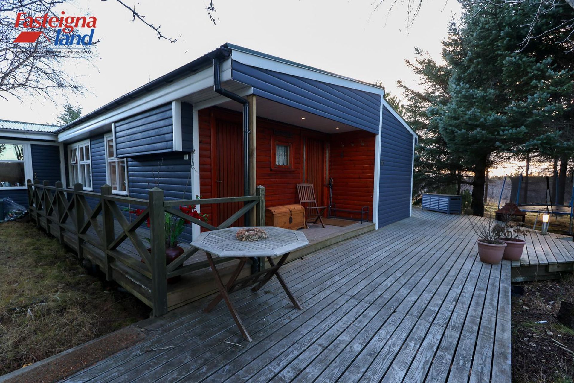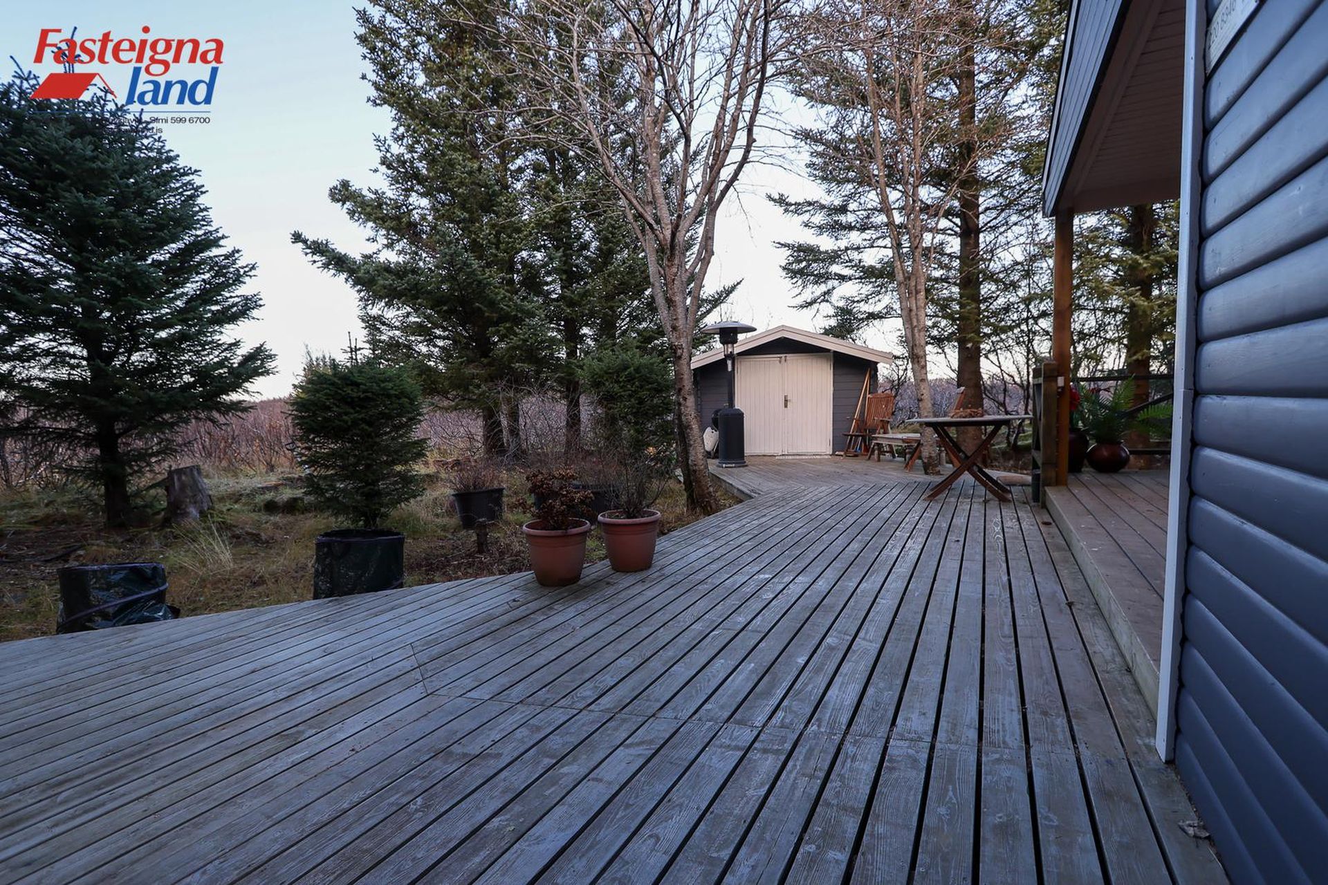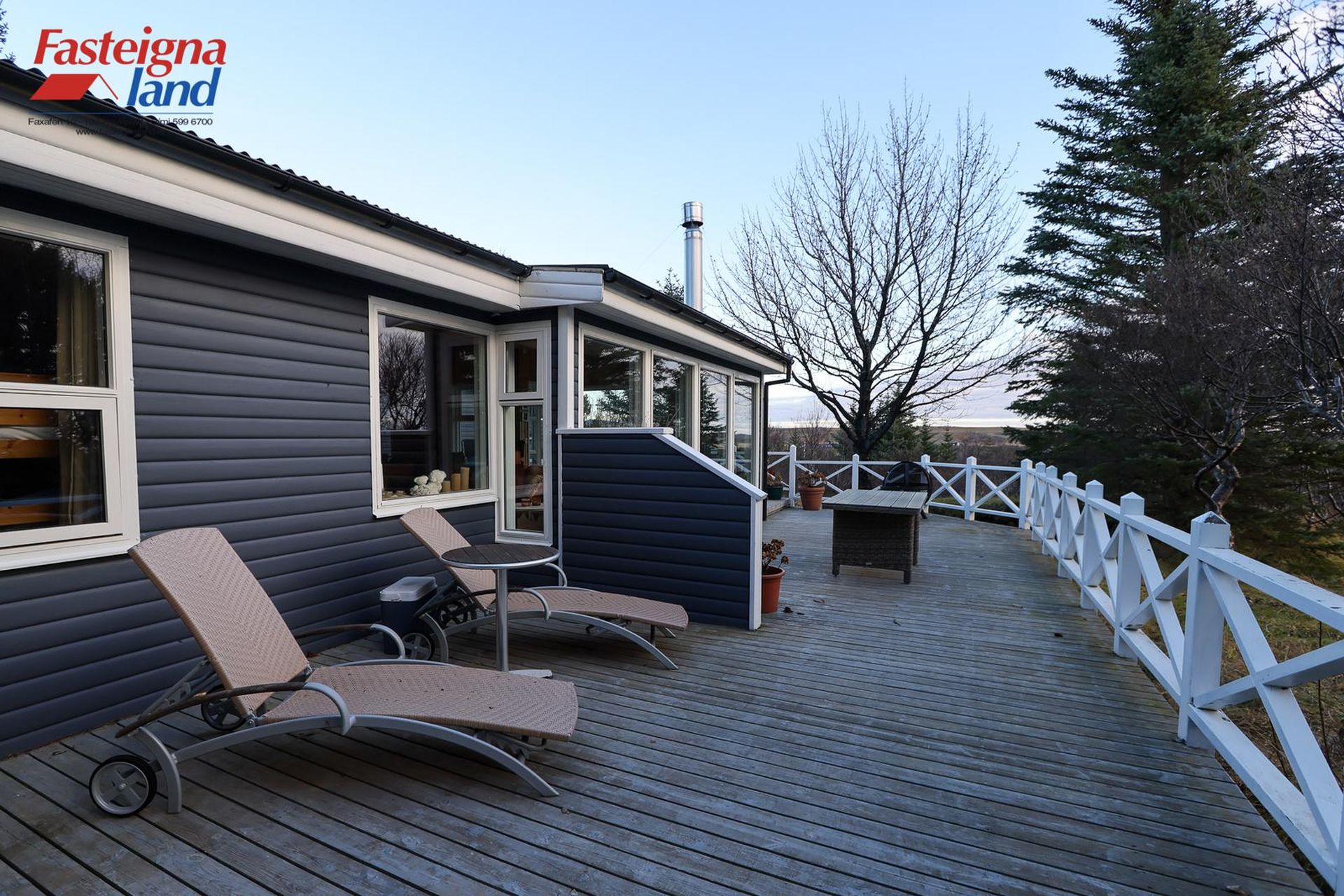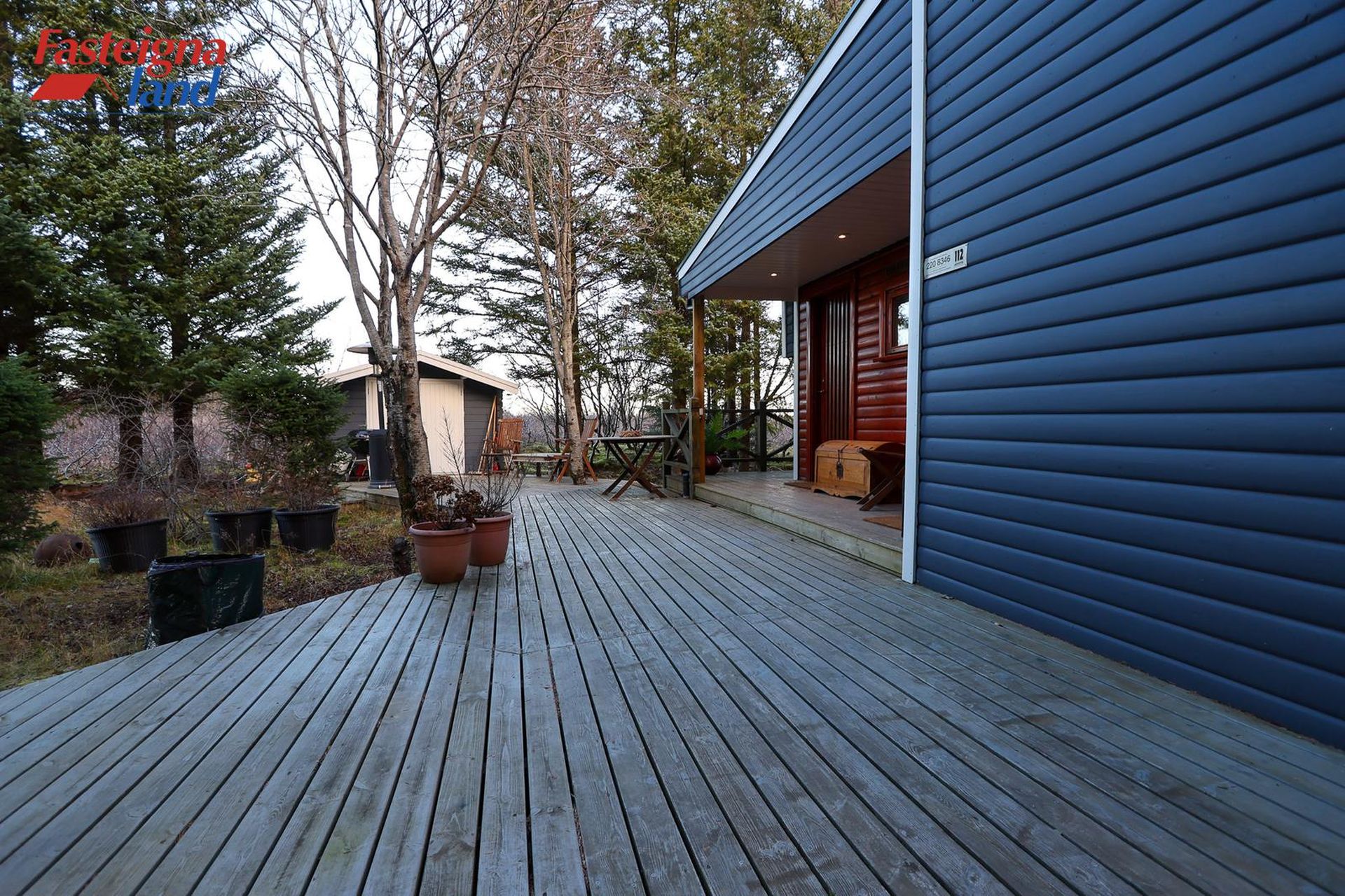 Stór og góð viðarverönd er við húsið með