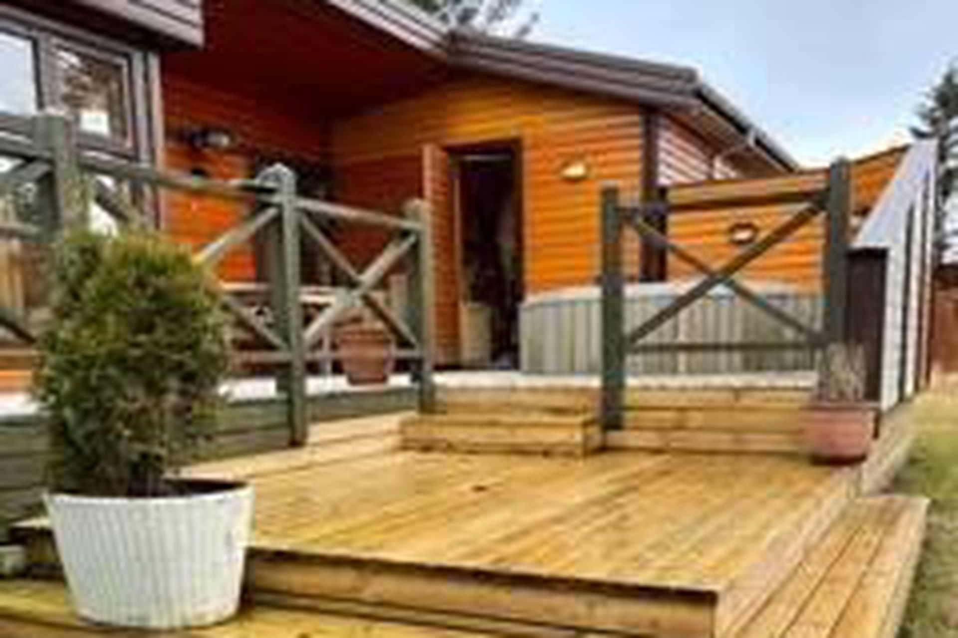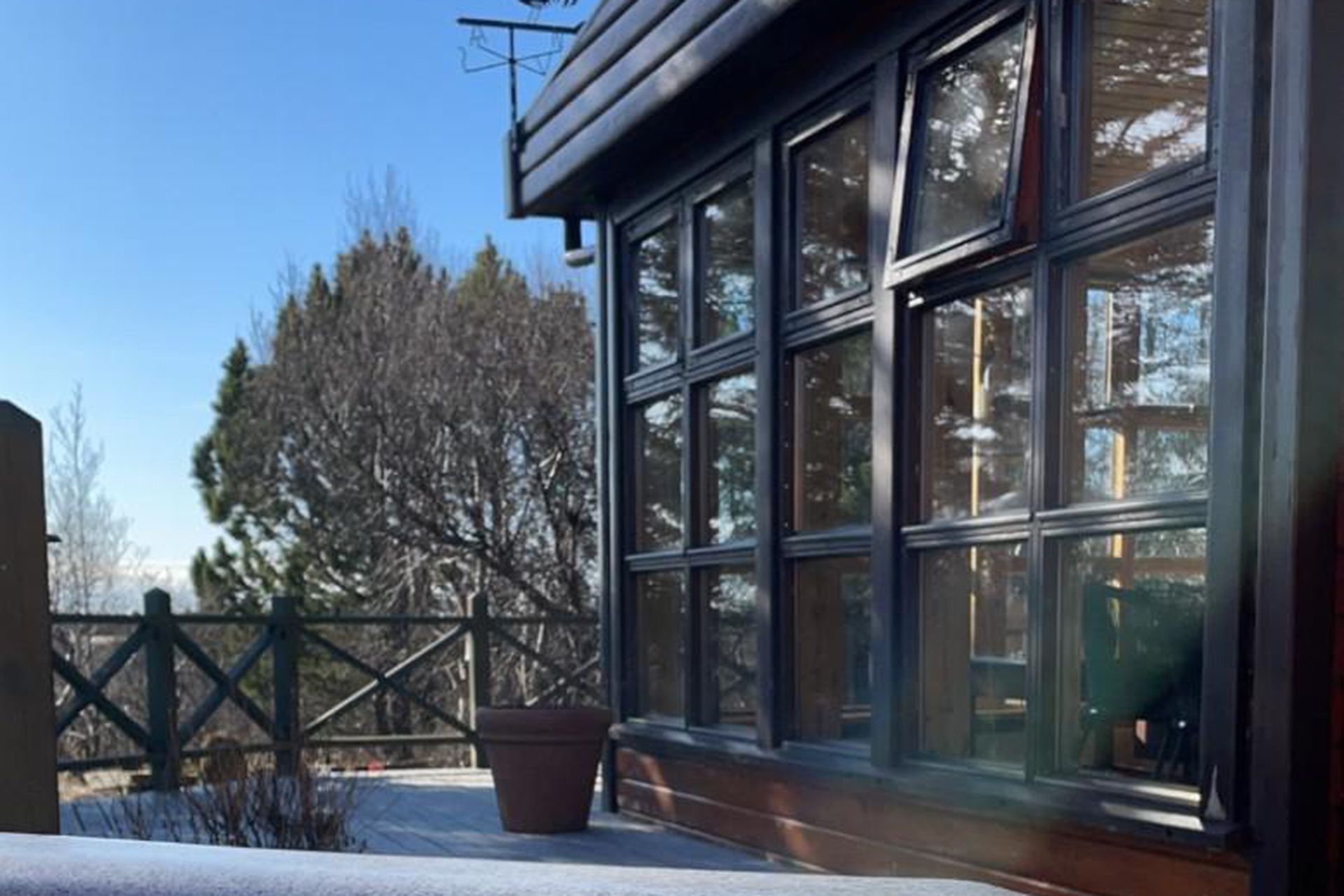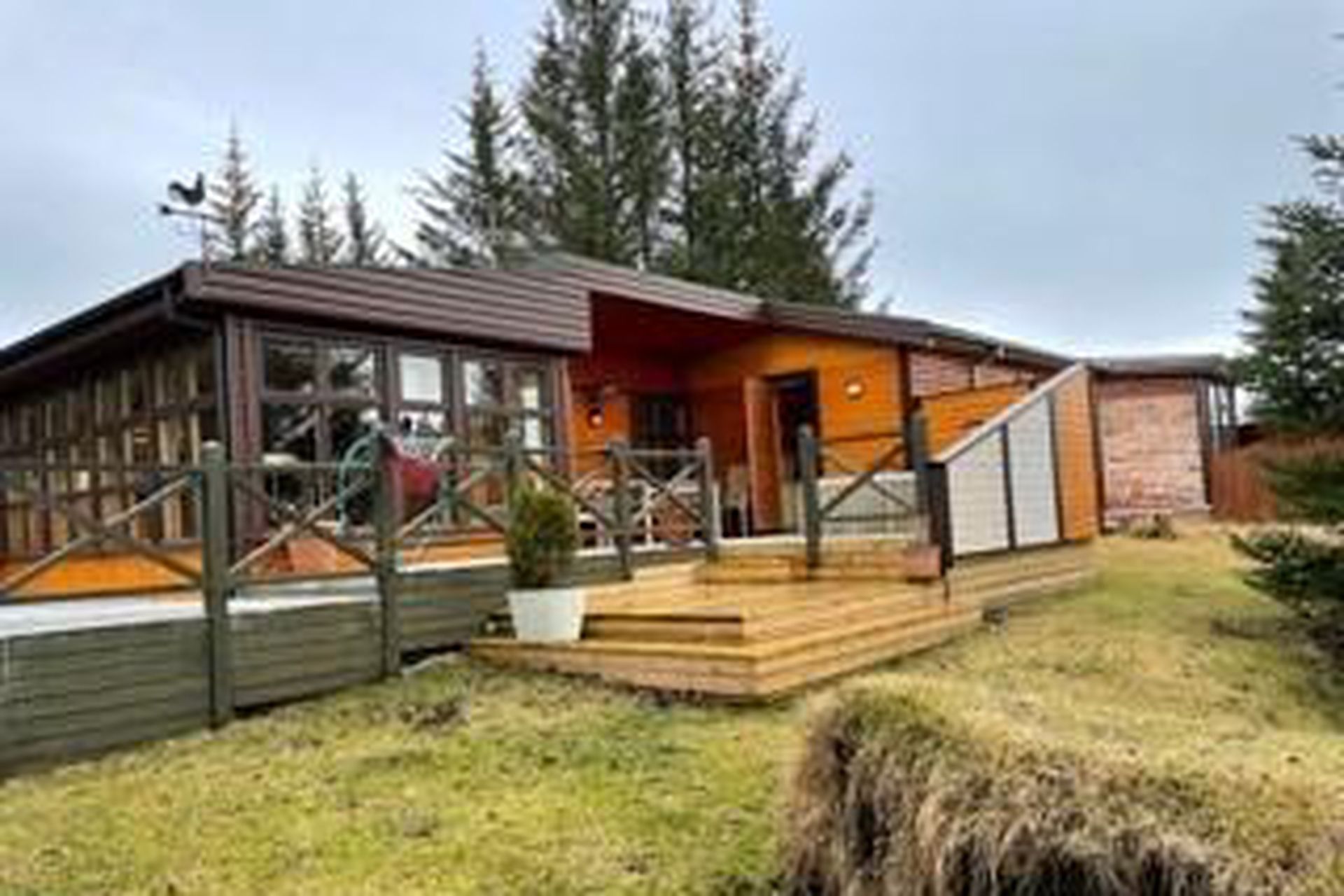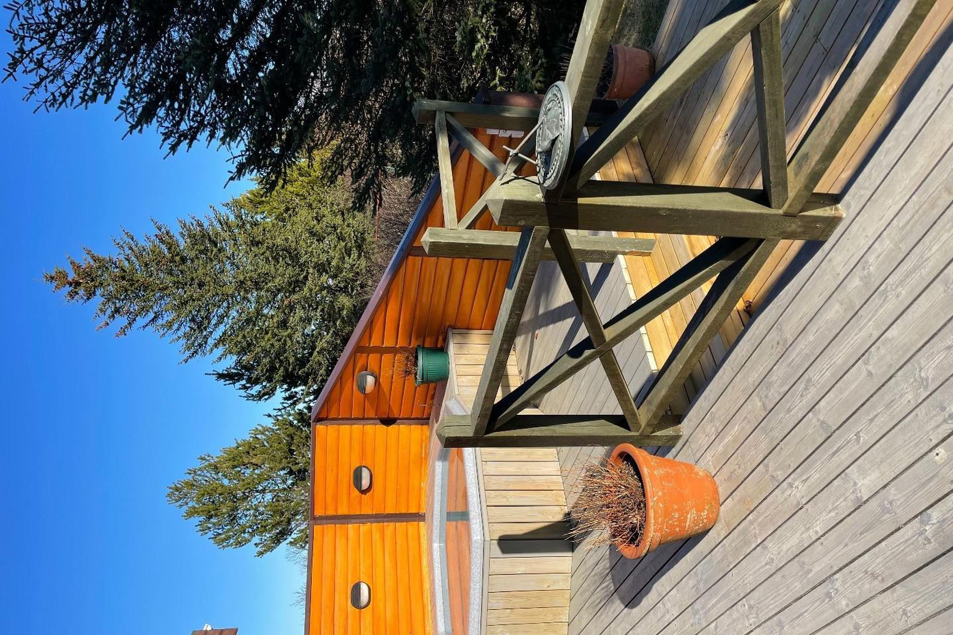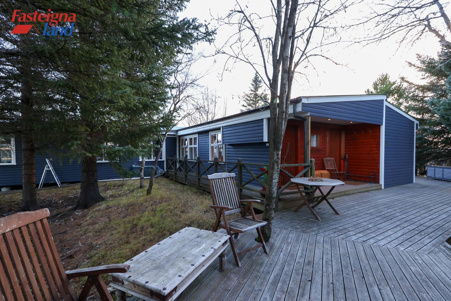 Stór og góð viðarverönd er við húsið með