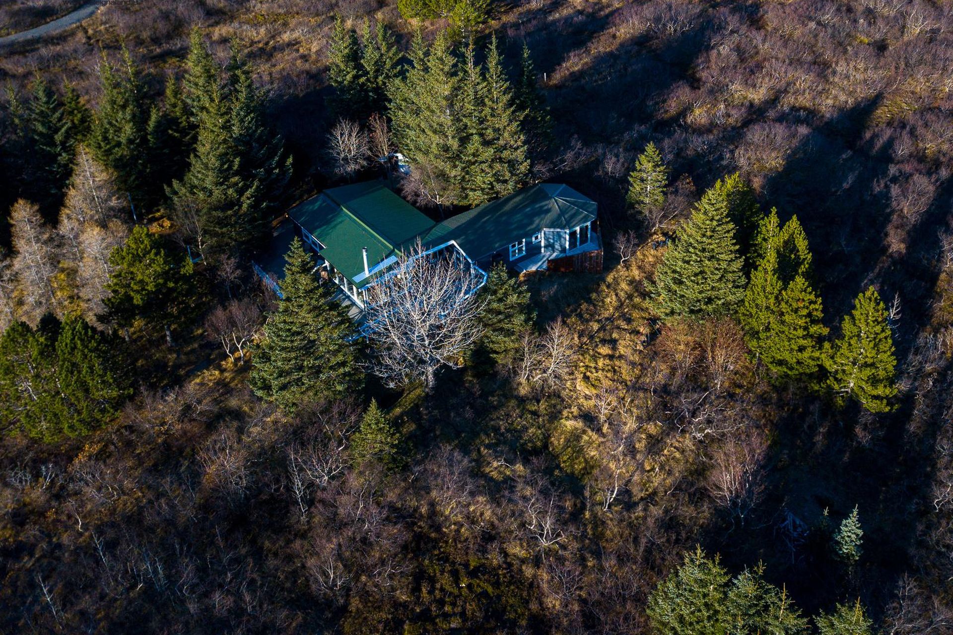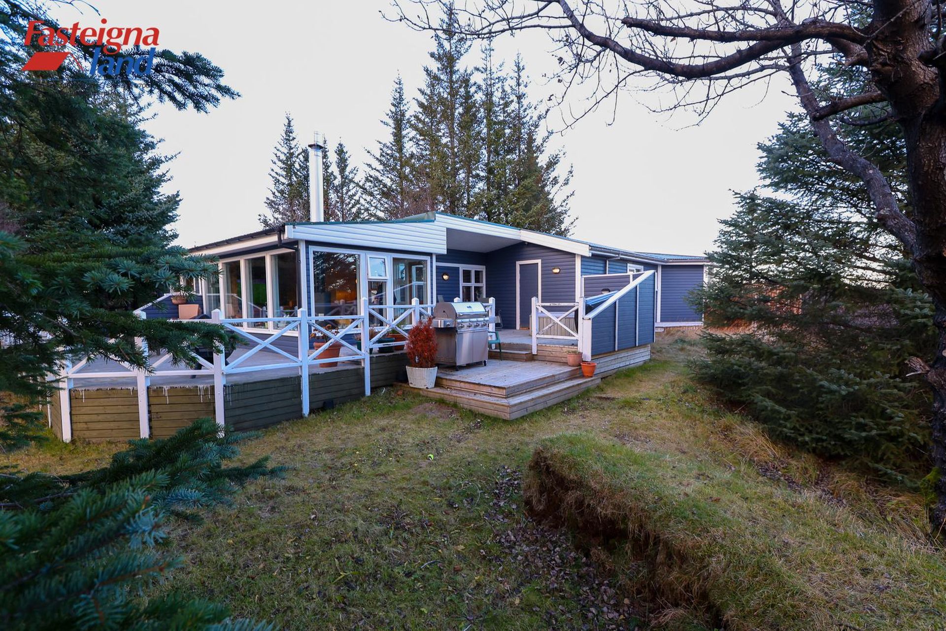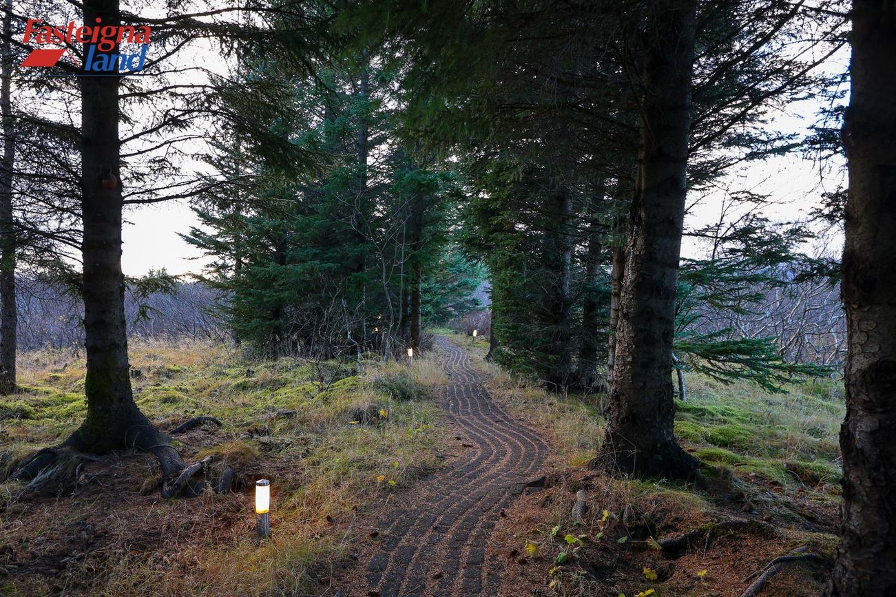 5.500 fm eignarlóð sem veitir mikið skjól með vöxnum greni-, furu- og birkitrjám sum þeirra yfir 50 ára gömul.