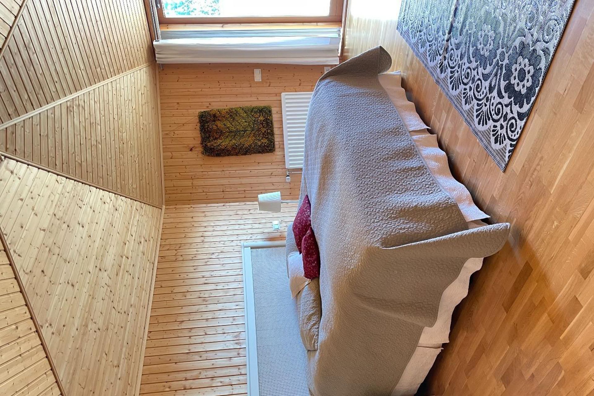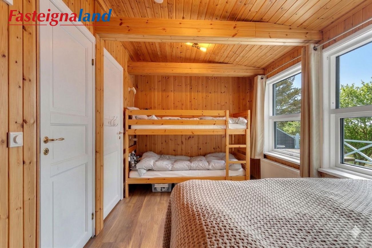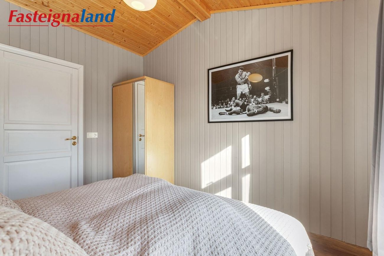 Svefnherbergin eru þrjú, þar af var eitt þeirra áður tvö minni herbergi. Hjónasvítan er með nýlegri rennihurð þaðan sem hægt verður að ganga út á viðarverönd sem vinna er hafin við. Sér baðherbergi þar sem er tengi fyrir þvottavél.