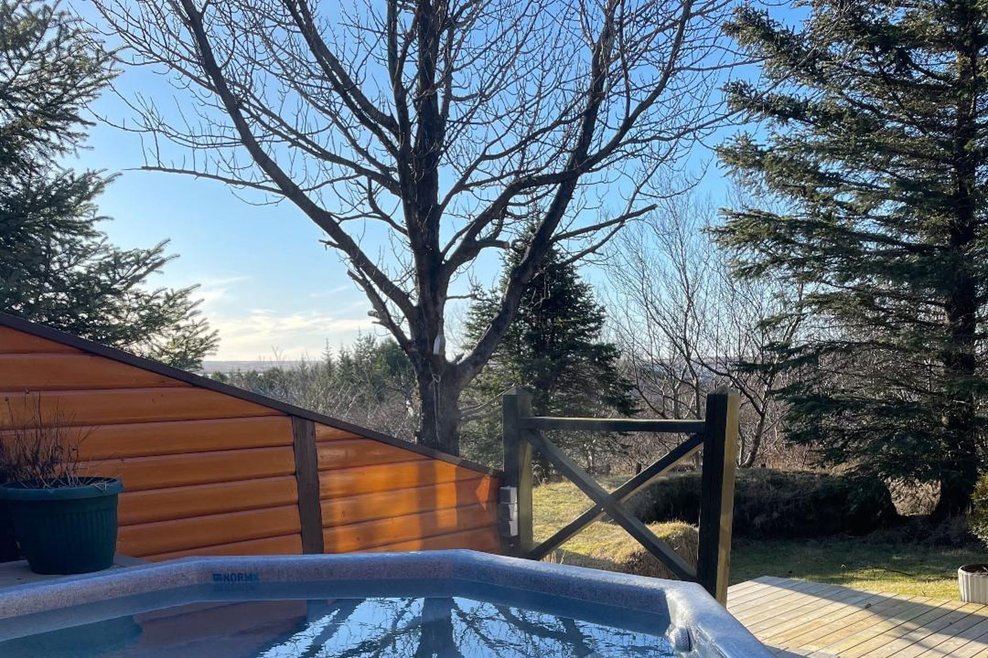 heitum potti sem hægt er að nýta allan ársins hring. Búið er að steypa niður hólka til undirbúnings fyrir stækkun á palli í suðaustur, sem mun nýta kvöldsólina mun betur. Á lóðinni er einnig um