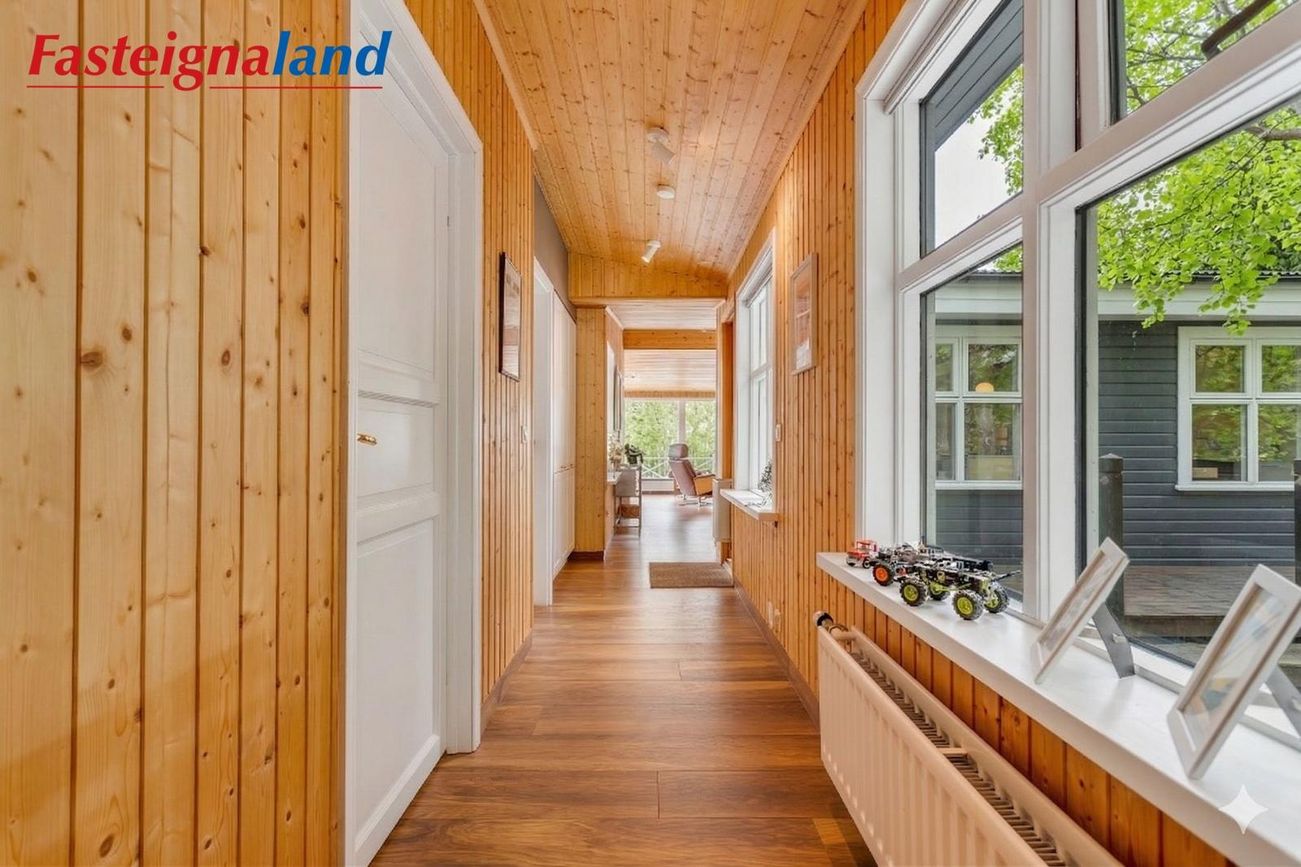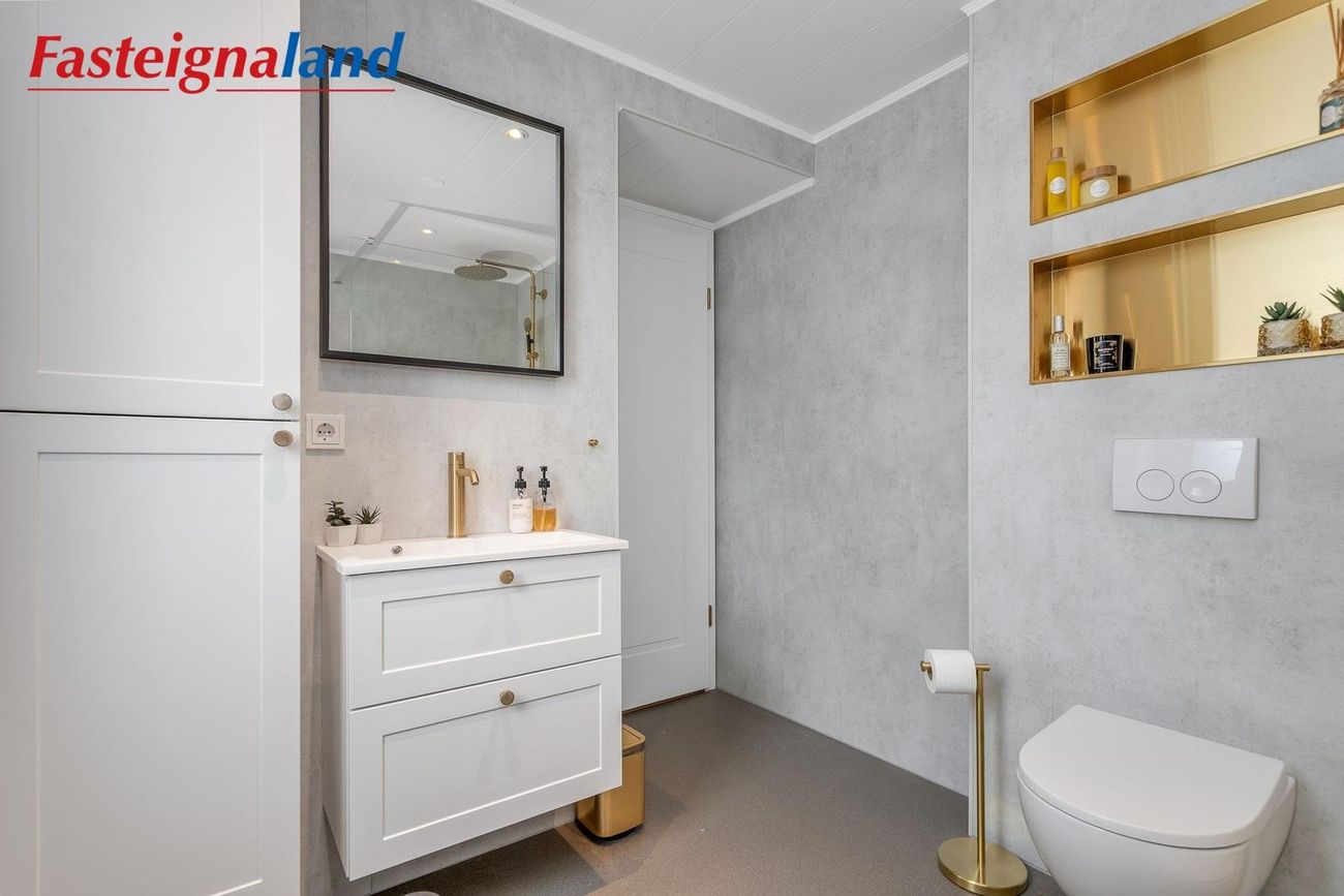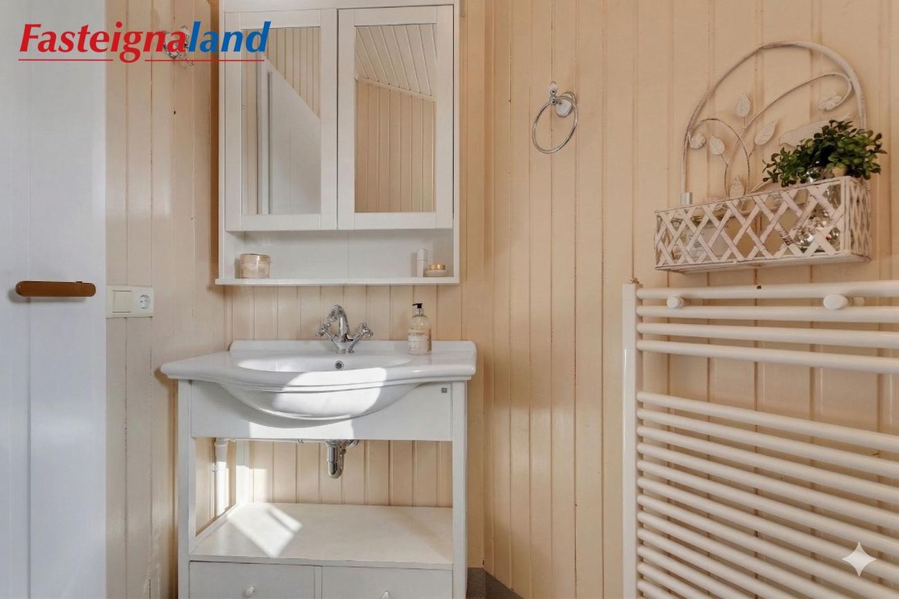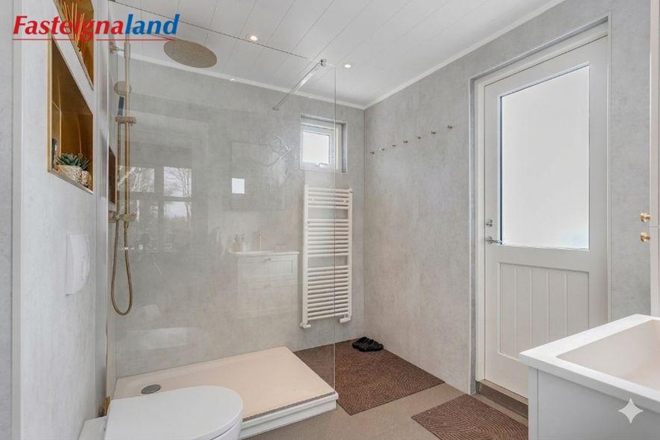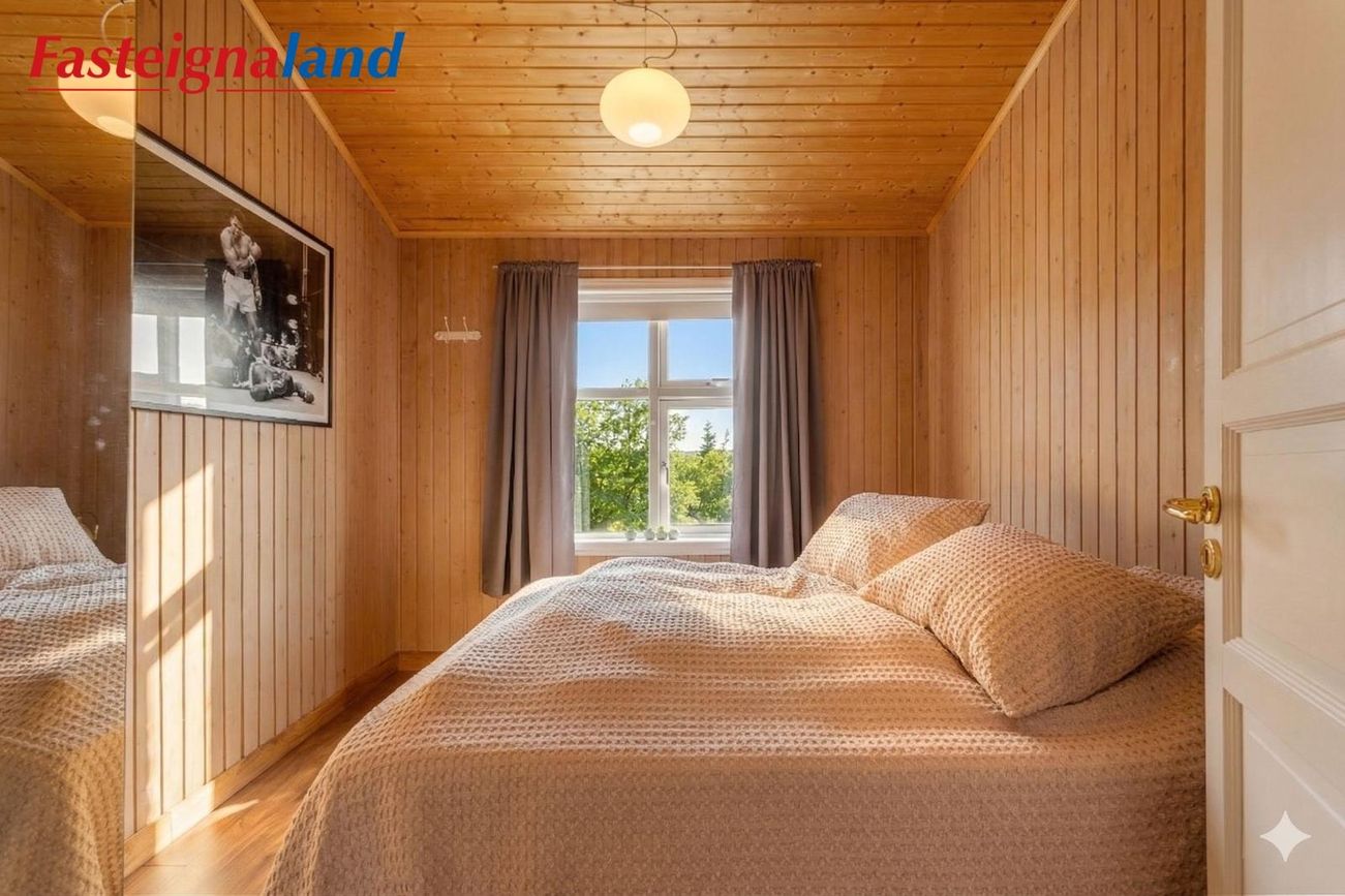 Baðherbergi og þvottaaðstaða: Stóra baðherbergi hússins var endurnýjað að fullu árið 2025 með nýjum tækjum og innréttingum og í dag er innangengt í það og útgengt að heitum potti.