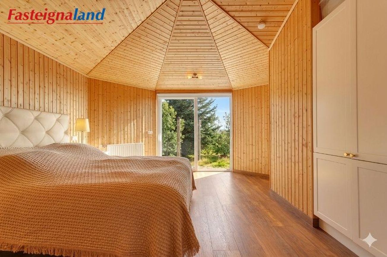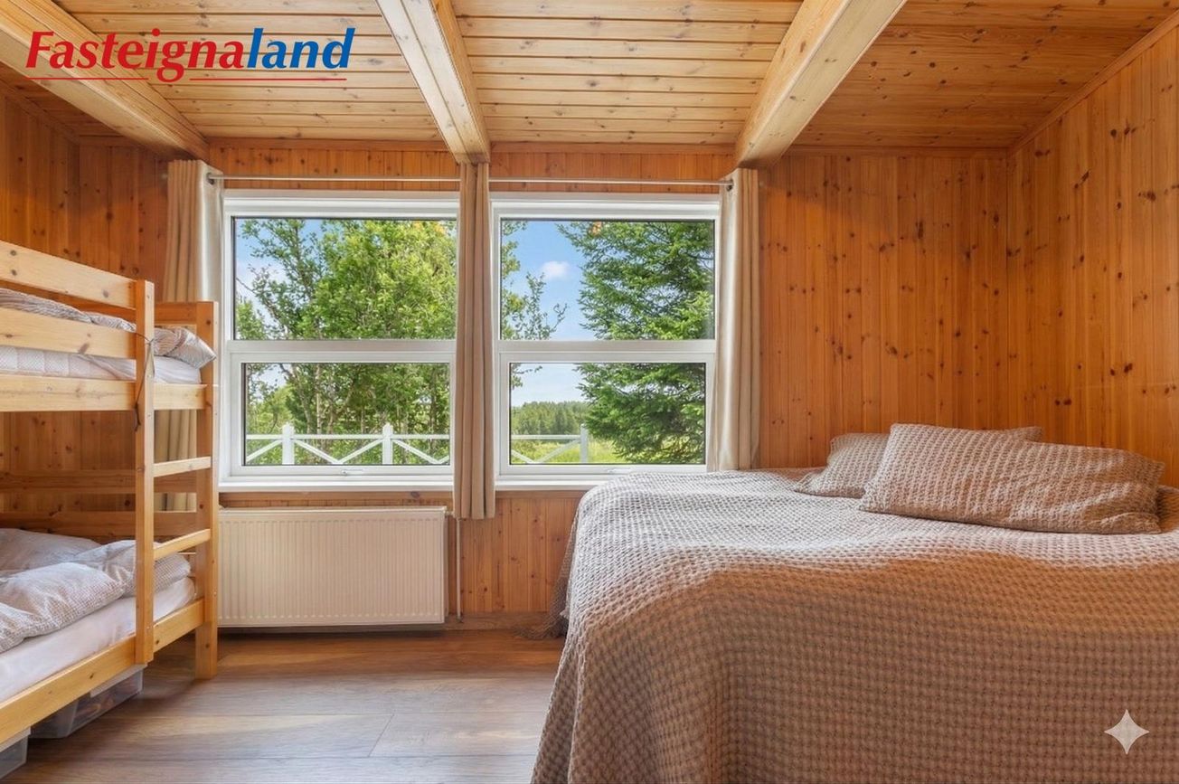 Borgarhólsbraut, Vaðnesi – 5.500 fm eignarland, heitt vatn og miklar endurbætur.Fasteignaland kynnir: Vel viðhaldið og mikið endurnýjað sumarhús staðsett á fallegri, kjarrivaxinni skóglóð á Vaðnesi. Um er að ræða lokað svæði með rafmagnshliði sem tryggir næði og ró. Upphaflegt hús var byggt árið 1972 en stækkað árið 2000. Á síðustu árum hefur húsið fengið mikið og vandað viðhald þar sem nútíma þægindi mæta notalegri sumarhúsastemningu.