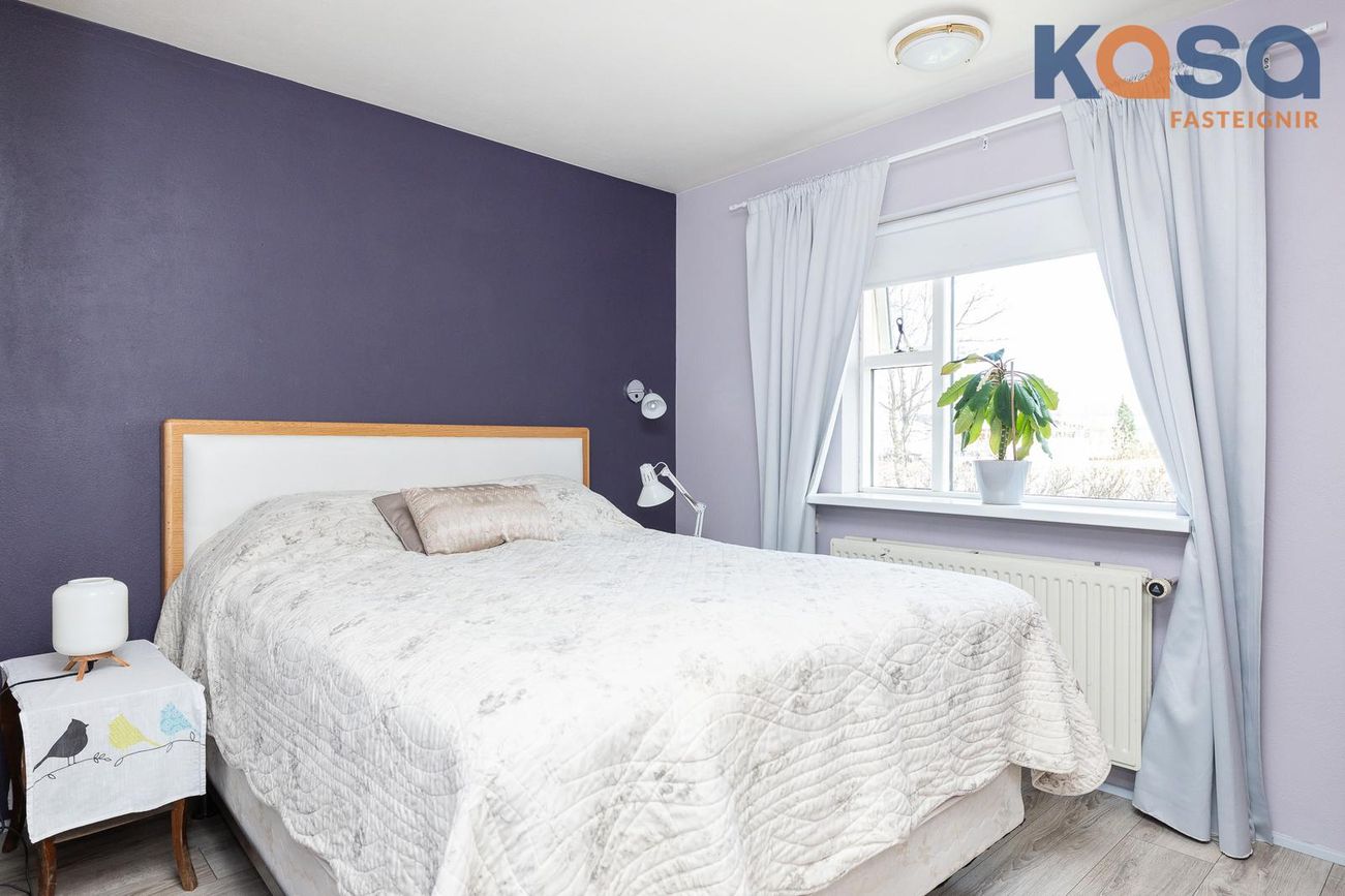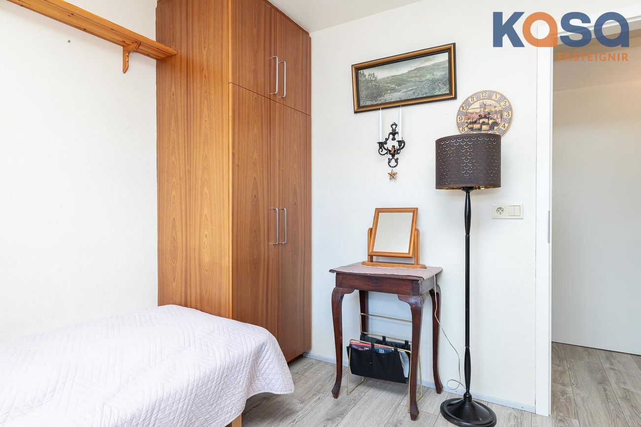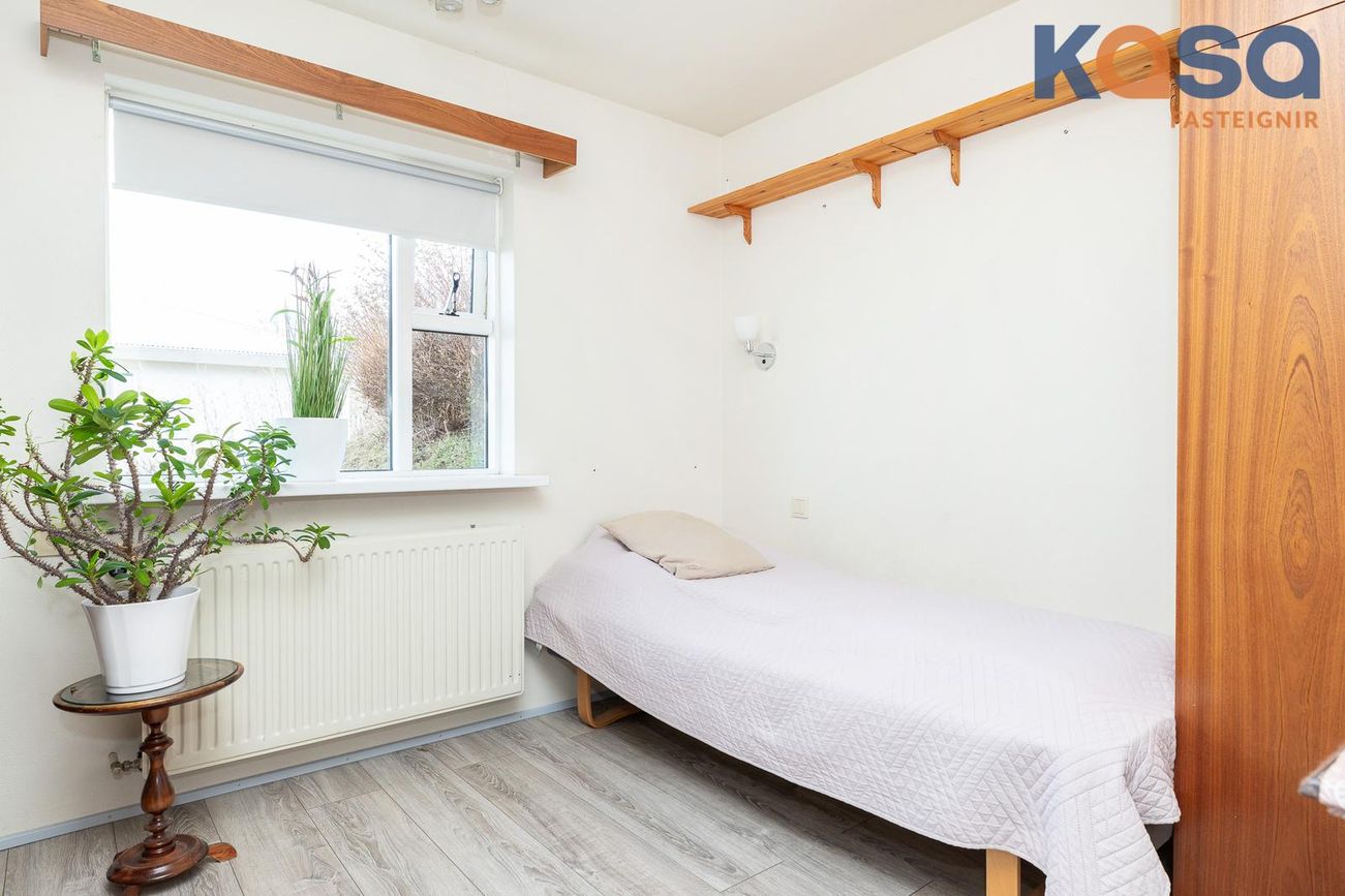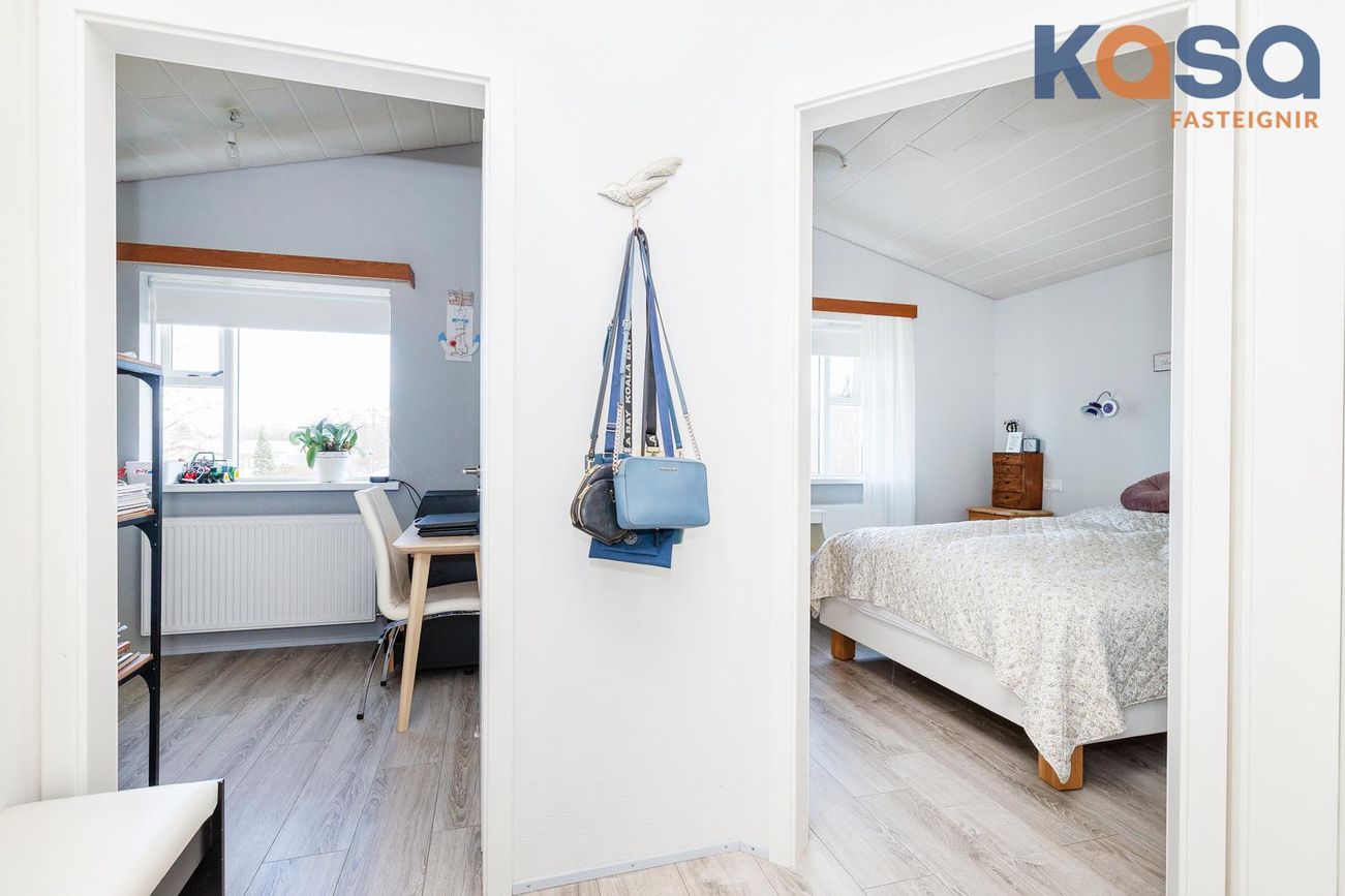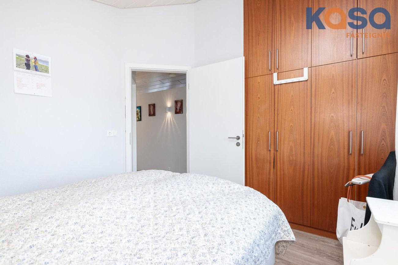 Svefnherbergi: Eru tvö á hæðinni, annað þeirra með rúmgóðum fataskáp. Parket er á báðum herbergjum.