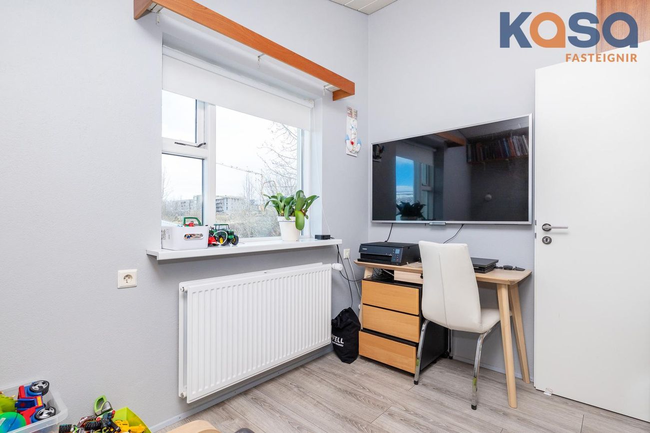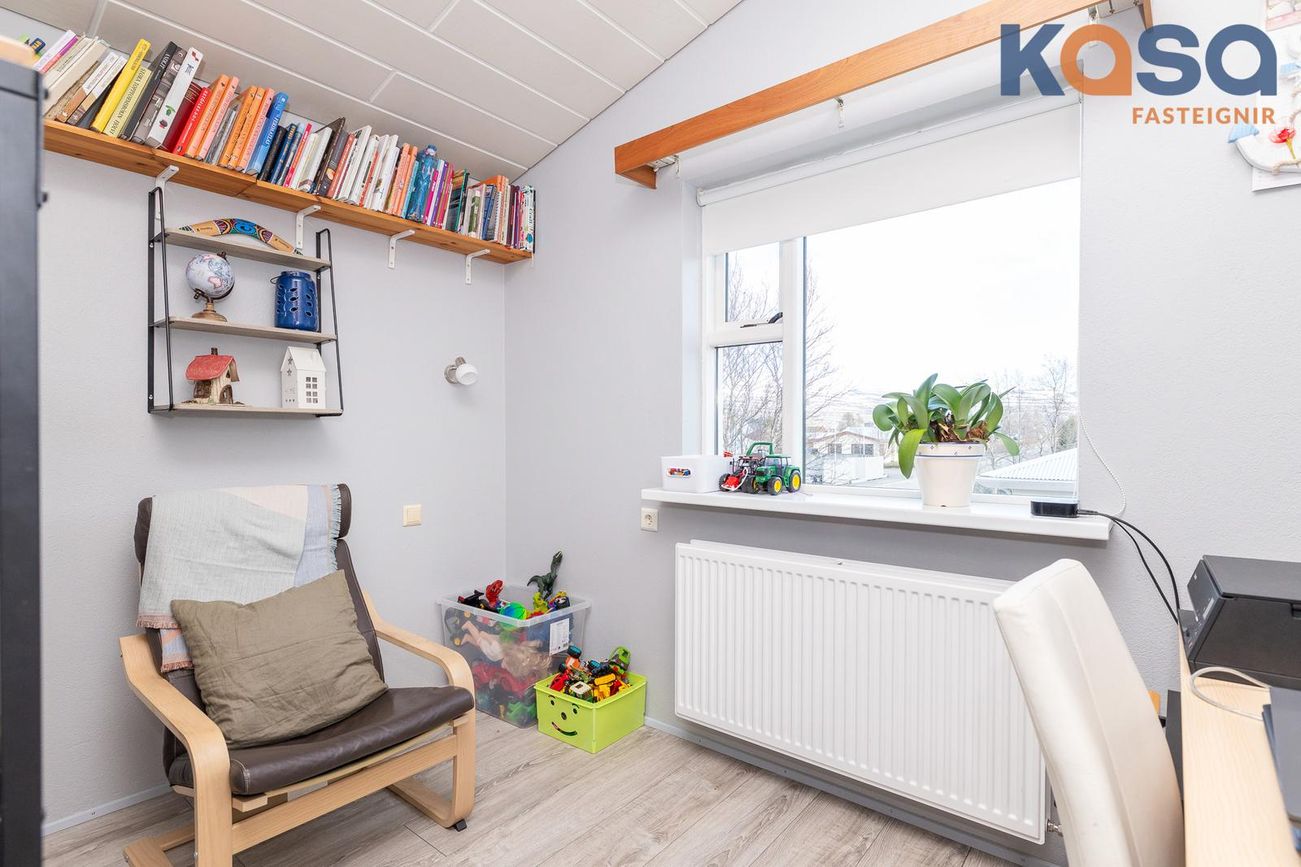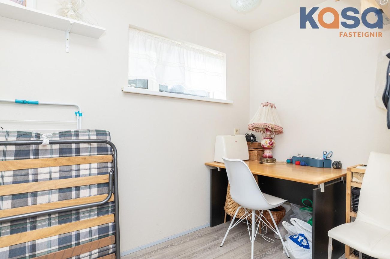 Geymsla: Er með parketi á gólfum og opnanlegum glugga, hægt er að nýta hana sem herbergi/skrifstofu.
