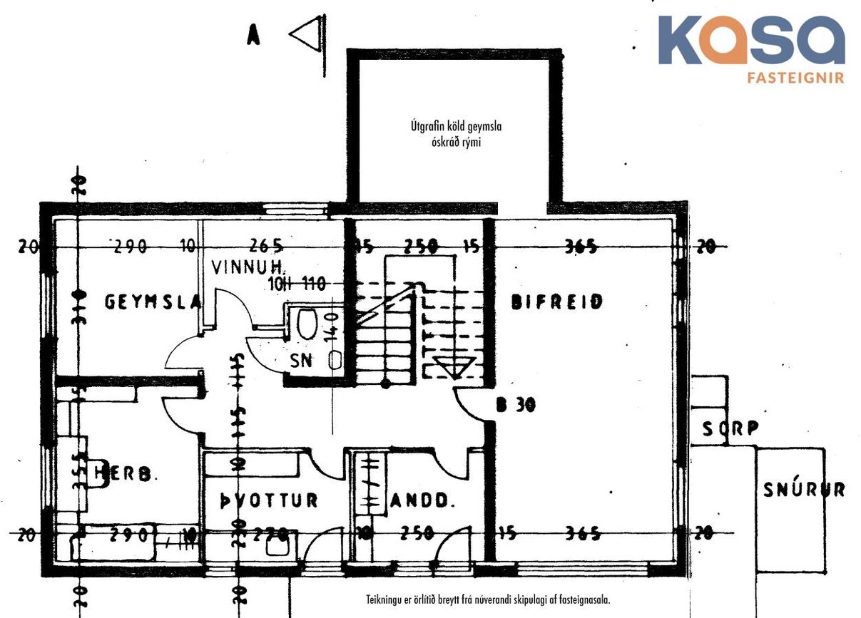 - Á upprunalegri teikningu er gert ráð fyrir sólskála við húsið sem aldrei hefur verið byggður.