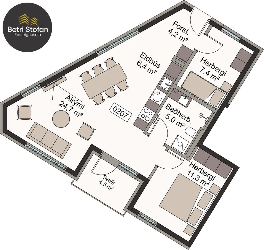 | 80,2 m² | 1.071.072 kr. | 85.900.000 kr. |