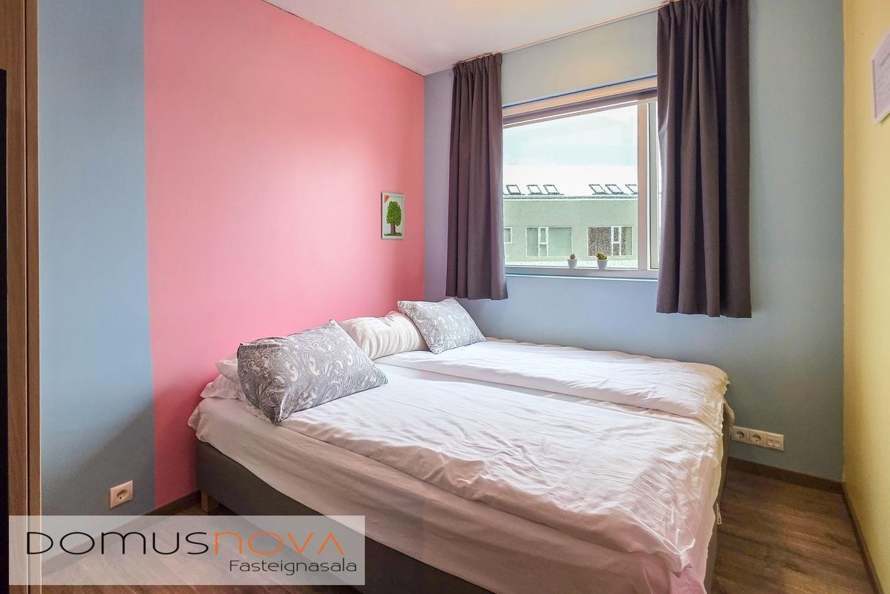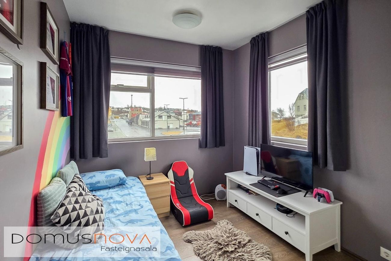 Stofa: Rúmgóð og björt. Útgengt á svalir. Parket á gólfi.