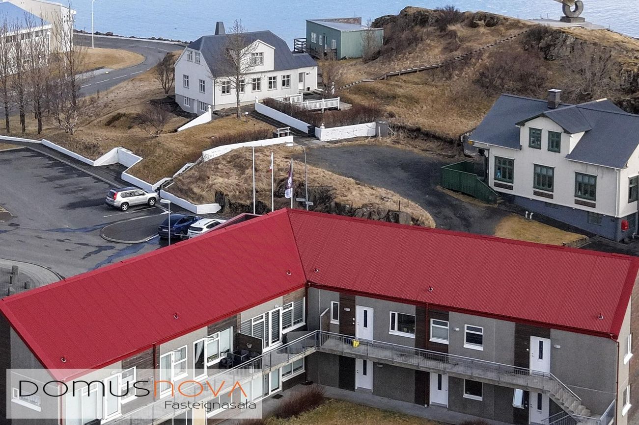 Domusnova Borgarnesi kynnir í sölu Brákarbraut 10, 310 Borgarnes. Vel skipulögð og falleg 123,8 fm. 4ra herbergja horníbúð á annarri hæð með sérinngang, sérgeymslu og 11,1 fm. svölum **BÓKIÐ SKOÐUN hjá Sjöfn, lgf. í síma 691-4591 eða á netfangið sjofn@domusnova.is**Brákarbraut 10 er fjölbýli á tveimur hæðum með 9 íbúðum, hver með sérinngang. Á 1. hæð eru 5 íbúðir ásamt hjóla- og vagngeymslu og sérgeymslum, á 2. hæð eru 4 íbúðir. Húsið er byggt árið 2007 úr forsteyptum einingum, eignin var fullgerð að utan 2015 og fokheld að innan, flutt var inn sama ár. Íbúð 202 er horníbúð á 2. hæð, 123,8 fm., þar af 7,5 fm. sérgeymsla. Eignin skiptist í anddyri, stofu, eldhús, borðstofu, þrjú rúmgóð svefnherbergi, baðherbergi og þvottahús. Gengið út á 11,1 fm. svalir út frá stofu. Gólfhiti. Eignin er rúmgóð og björt.