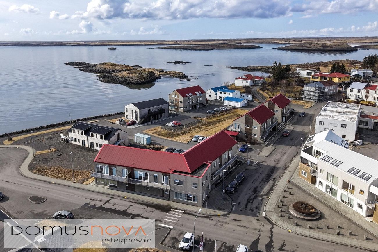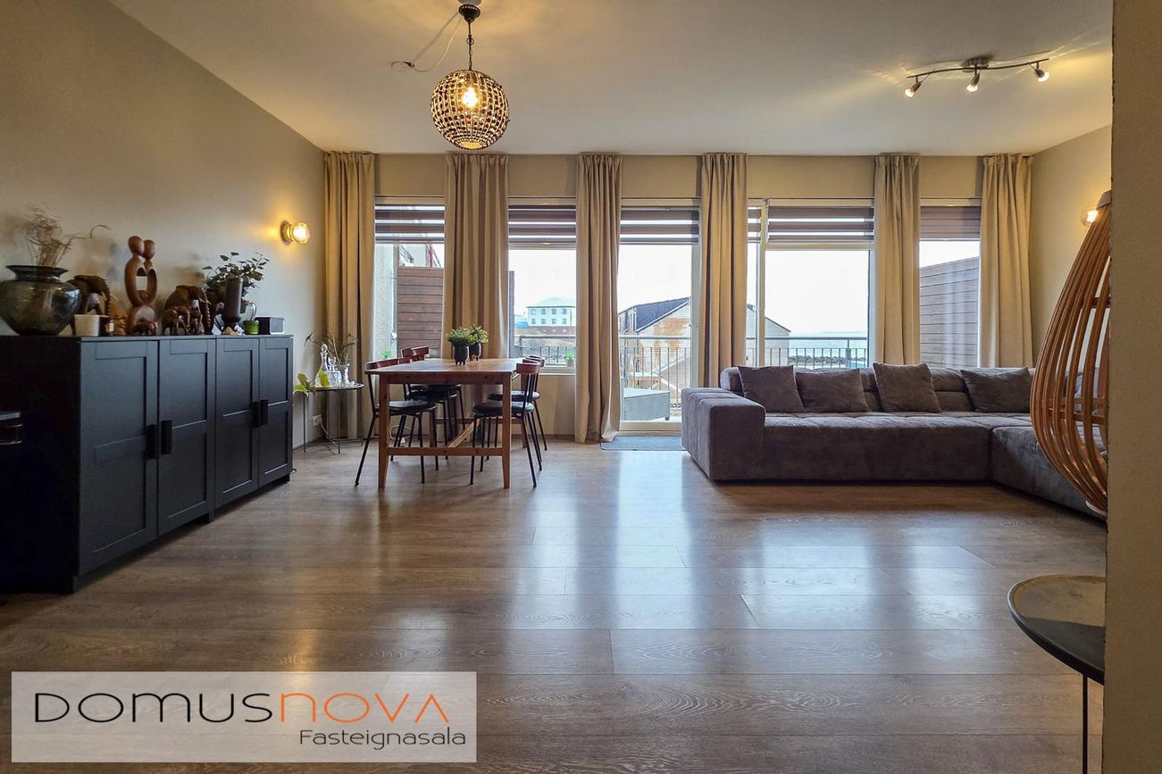 Domusnova Borgarnesi kynnir í sölu Brákarbraut 10, 310 Borgarnes. Vel skipulögð og falleg 123,8 fm. 4ra herbergja horníbúð á annarri hæð með sérinngang, sérgeymslu og 11,1 fm. svölum **BÓKIÐ SKOÐUN hjá Sjöfn, lgf. í síma 691-4591 eða á netfangið sjofn@domusnova.is**Brákarbraut 10 er fjölbýli á tveimur hæðum með 9 íbúðum, hver með sérinngang. Á 1. hæð eru 5 íbúðir ásamt hjóla- og vagngeymslu og sérgeymslum, á 2. hæð eru 4 íbúðir. Húsið er byggt árið 2007 úr forsteyptum einingum, eignin var fullgerð að utan 2015 og fokheld að innan, flutt var inn sama ár. Íbúð 202 er horníbúð á 2. hæð, 123,8 fm., þar af 7,5 fm. sérgeymsla. Eignin skiptist í anddyri, stofu, eldhús, borðstofu, þrjú rúmgóð svefnherbergi, baðherbergi og þvottahús. Gengið út á 11,1 fm. svalir út frá stofu. Gólfhiti. Eignin er rúmgóð og björt.