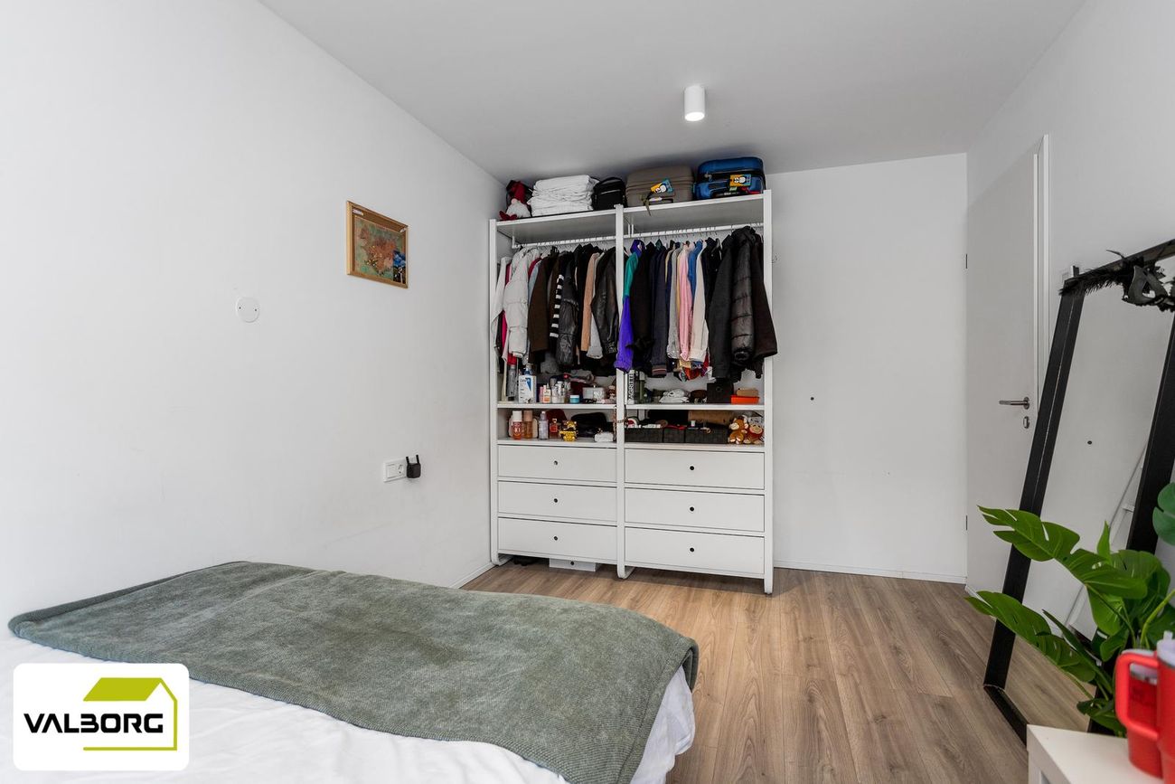stúdíó íbúð. Þar er lítil innrétting með eldhúsvask og ísskáp, baðherbergi með sturtuklefa, upphengt wc og innrétting með handlaug.