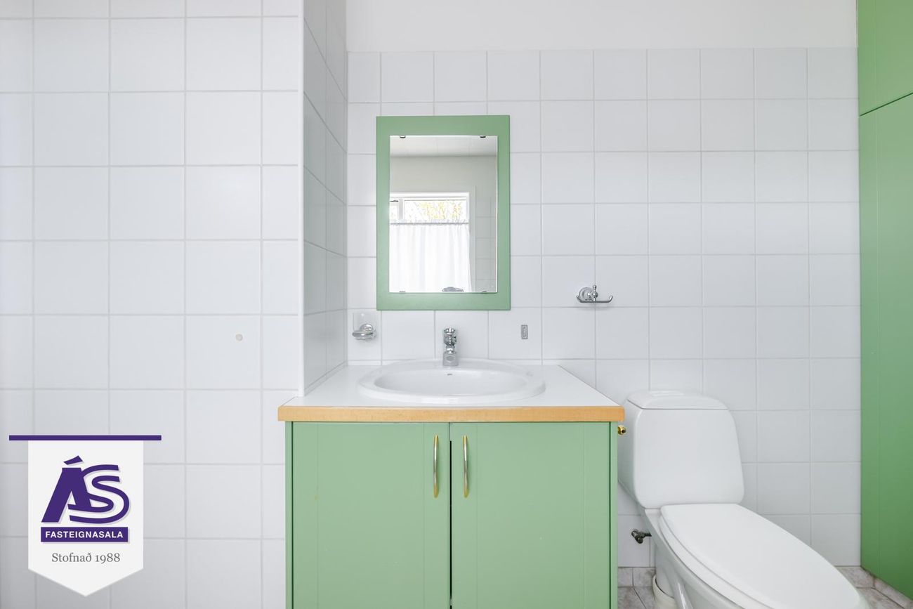 Tveggja hæða einbýlishús með neðri og efri hæð. Neðri hæð inniheldur forstofu, stofu, borðstofu, eldhús og þvottahús. Efri hæð með þremur svefnherbergjum og baðherbergi.