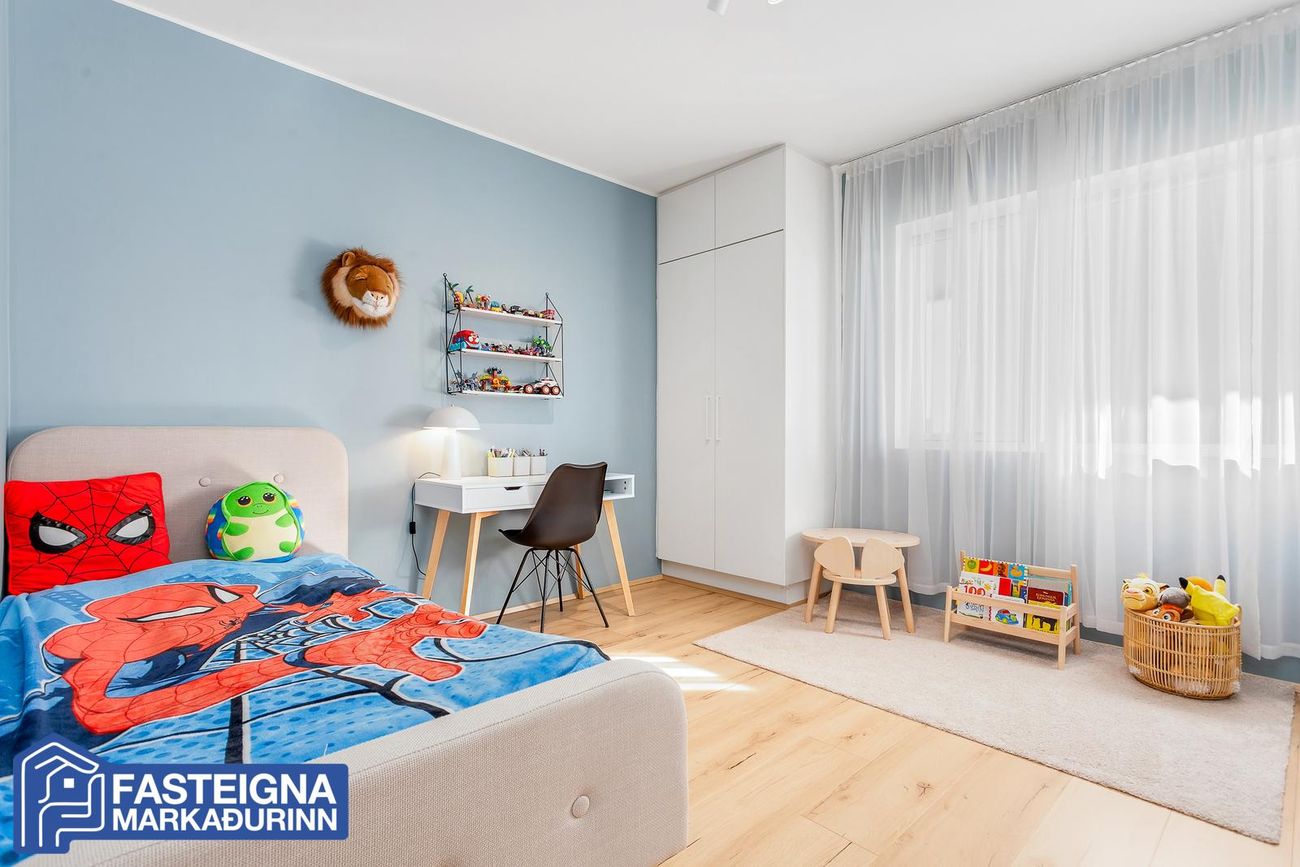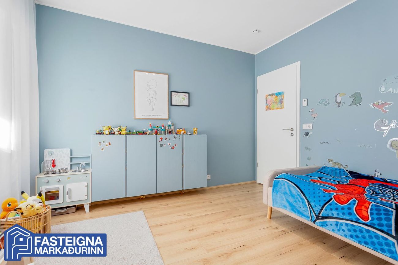 Barnaherbergi, rúmgott, parketlagt og með fataskápum.