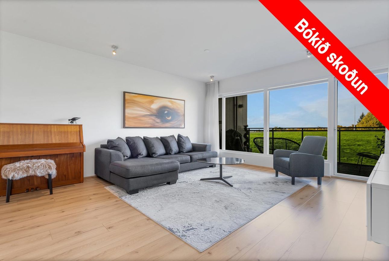 Fasteignamarkaðurinn ehf. s: 570-4500 kynnir mjög bjarta, rúmgóða og glæsilega 3ja herbergja íbúð á efri hæð í tveggja hæða nýlegu fjölbýlishúsi með lyftu á mjög góðum stað í Akralandinu í Garðabæ. Samkvæmt HMS er íbúðin 126,5 fermetrar og þar af er geymslan 16,4. Sérmerkt stæði í upphitaðri bílageymslu fylgir með íbúðinni sem er í snyrtilegu fjölbýli þar sem einungis 8 íbúðir eru í húsinu.