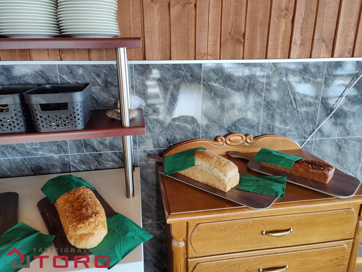 Leikstofa, seta, bakstursaðstaða, geymslur, verkstæði og varaaflsstöð í hjall.