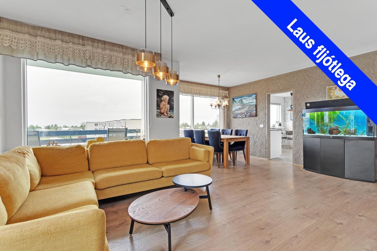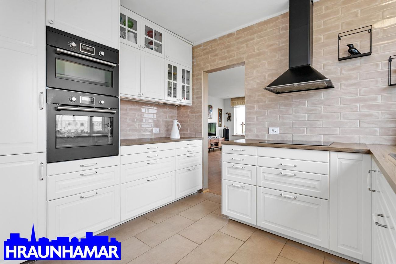 **Stuttur afhendingartími**Hraunhamar fasteignasala og Ársæll Ó. Steinmóðsson löggiltur fasteignasali kynna rúmgóða, bjarta og fallega 157,7 fm 4 herbergja endaíbúð á 3 hæð (merkt 0301) á Breiðvangi 4 í Hafnarfirði. Samkvæmt birtum fm er íbúðin 118,8 fm, geymsla í kjallara 14,7 fm og bílskúr 24,2 fm. Húsið á nr.4 var nýlega tekið í gegn að utan og m.a allir gluggar endurnýjaðir, járn á þaki endurnýjað og húsið málað og múrviðgert að utan. Í sameign er góð hjólageymsla og fyrri innan hana er stórt sameiginlegt rými. Garður er sameiginlegur og snyrtileg sameign.Mjög góð staðsetning í norðurbæ Hafnarfjarðar með leik og grunnskóla í stuttu göngufæri. Stutt er í fjölbreytta verlsun og þjónustu. Útivstarsvæðið á Víðistaðatúni og miðbær Hafanrfjarðar er í þægilegu göngufæri. Samkvæmt upplýsingum frá seljanda hafa eftirfarandi framkvæmdir verið gerðar á íbúðinni. Allir rofar og tenglar endurnýjaðir, eldhús var endurnýjað ca 2021. Baðherbergi var endurnýjað 2020.Skipting eignar: anddyri, sjónvarpshol, stofa, 3 svefnherbergi, eldhús, baðherbergi, þvottahús, geymsla og bílskúr.Nánari lýsing:Anddyri er opið með sjónvarpshol. Skápur og harðparketi á gólfi.Sjónvarpshol er með harðparketi á gólfi.Stofa er björt og rúmgóð með harðparketi á gólfi og þaðan er útgengt á L svalir sem snúa í suðvestur og vestur. Fallegt útsýni.Eldhús var endurnýjað fyrir ca 3 árum og er með flísum á gólfi og veggjum að hluta til. Helluborð, háfur og bakaraofn í vinnuhæð. innbyggður ísskápur (nóv.´24) og uppþvottavél. Góður borðkrókur með útsýni.Hjónaherbergi er með harðparketi á gólfi og góðum fataskápum.Búið er að klæða loftið og einangra með steinull.Svefnhergin eru bæði með harðparketi á gólfi og er búið að klæða loftin og einangra með steinull. ATH. vantar sólbekk í annað herbergið.Baðherbergi var endurnýjað 2020 og er með flísum á gólfi og veggjum. "walk in" sturtu, handklæðaofni og góðri innréttingu með handlaug og speglaskáp. Opnanlegur gluggi.Þvottahús er innaf eldhúsi og meðflísum á gólfi og hillum Opnanlegur gluggi.Geymsla í kjallara er 14,7 fm.Bílskúr er 24,2 fm með heitu og köldu vatni og 3 fasa rafmagni. Allar nánari upplýsingar veitir Ársæll Ó. Steinmóðsson löggiltur fasteignasali á netfangið eða s. 896-6076Um skoðunar- og aðgæsluskyldu:Í lögum um fasteignakaup nr. 40/2002 er kveðið á um ríka skoðunarskyldu kaupenda á fasteignum. Hraunhamar fasteignasala bendir væntanlegum kaupendum á að kynna sér vel ástand fasteigna við skoðun og fyrir tilboðsgerð og ef þurfa þykir að leita til sérfræðinga um nánari ástandsskoðun.Forsendur söluyfirlits:Söluyfirlit er samið af fasteignasala í samræmi við ákvæði laga nr. 70/2015. Þær upplýsingar sem fram koma í söluyfirliti þessu eru sóttar í opinberar skrár, til seljanda sjálfs og eftir atvikum til húsfélags. Seljandi veitir upplýsingar um eign í samræmi við upplýsingaskyldu laga um fasteignakaup nr. 40/2002. Fasteignasali sannreynir að þær upplýsingar séu réttar með sjónskoðun á eigninni. Fasteignasali getur ekki fullyrt um ástand og eiginleika þeirra hluta fasteigna sem ekki eru aðgengilegir og sjást ekki berum augum, t.d. lagnir, dren, skólp og þak.Gjöld sem kaupandi þarf að standa straum af vegna kaupanna: 1. Stimpilgjald af kaupsamningi - 0,8%(einstaklingar) 1.6% (lögaðilar) af heildarfasteignamati. 2. Stimpilgjald af veðskuldabréfi - 0% af höfuðstól skuldabréfs. 3. Þinglýsingargjald af kaupsamningi, veðskuldabréfi, mögulegu veðleyfi o.fl. - kr. 2.700 af hverju skjali.4. Lántökugjald lánastofnunar - almennt 0,5 - 1,0% af höfuðstól skuldabréfs. Nánari upplýsingar á t.d. heimasíðu lánastofnana. 5. Umsýslugjald til fasteignasölu kr.68.200.-m.vsk.Hraunhamar er elsta fasteignasala Hafnarfjarðar, stofnuð 1983.Hraunhamar, í fararbroddi í 41 ár. – Hraunhamar.is Smelltu hér til að fá frítt söluverðmat.